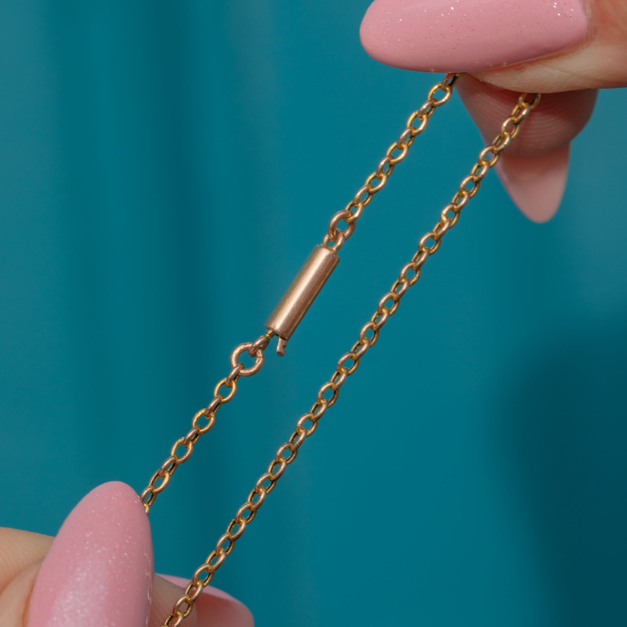 This 14.5" antique 9ct Gold skinny pendant chain is the perfect everyday staple. Victorian Gold chains are beloved for their elegance and versatility—and she’s no exception. Ideal for suspending your favourite dainty pendants or layering effortlessly into your neck stack, she brings understated charm to any look.