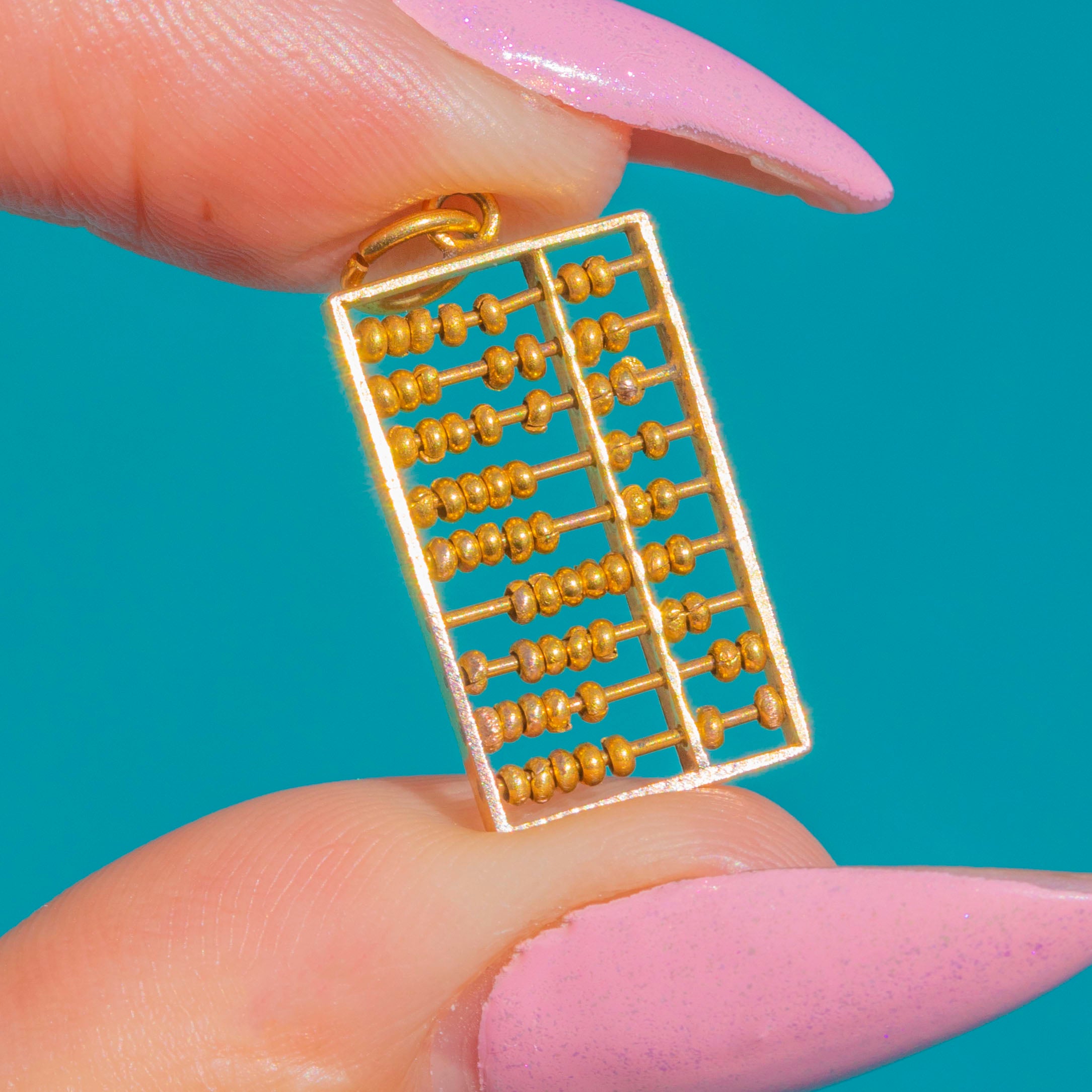 A delightful Mid-Century treasure, this petite 14ct Gold abacus charm marries whimsy with refined craftsmanship. Its warm golden glow and crisp silhouette make a chic statement in miniature, perfect worn solo on a fine chain or added to a curated charm bracelet.