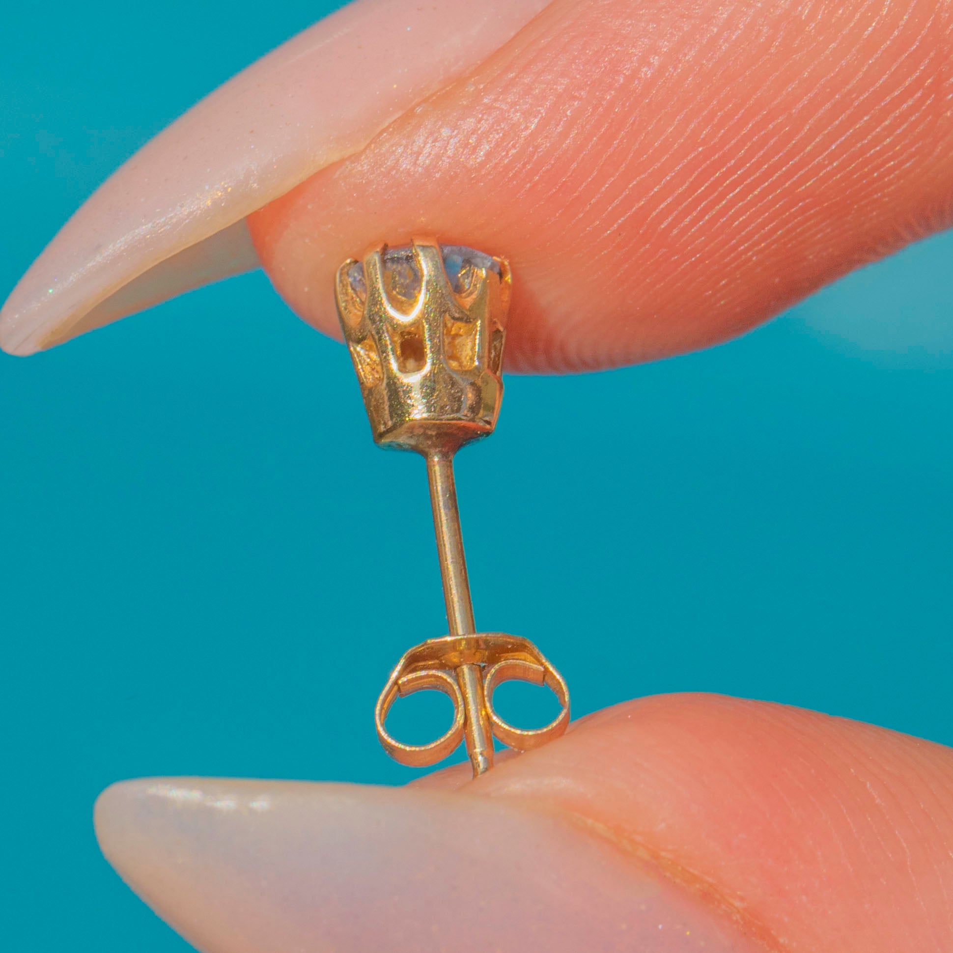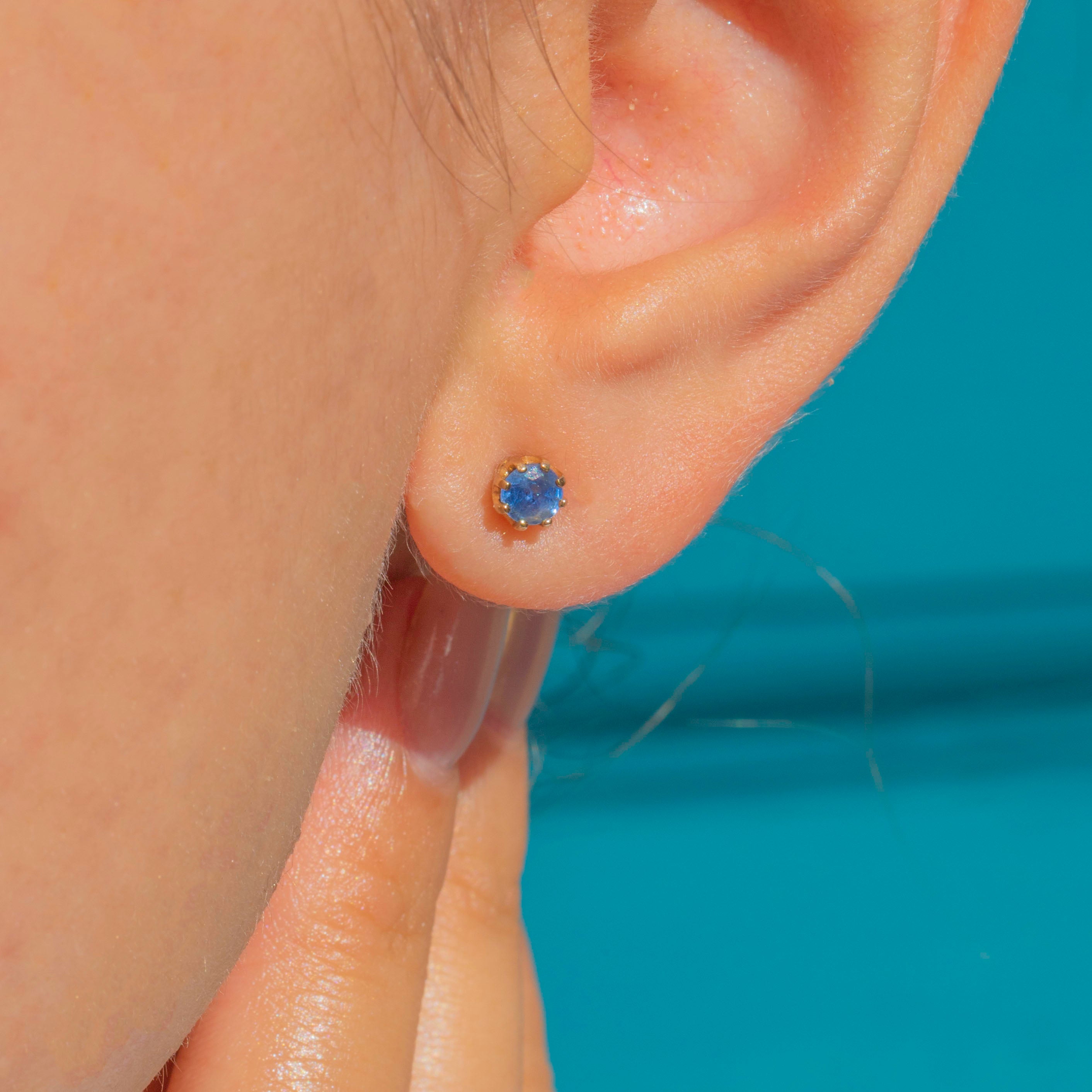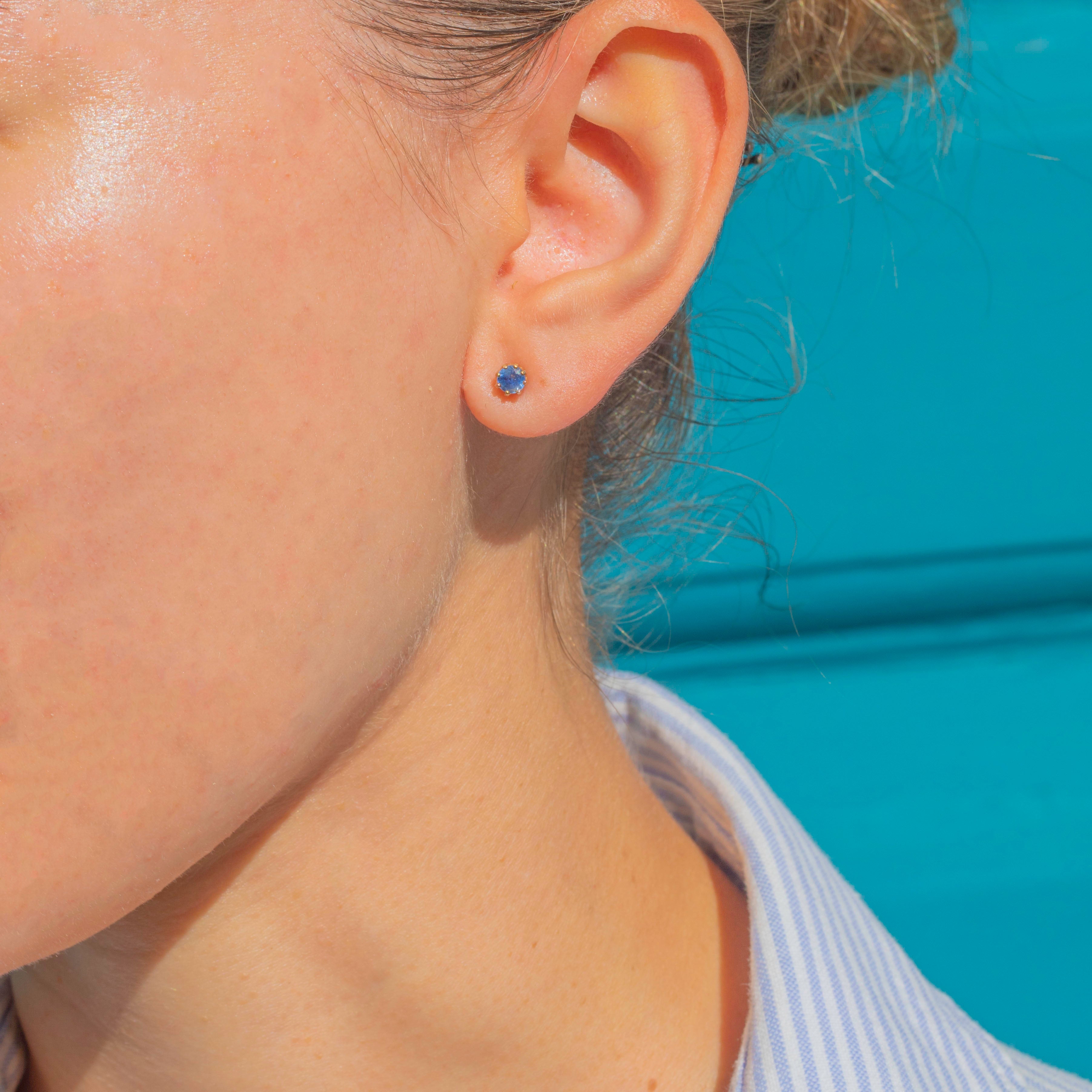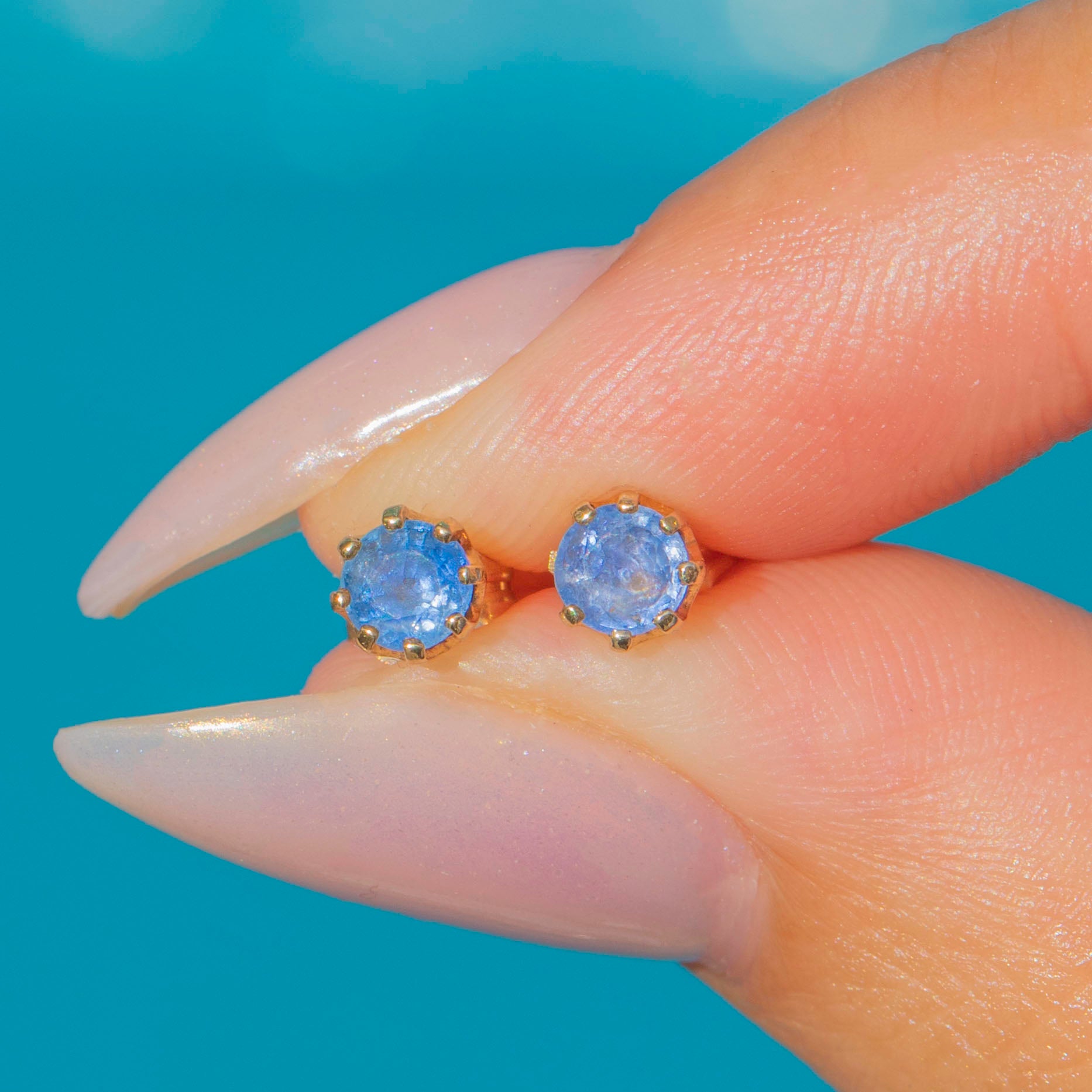 A charming pair of vintage stud earrings crafted in 14ct Gold, each set with a vivid Cornflower Blue Sapphire. The Sapphires sparkle with their signature bright, fresh hue, delicately mounted in classic claw settings that allow light to flood the stones. Understated yet elegant, these earrings are a versatile treasure — perfect for everyday wear or as a subtle accent to evening attire.