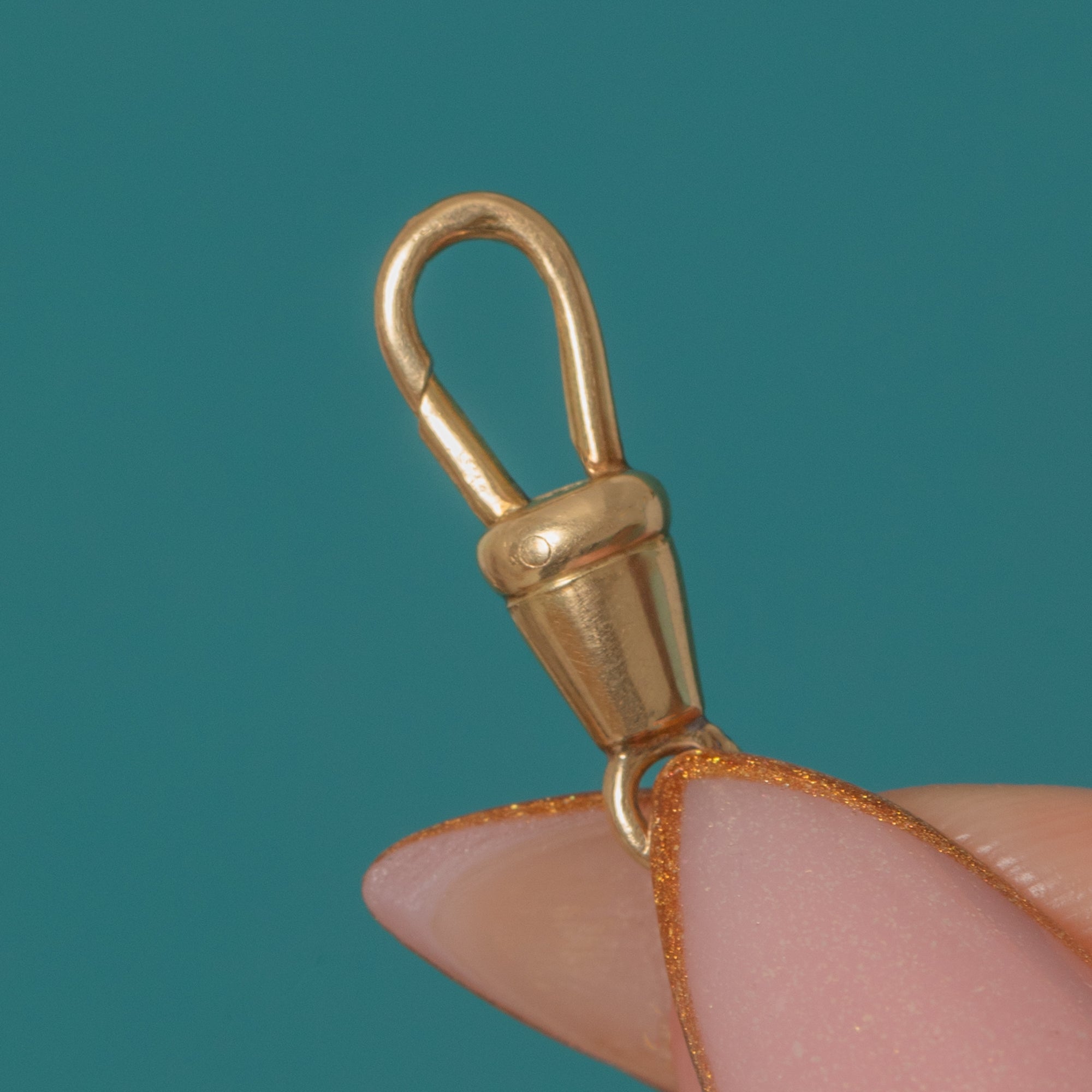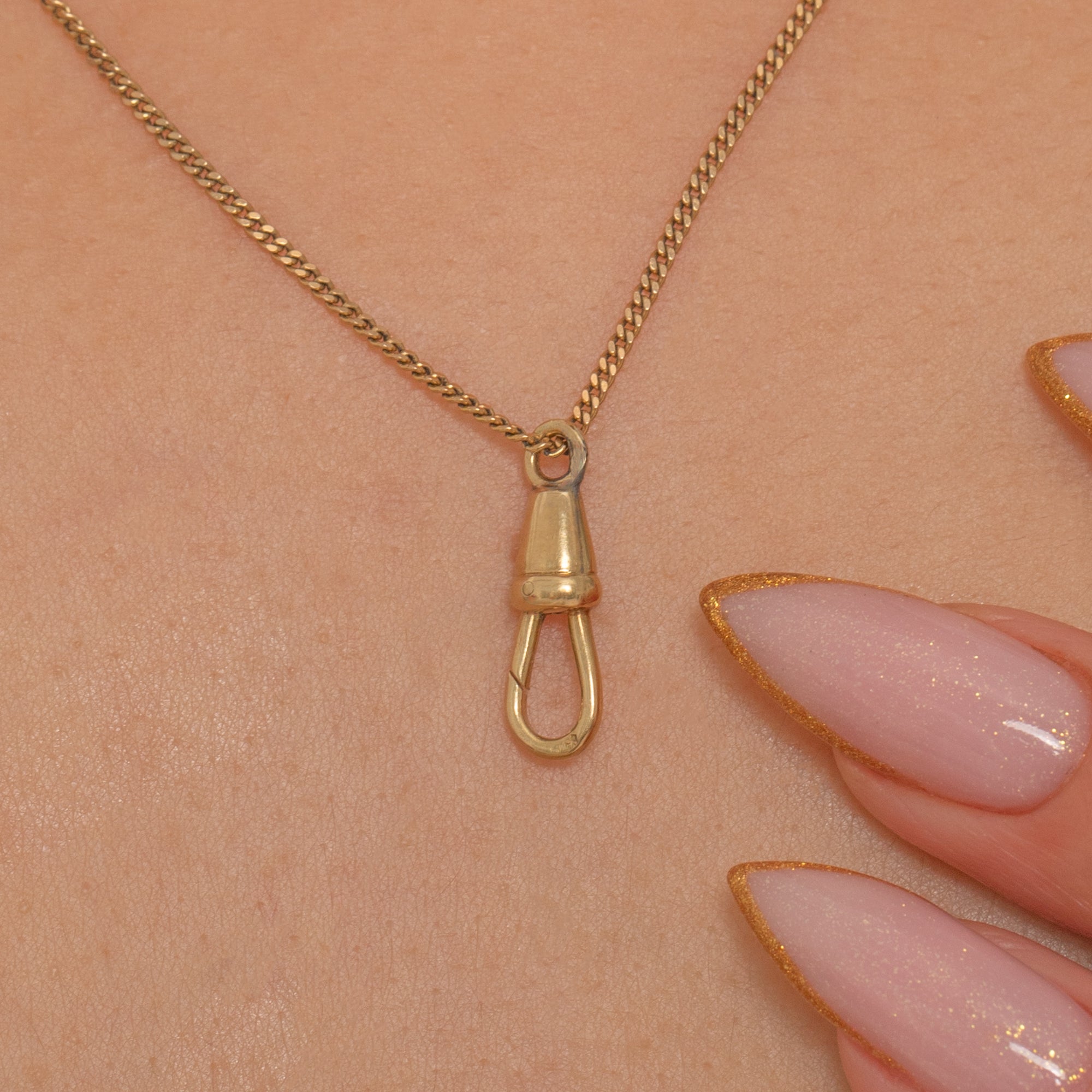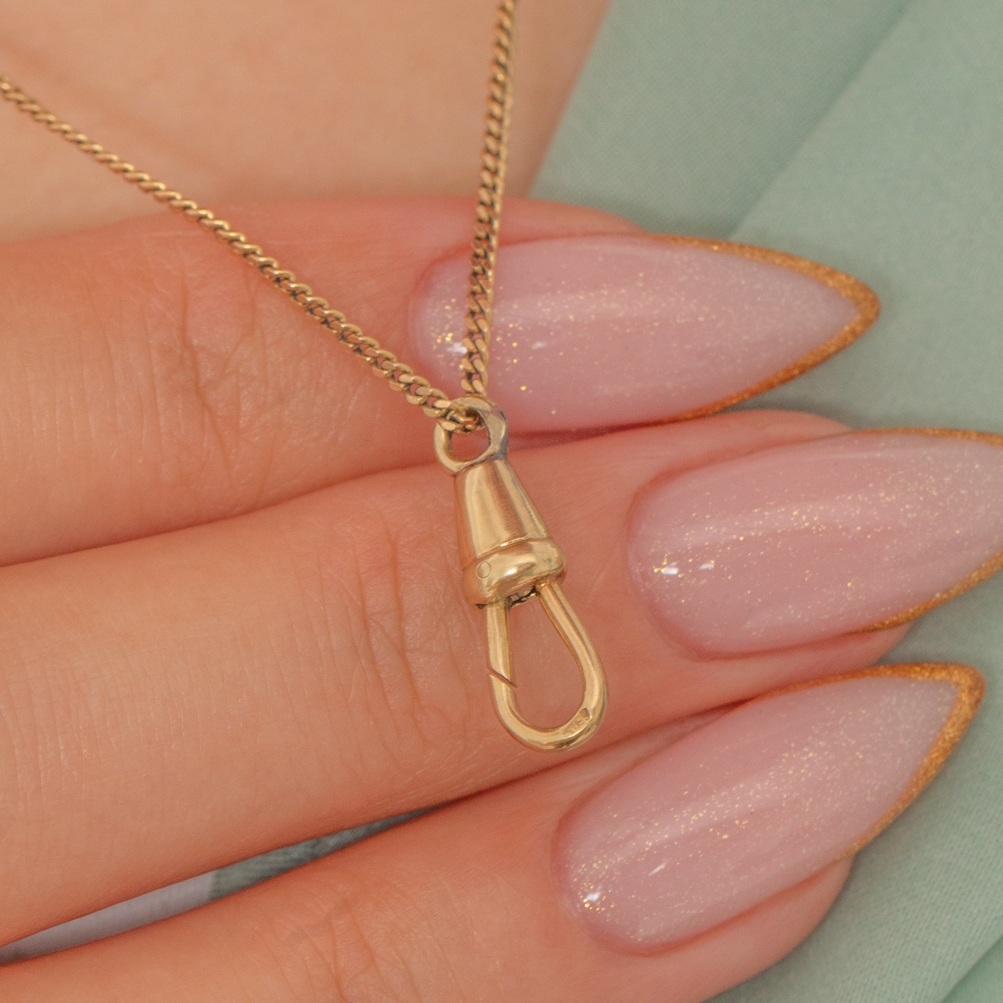 This late Art Deco dog clip is a beautiful, high-quality finding from the 1930s. Crafted in rich 14ct Gold Yellow Gold, it features the classic spring mechanism typical of the era — perfect for pairing with antique chains, pendants, or charms.