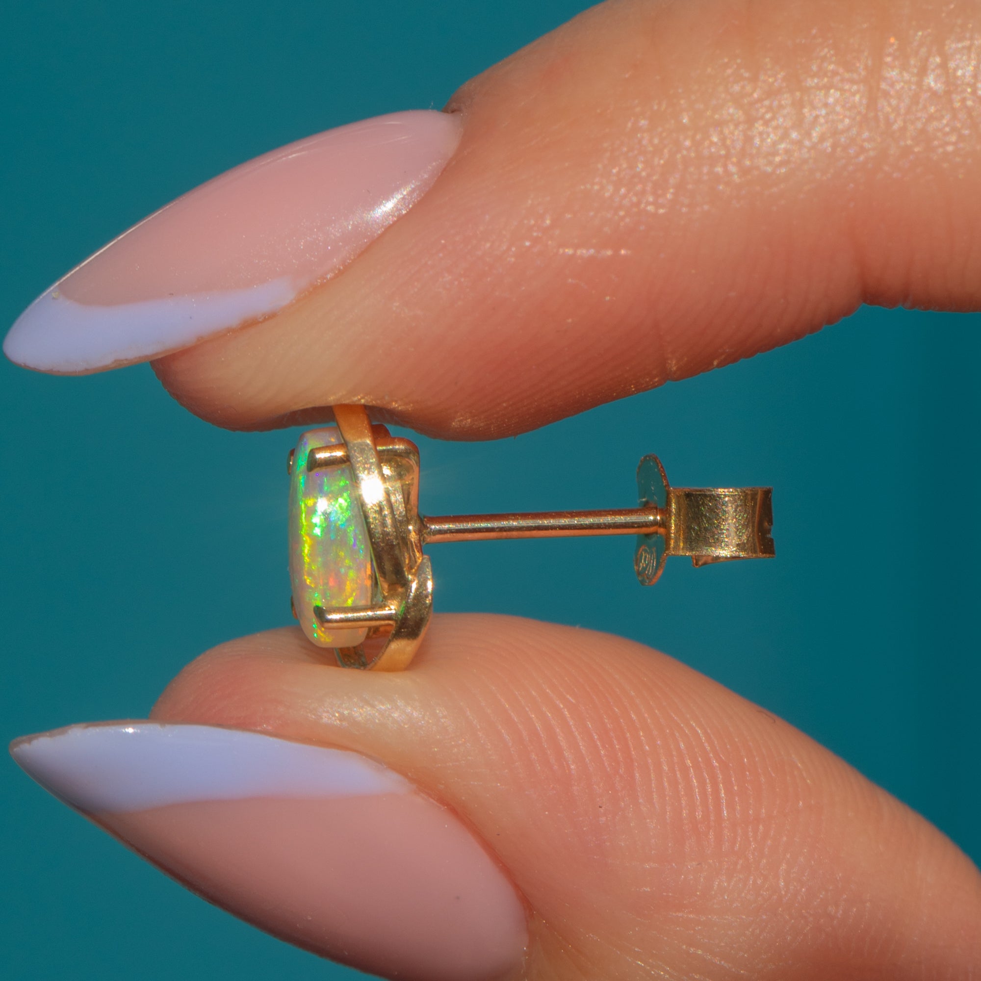 Opals are 7mm long x 5mm wide, weighing approx. 0.55ct combined.