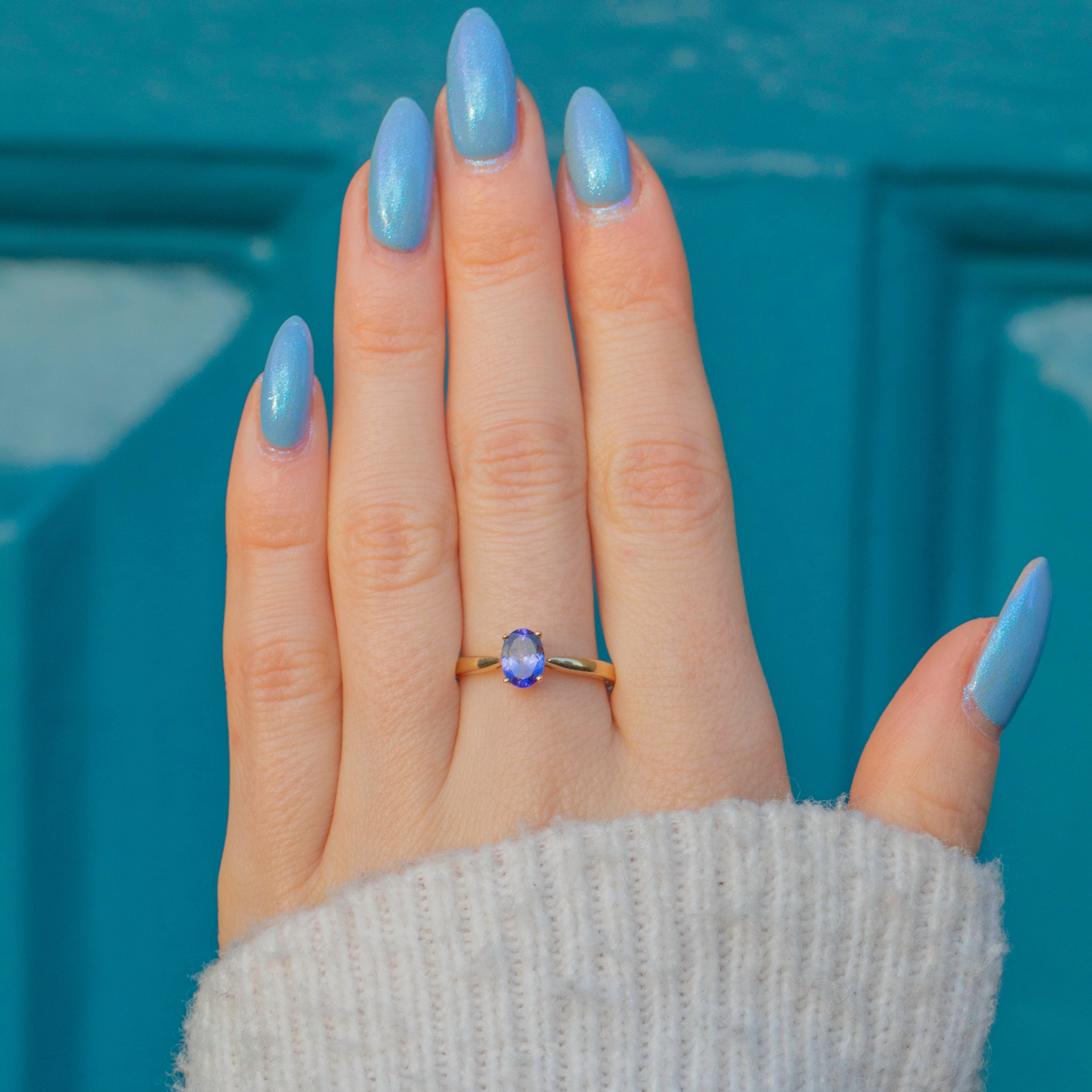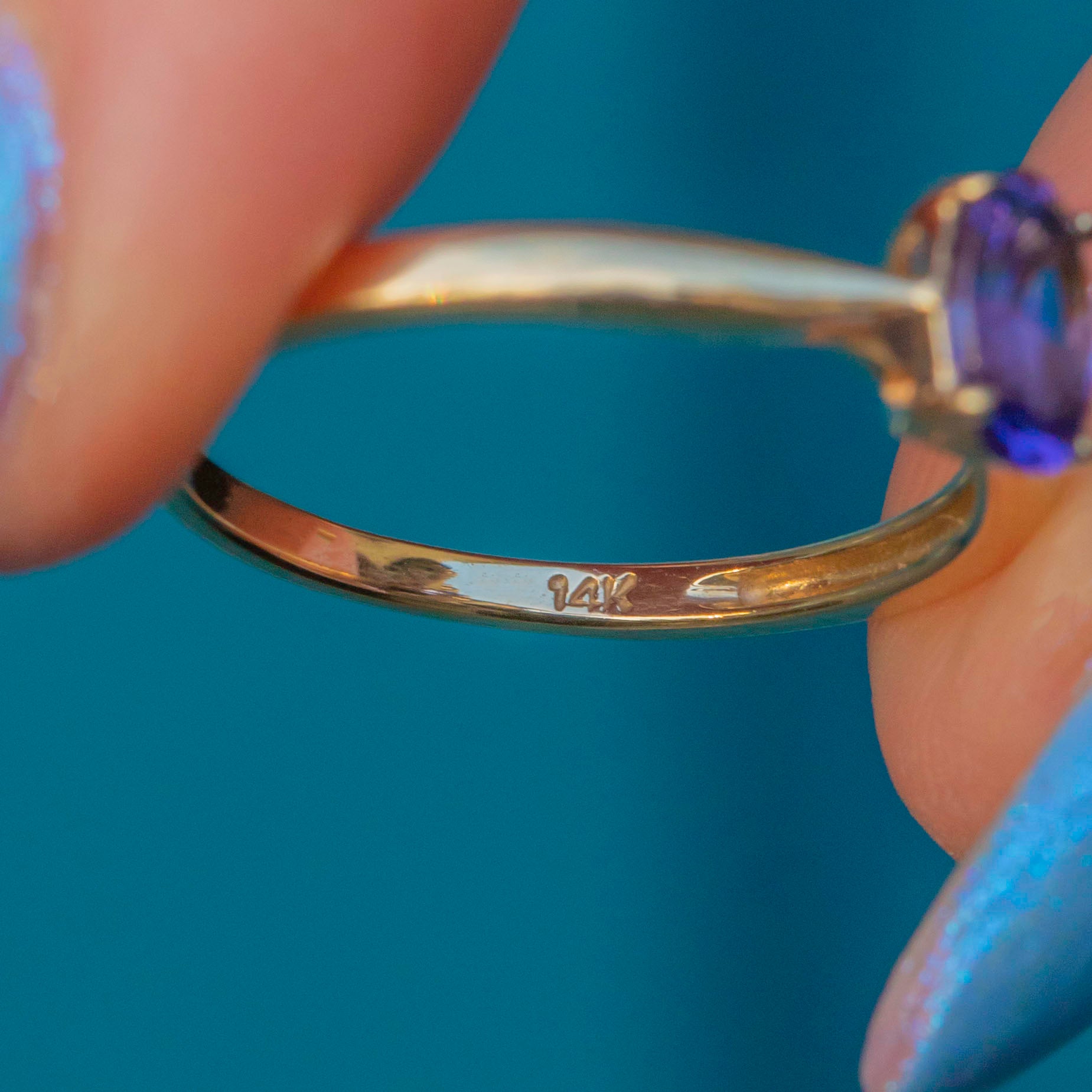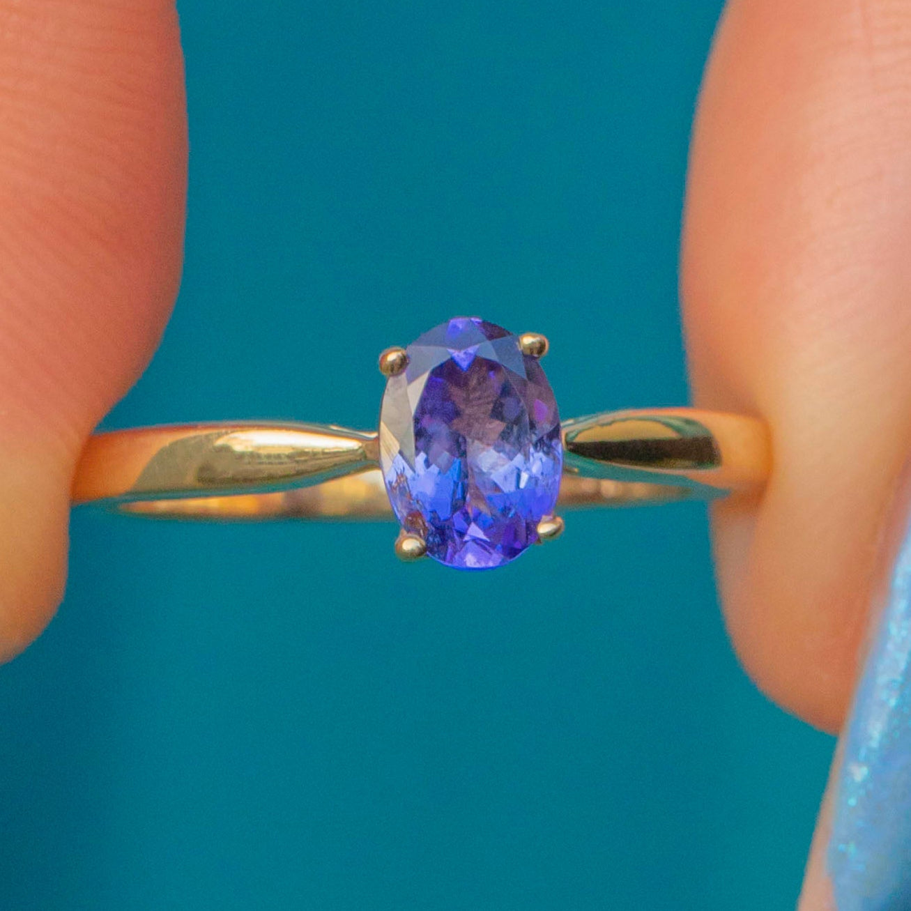 A delicate 14ct Gold Tanzanite solitaire ring to add to your ring stack!