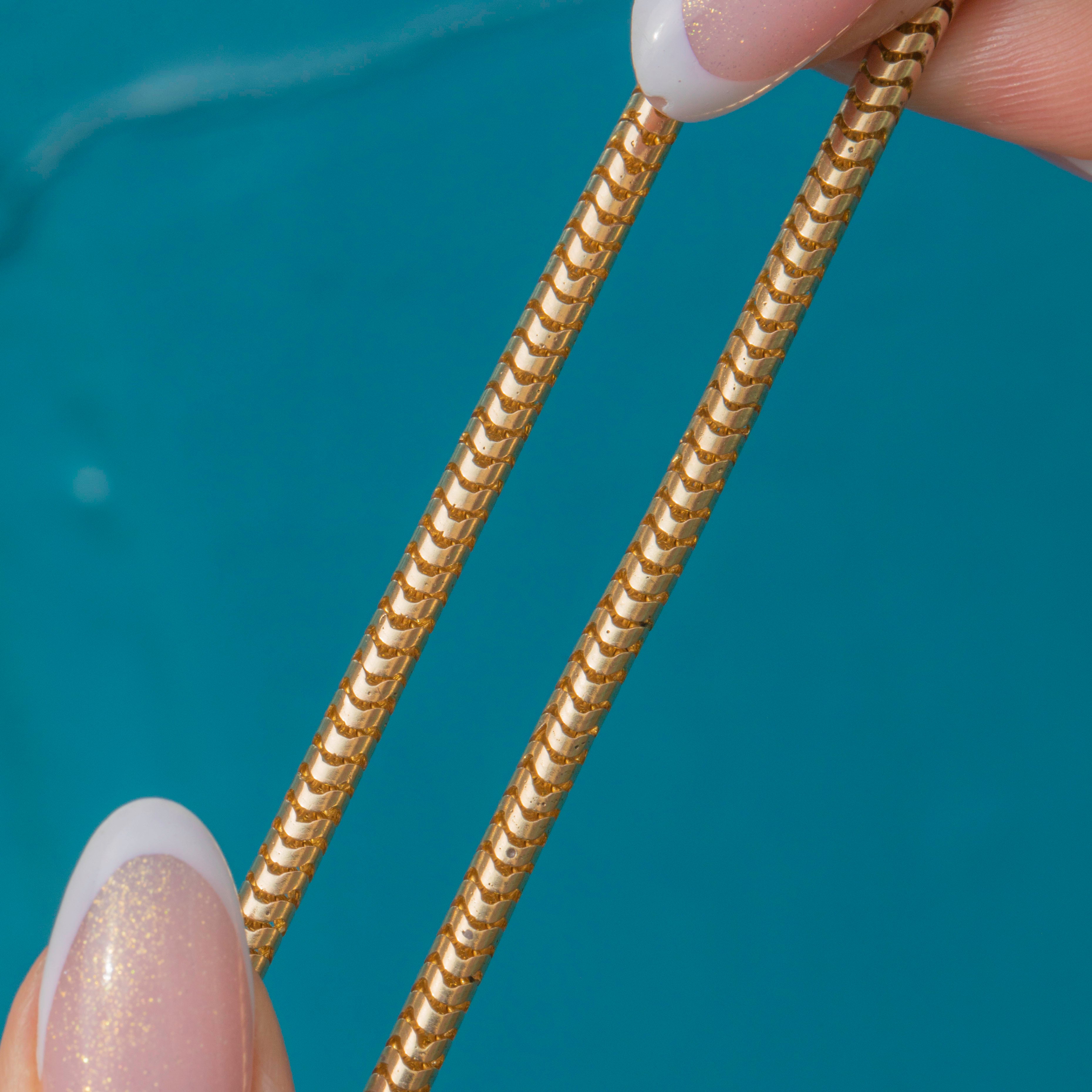 This chunky delight can easily be styled as a standalone piece, providing your outfit with a luxurious splash of Gold, or you could utilise its sought-after dog-clip to suspend a dainty pendant or charm for a personal touch!
