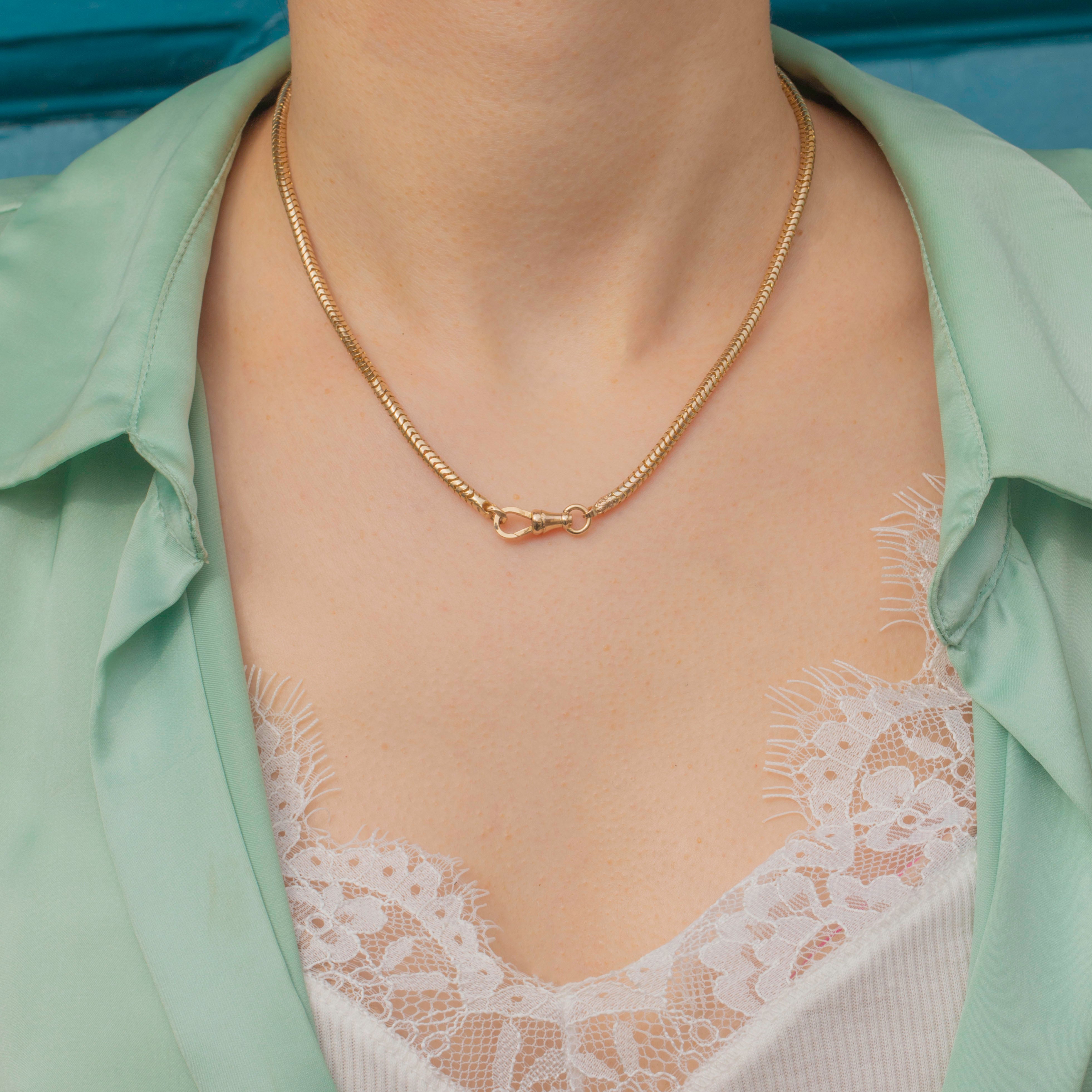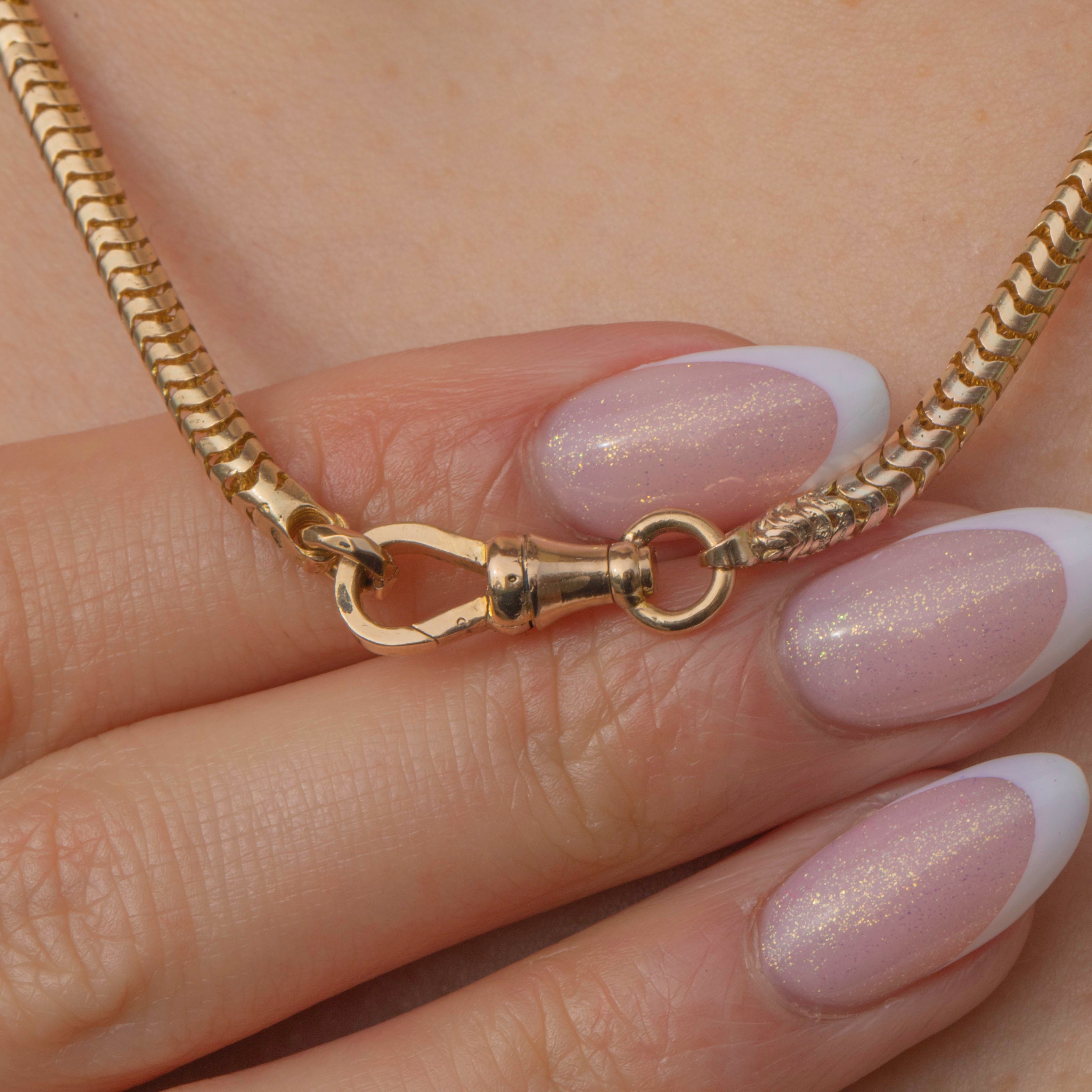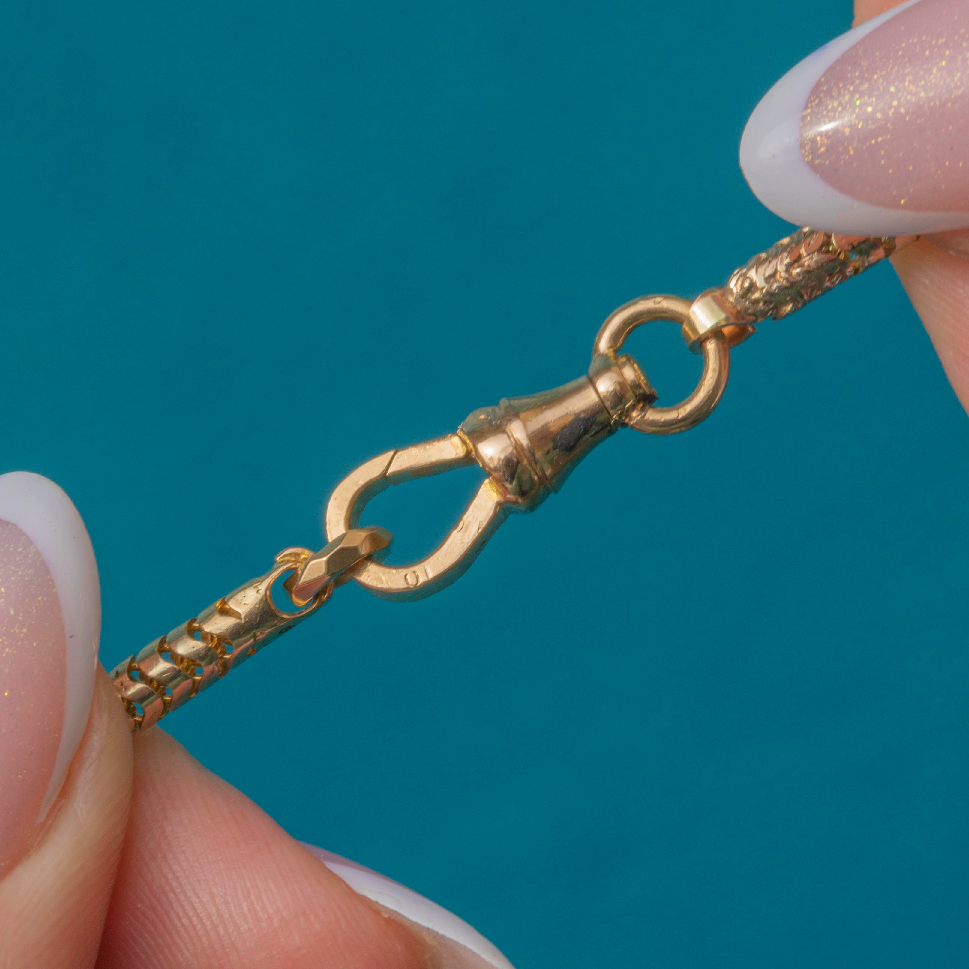 EXCELLENT: This antique 9ct Gold snake chain is in excellent condition. The Gold is bright and buttery and the links are securely connected, with no signs of surface wear. The dog-clip is in perfect working condition allowing you to wear this exquisite Victorian Gold snake chain with utmost confidence!