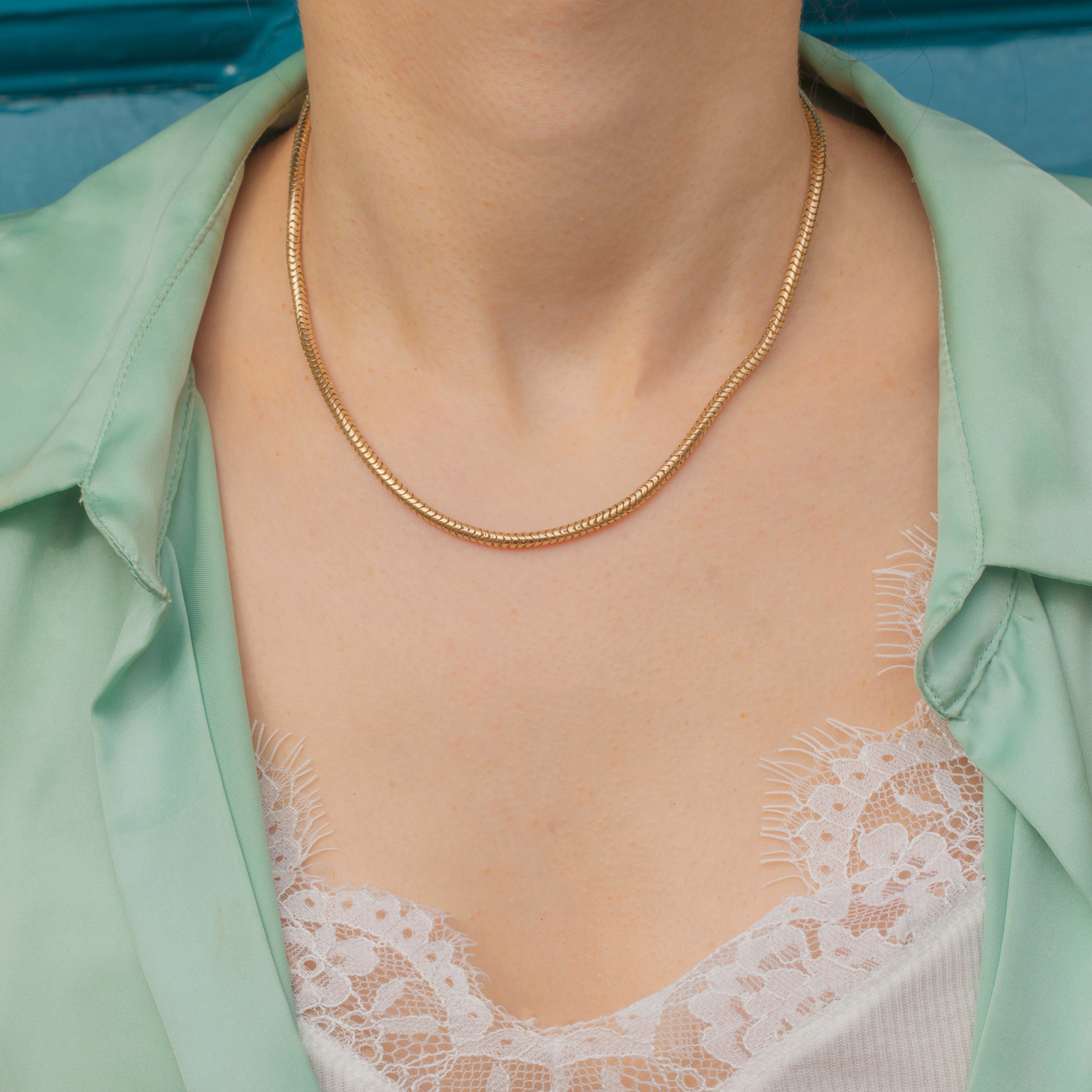 This antique 9ct Gold snake chain will make a sumptuous addition to your collection! The neatly connected snake links are crafted from buttery 9ct Gold and provide a gorgeous slinky movement that will drape elegantly across your collarbones.