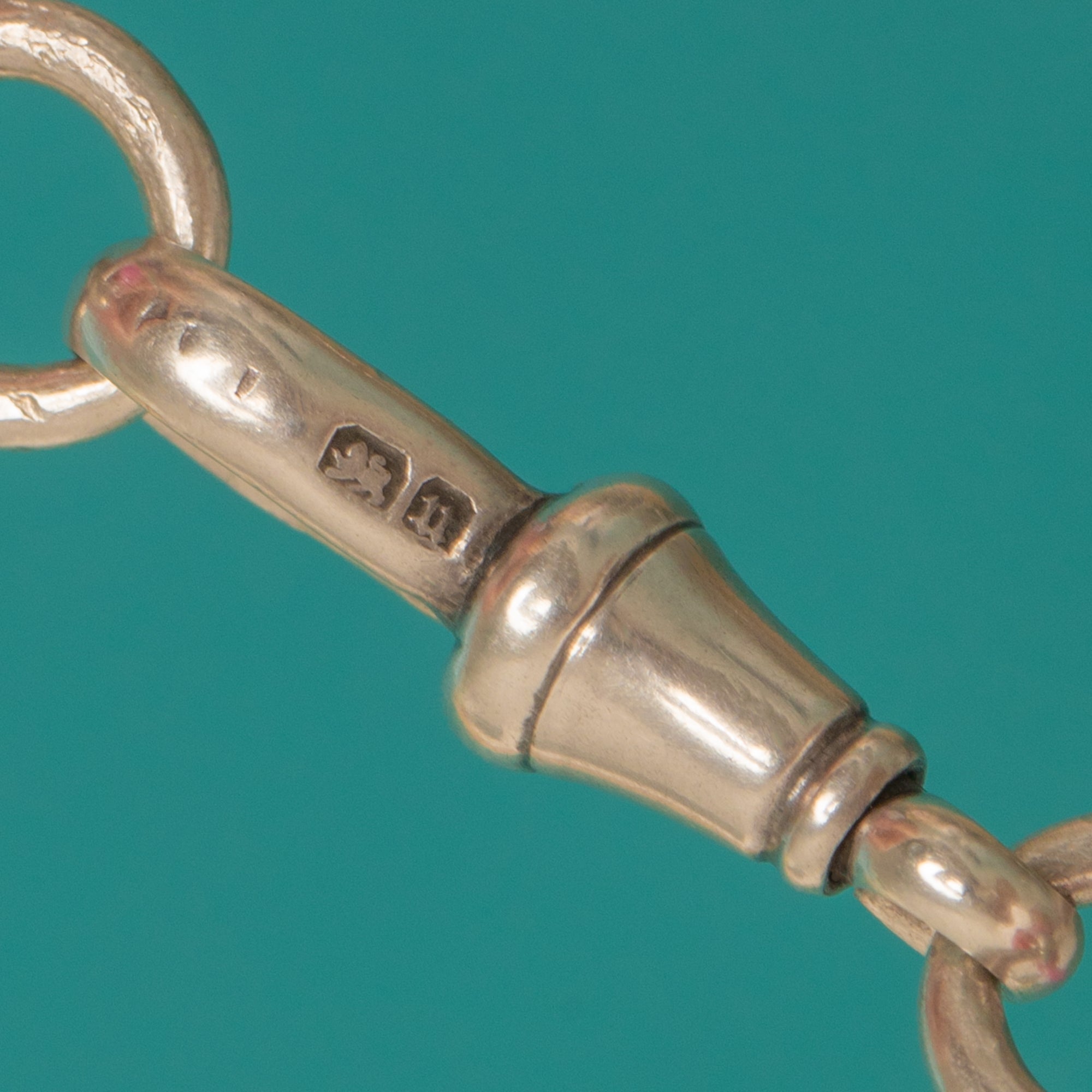 HALLMARKS: Lion Passant and date letter U for 1894, stamped on every link.