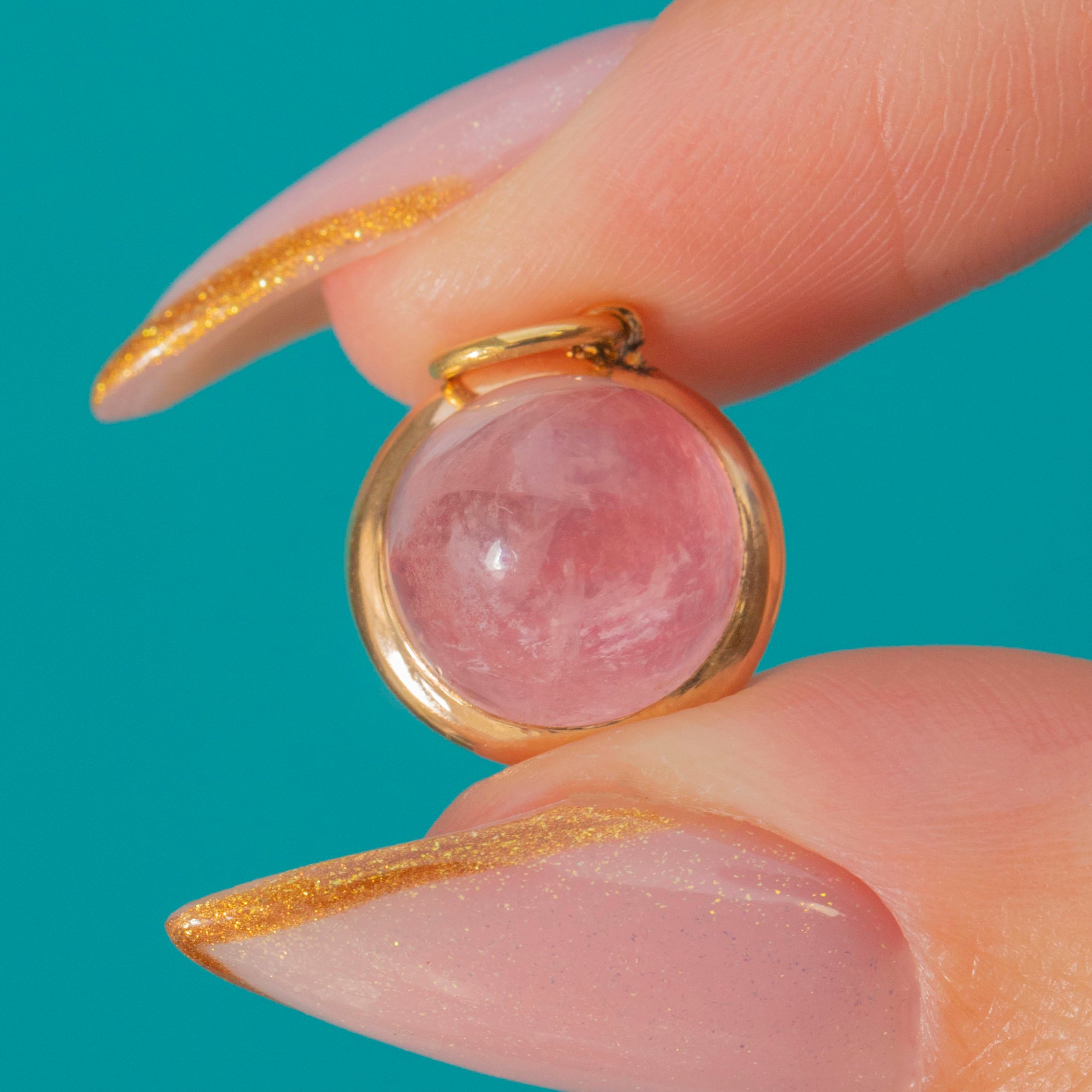 The 15ct Gold is beautifully polished, framing the Rose Quartz with elegant simplicity, and the jump-ring is neatly soldered for secure wear. With approximately 4.20cts of Rose Quartz, this chic solitaire charm is perfect for slipping onto your favourite chain or curating a considered charm stack.