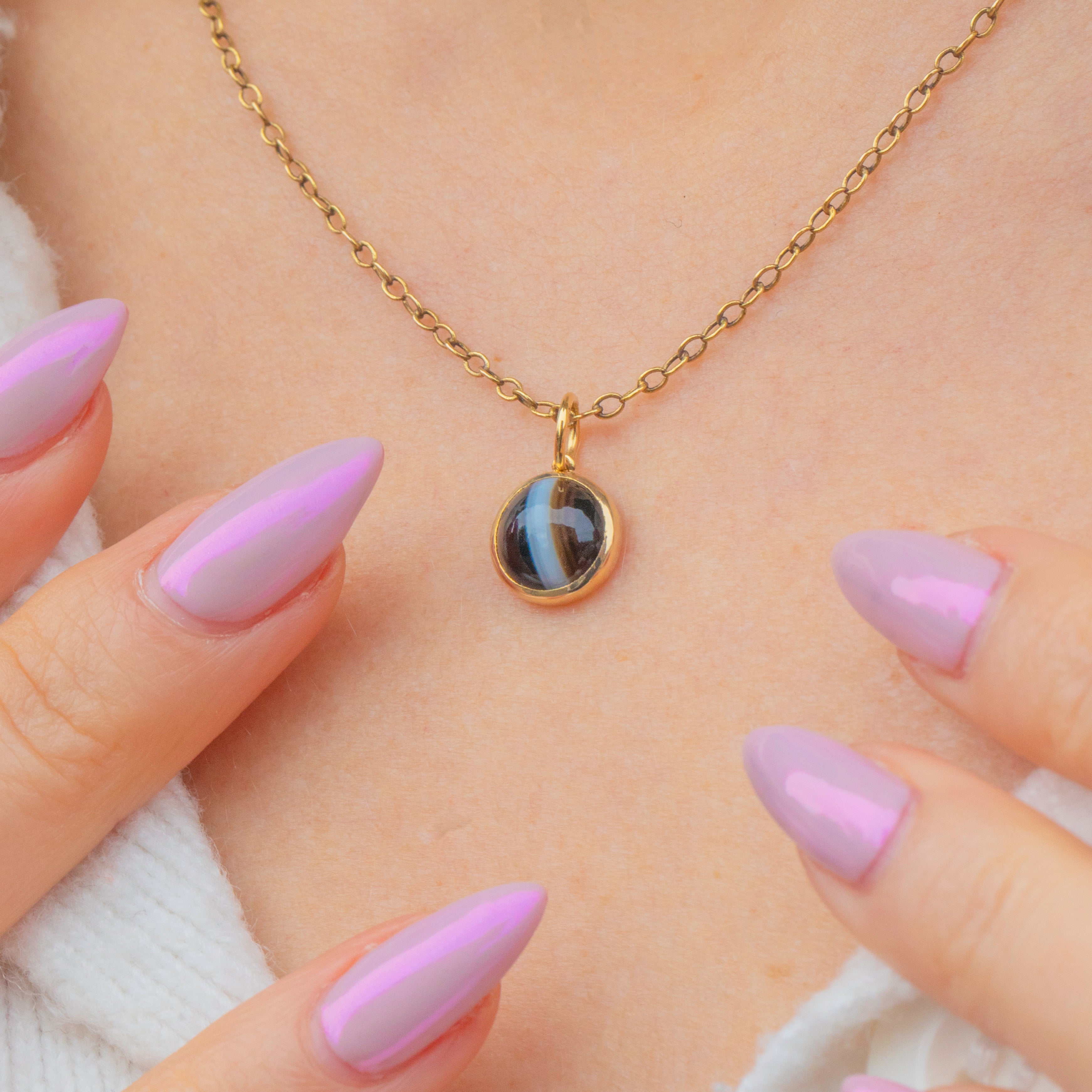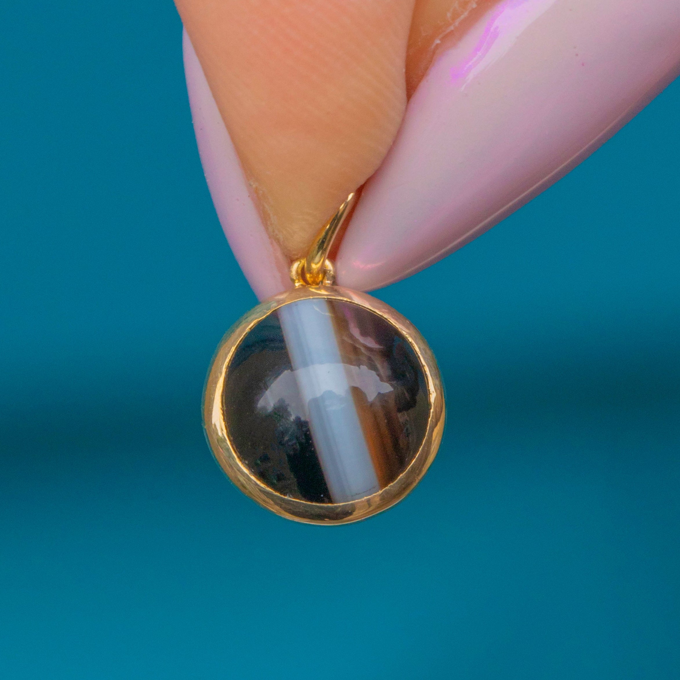 MATERIALS: Tests as 15ct Gold, Banded Agate.