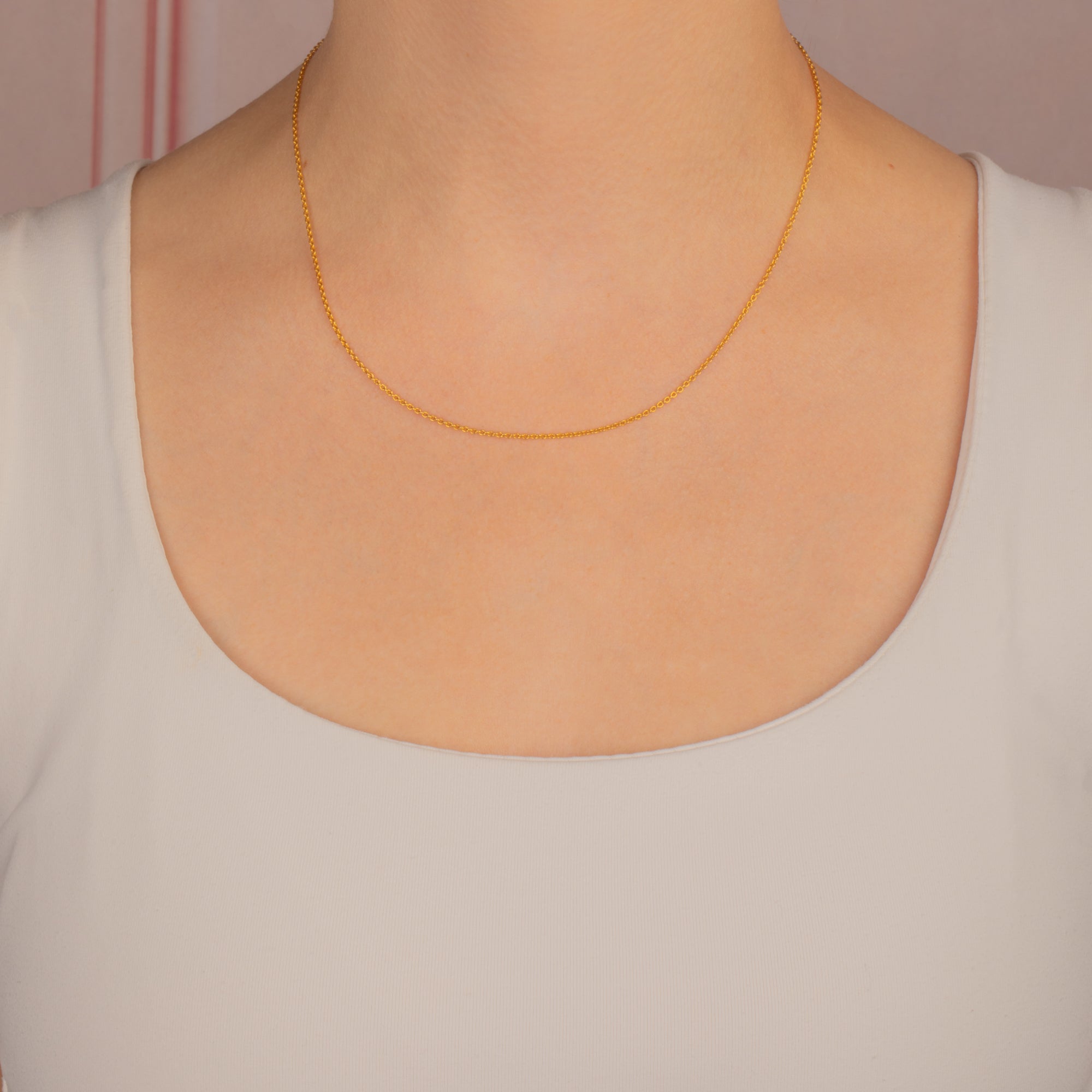 VERY GOOD-EXCELLENT. This 16.5" antique 15ct Gold skinny pendant chain is in very good to excellent condition. The links are uniform and the bolt-ring is in perfect working condition. A few of the links closer to the jump-ring are slightly darker in tone, but this is only noticeable under close inspection. A delight to adorn your jewellery collection.