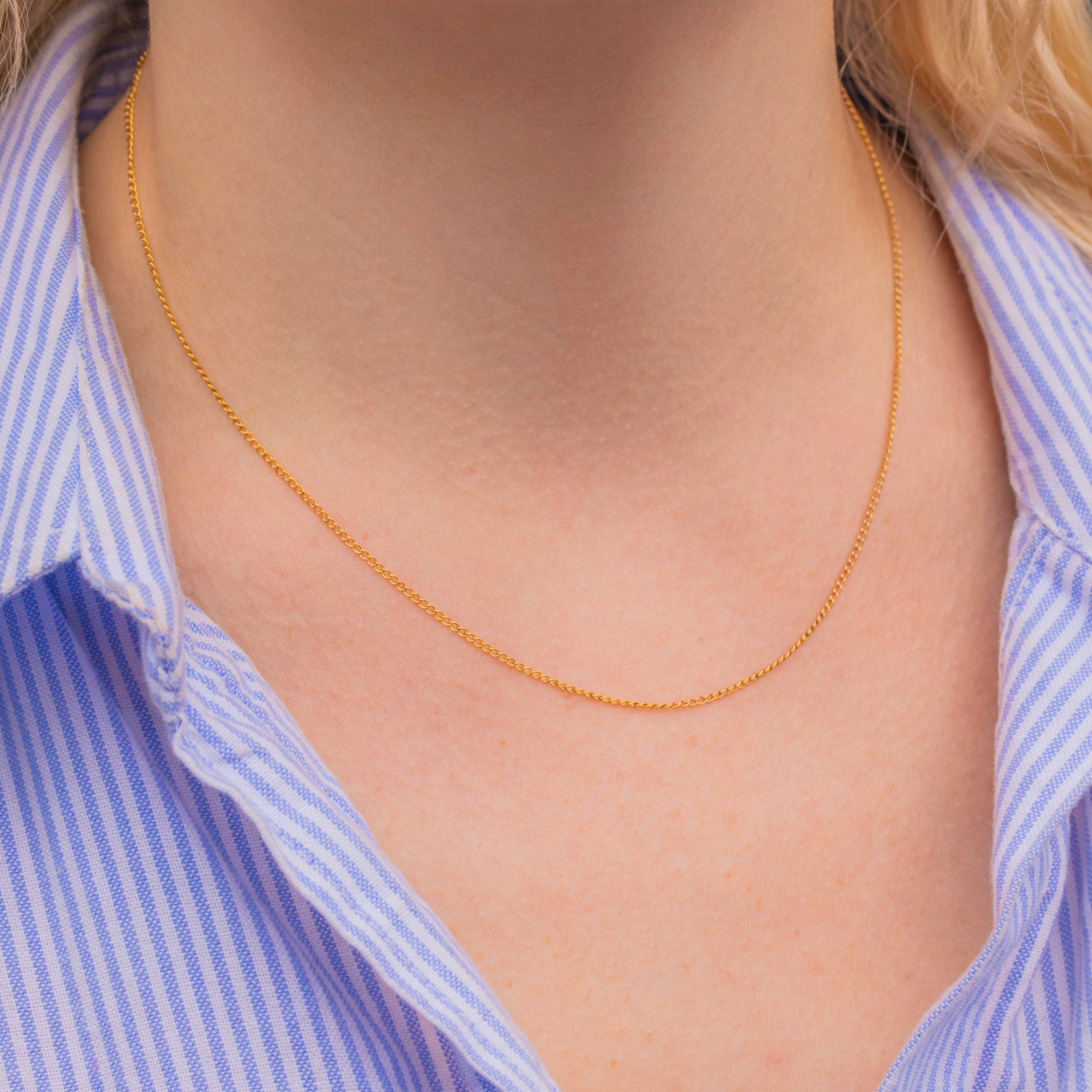 This is a gorgeous antique 9ct Gold skinny curb chain! This beauty has a lovely Golden hue and smooth links that sit comfortably against the skin.