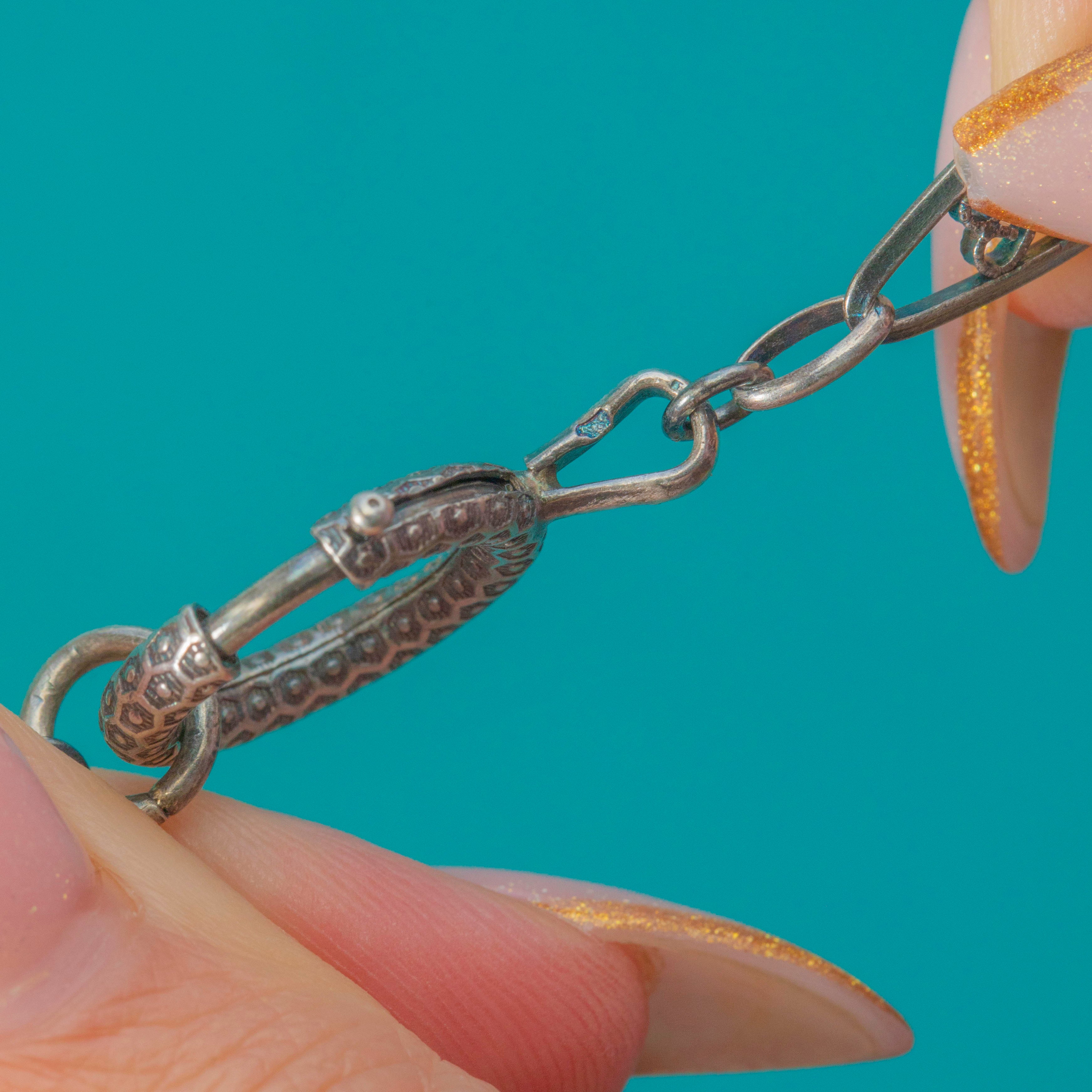 The large bolt-ring clasp is stamped with the French boar’s head hallmark, confirming its solid Silver fineness. A striking standalone necklace, it can also be paired with your favourite antique pendants and charms.