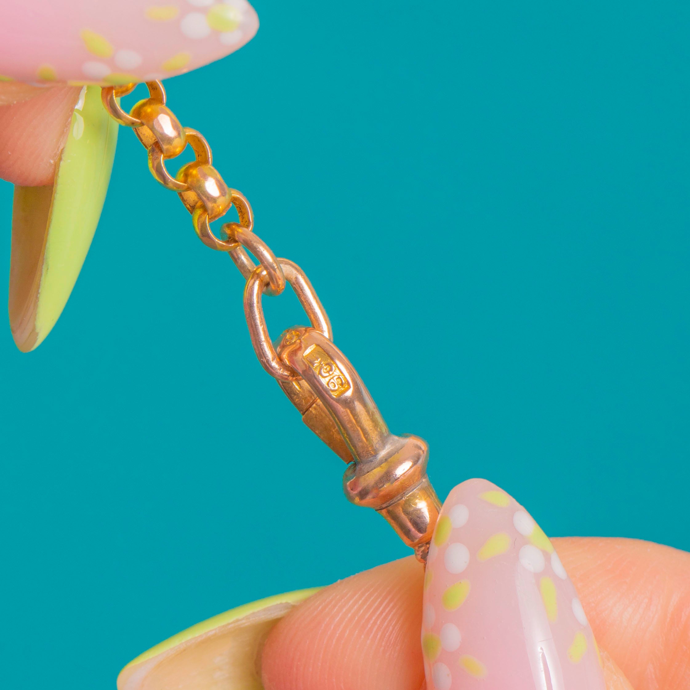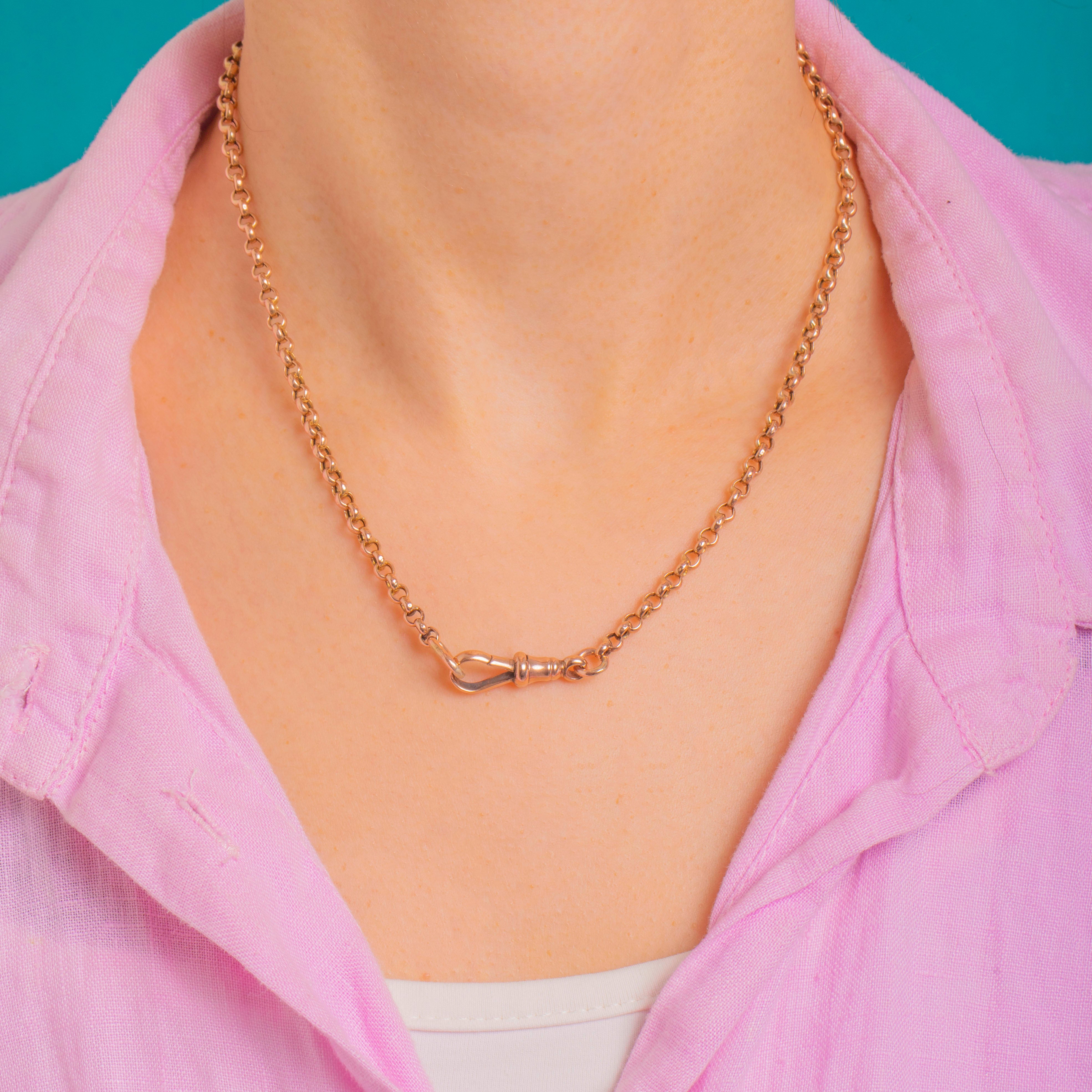 EXCELLENT: Links are bright and well-preserved with only light surface wear consistent with age. The dog clip is secure and in good working order, and the chain retains a lovely polished finish with subtle patina in the recesses. No visible repairs, presenting beautifully and ready to wear.
