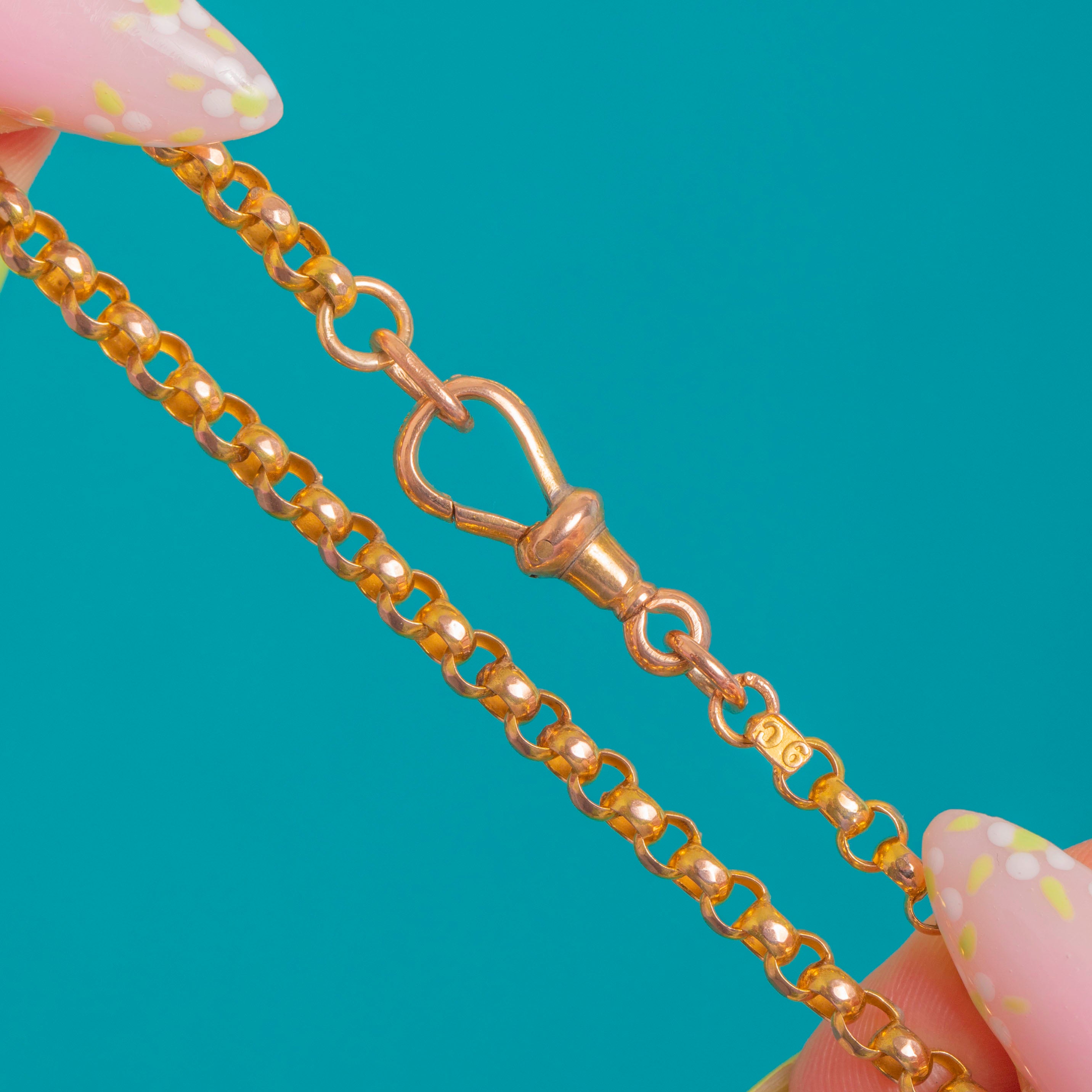 Timeless and beautifully wearable, this Victorian 9ct Gold belcher chain offers that perfect balance of elegance and utility. Its rounded belcher links flow with a silky drape and a bright, polished glow, finished with the classic dog clip clasp loved for its style and security.