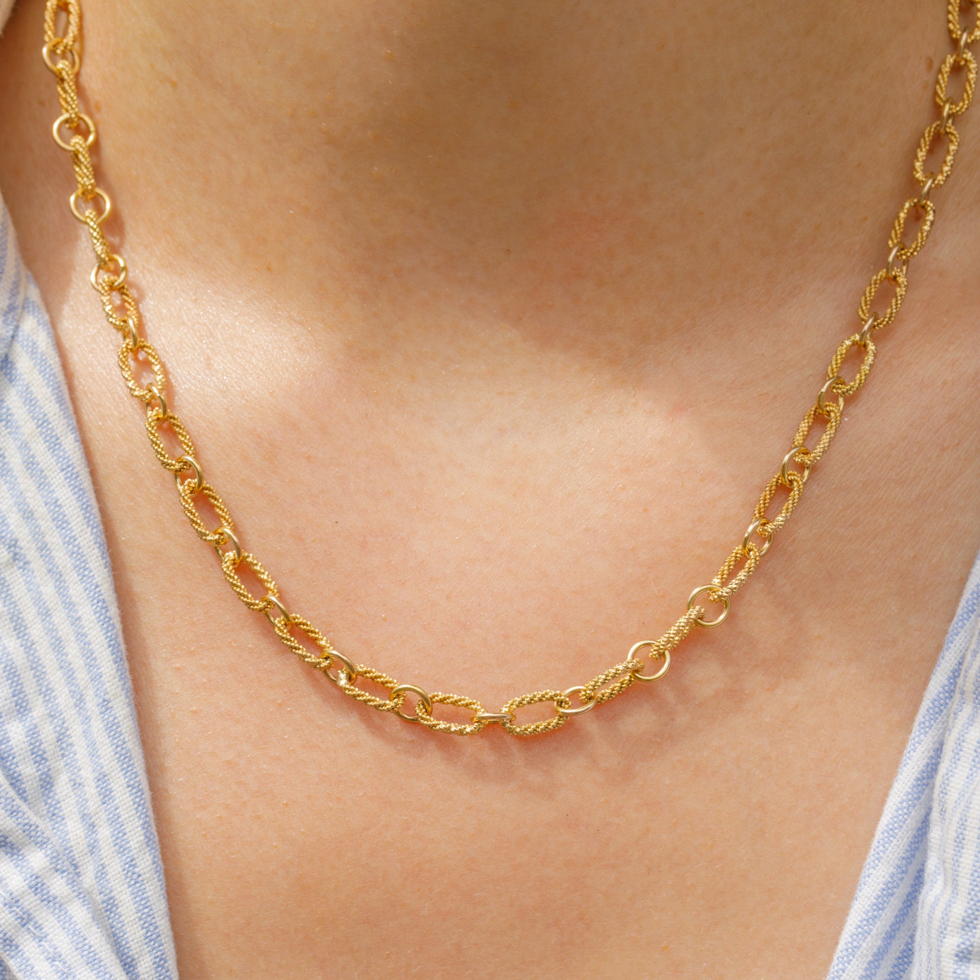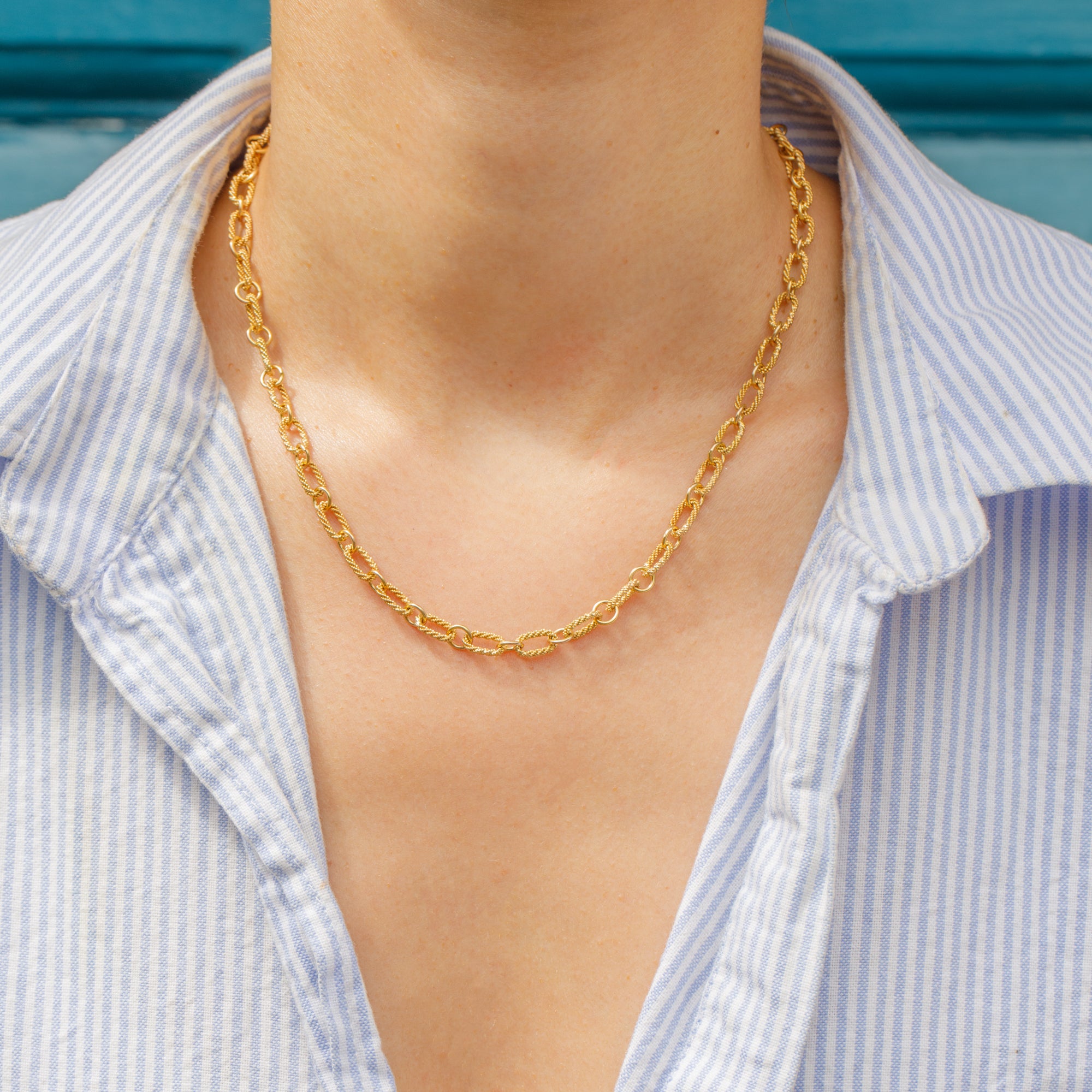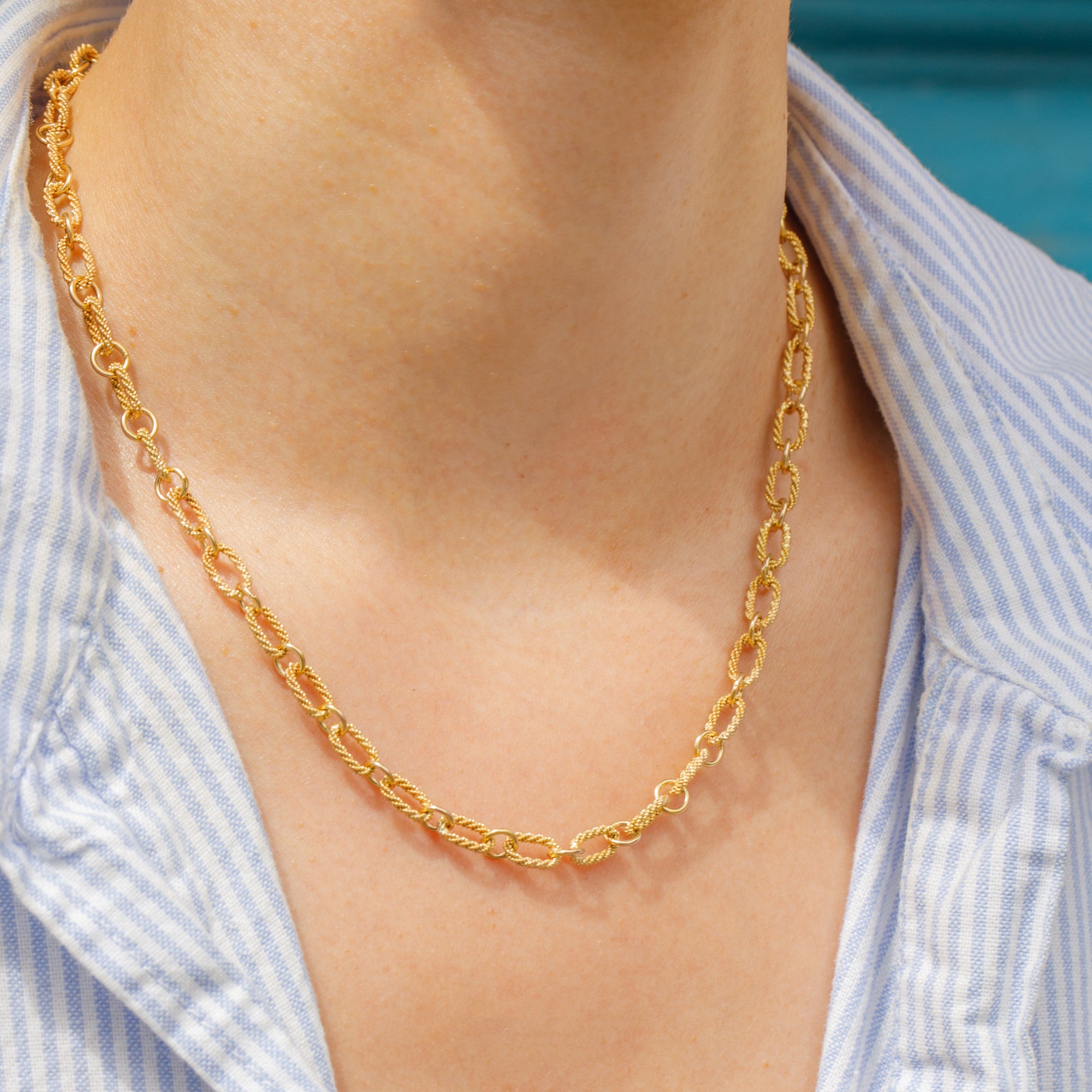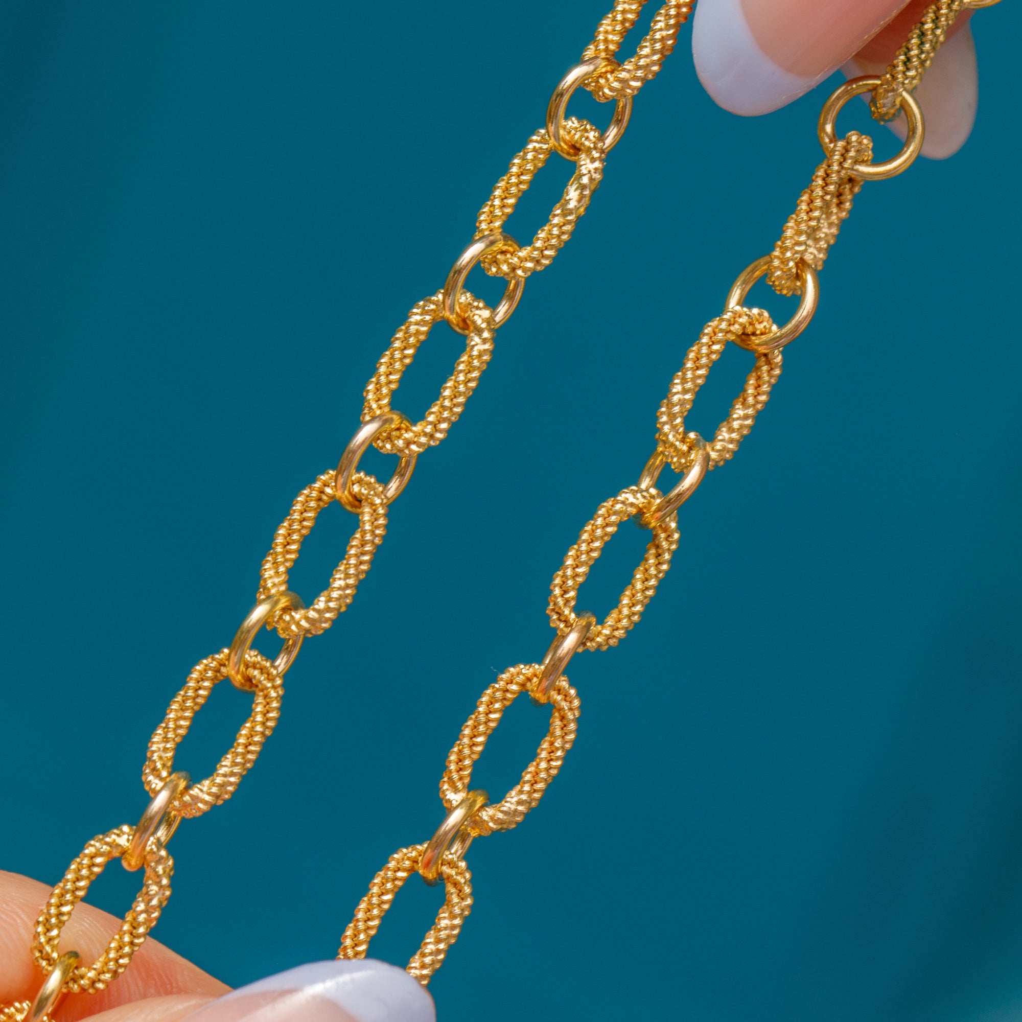 You can easily wear this impactful vintage Gold chain as a standalone piece, stack it with other chains in a modern neck mess, or affix a charm to its bolt ring to add a personal touch!