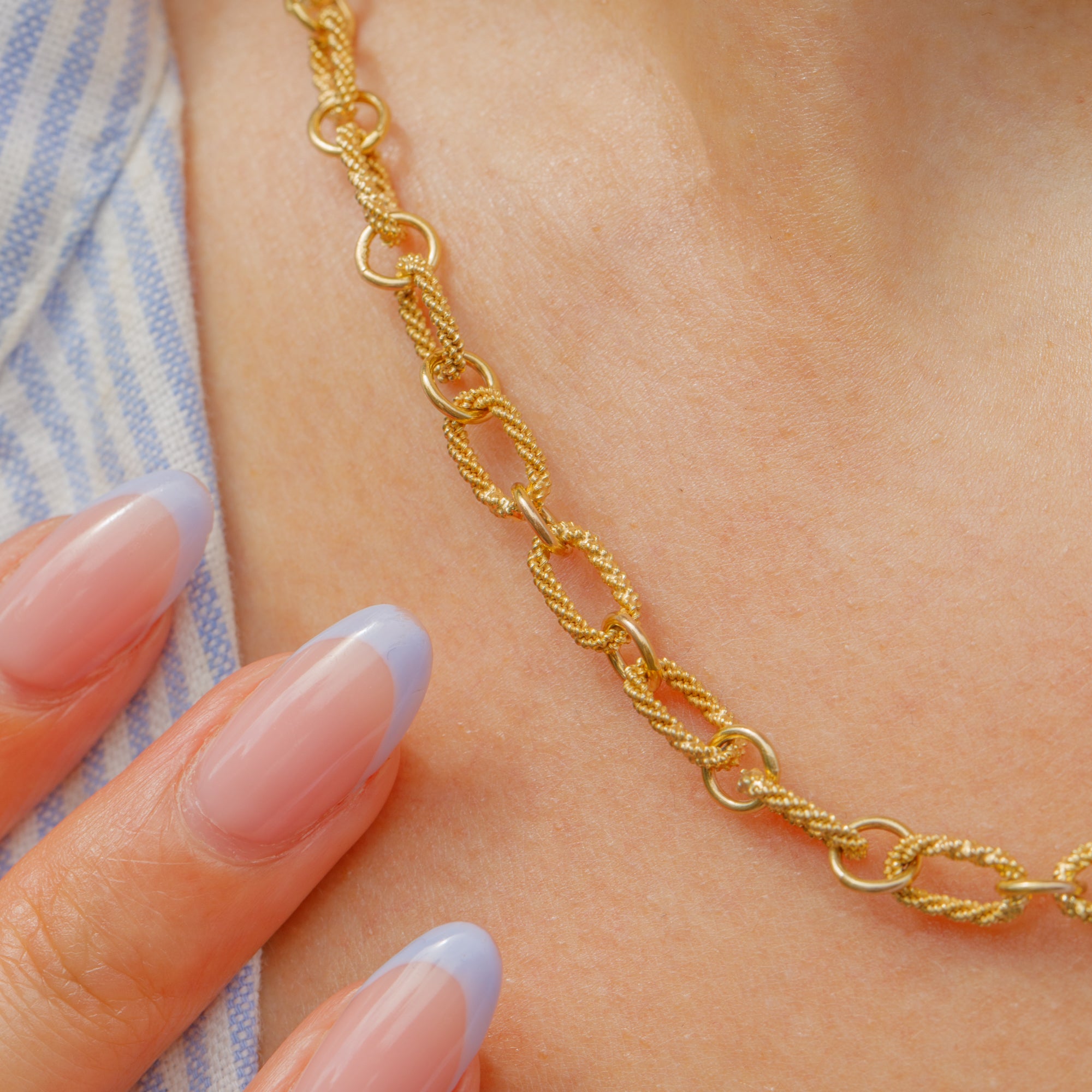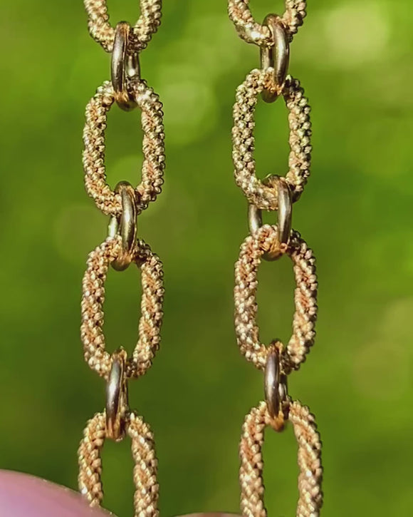 This is a fabulous 16" 9ct Gold fancy link chain! A Gold chain should be a staple piece in everyone's jewellery collection, making this timeless piece a superb choice! Boasting 16" of buttery 9ct Gold, it is a great wearable length, with the wonderfully textured links bringing a little something different.