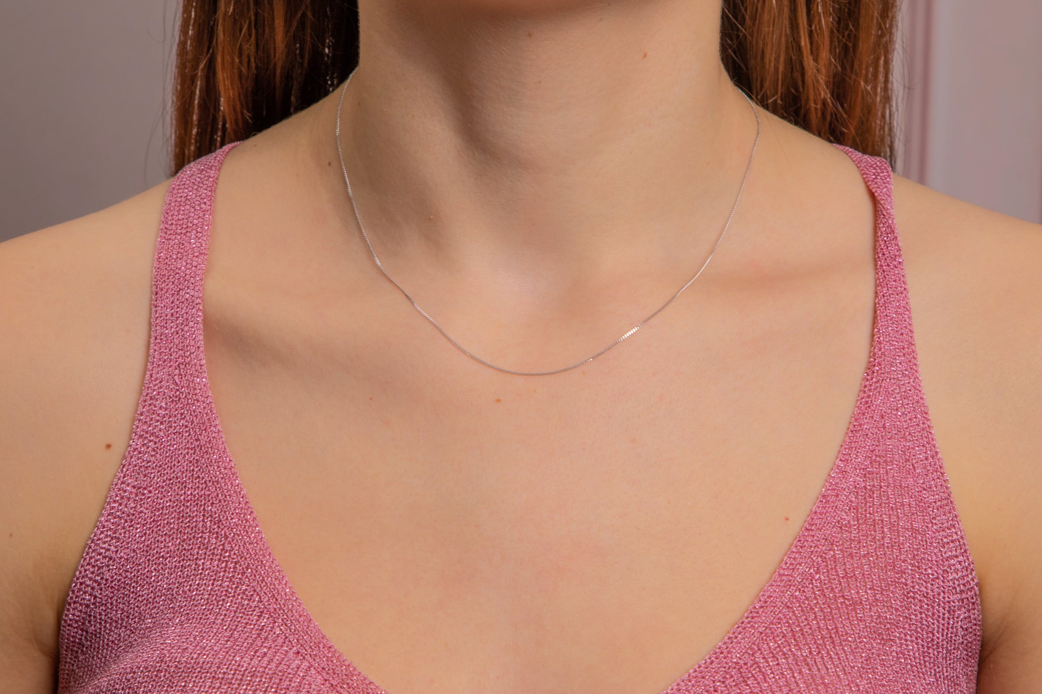 EXCELLENT. This 9ct White Gold skinny curb chain is in excellent condition throughout. The white Gold is bright and beautiful, the links are all secure and there is very little sign of wear. The bolt ring is in perfect working order allowing you to wear this piece confidently!