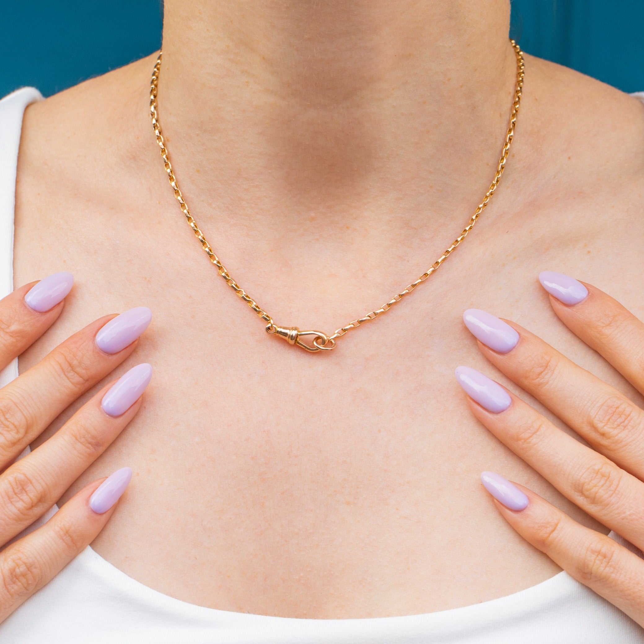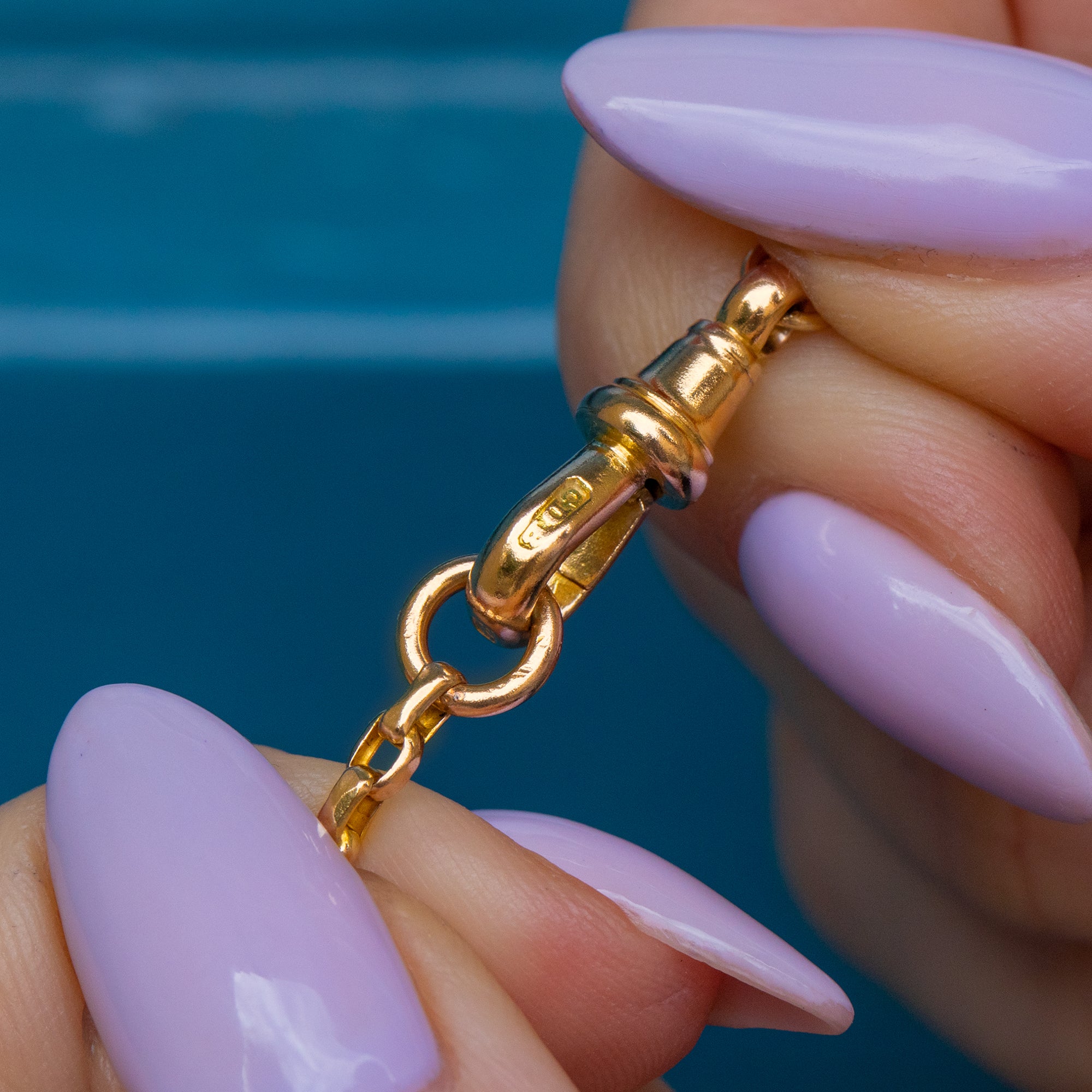 Antique Gold chains are an ideal piece to centre your look around; this piece's timeless and classic nature means that you will continually reach for her over the years. Complete with an antique dog clip attending to all your charm-holding needs, this Victorian belcher chain has a lot of wear potential!