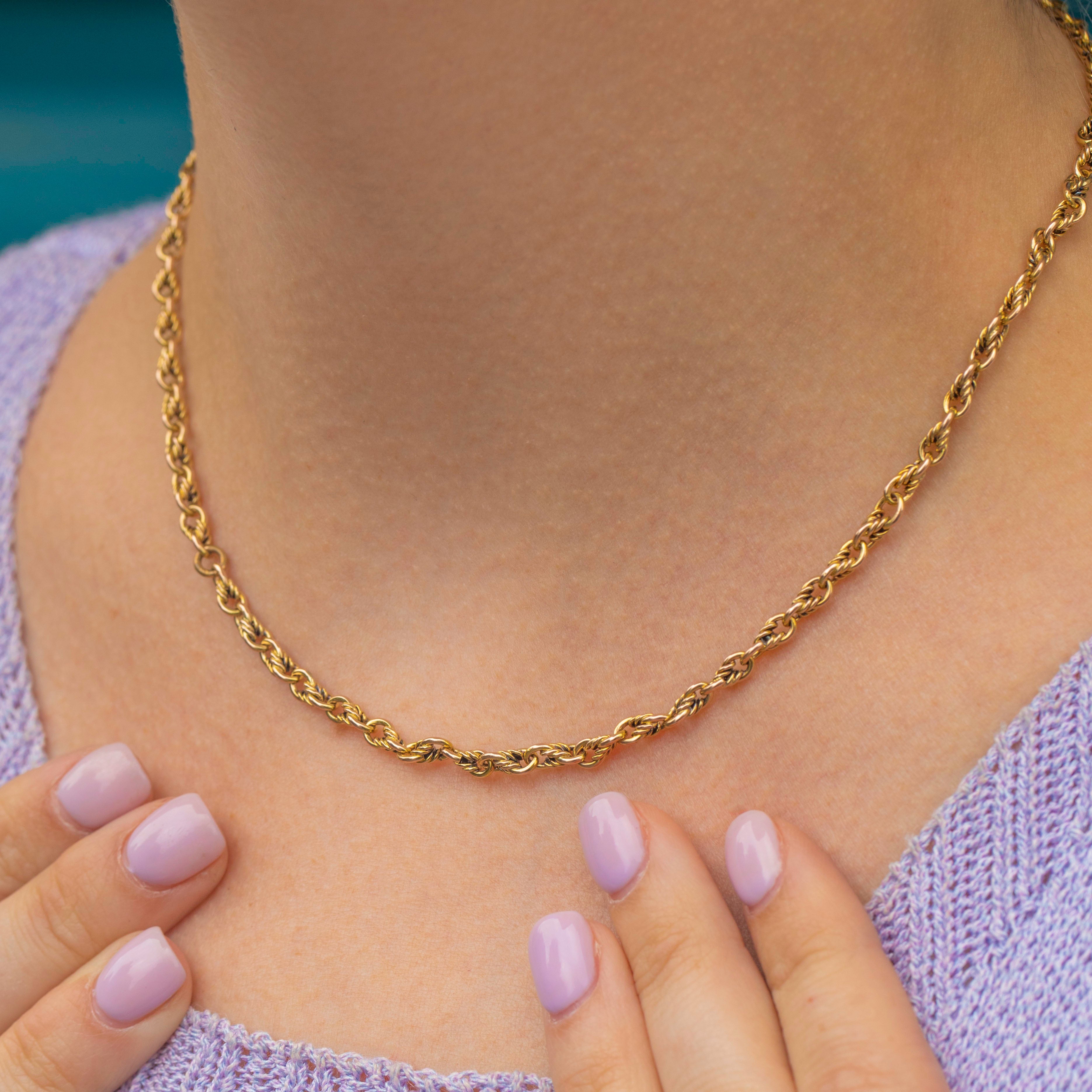 This 16" antique 9ct Gold lover's knot link chain is bursting with romantic sentiment! Crafted from sunny 9ct Gold links, the light bounces off each curvaceous lover's knot link, adding texture and warmth to your neck stack.