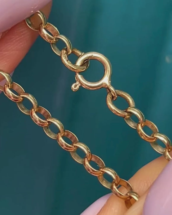 EXCELLENT. This 16" antique 9ct Gold belcher chain is in excellent condition! Her links are flawless and her bolt ring fastens securely; she's ready to wear straight from the get-go!