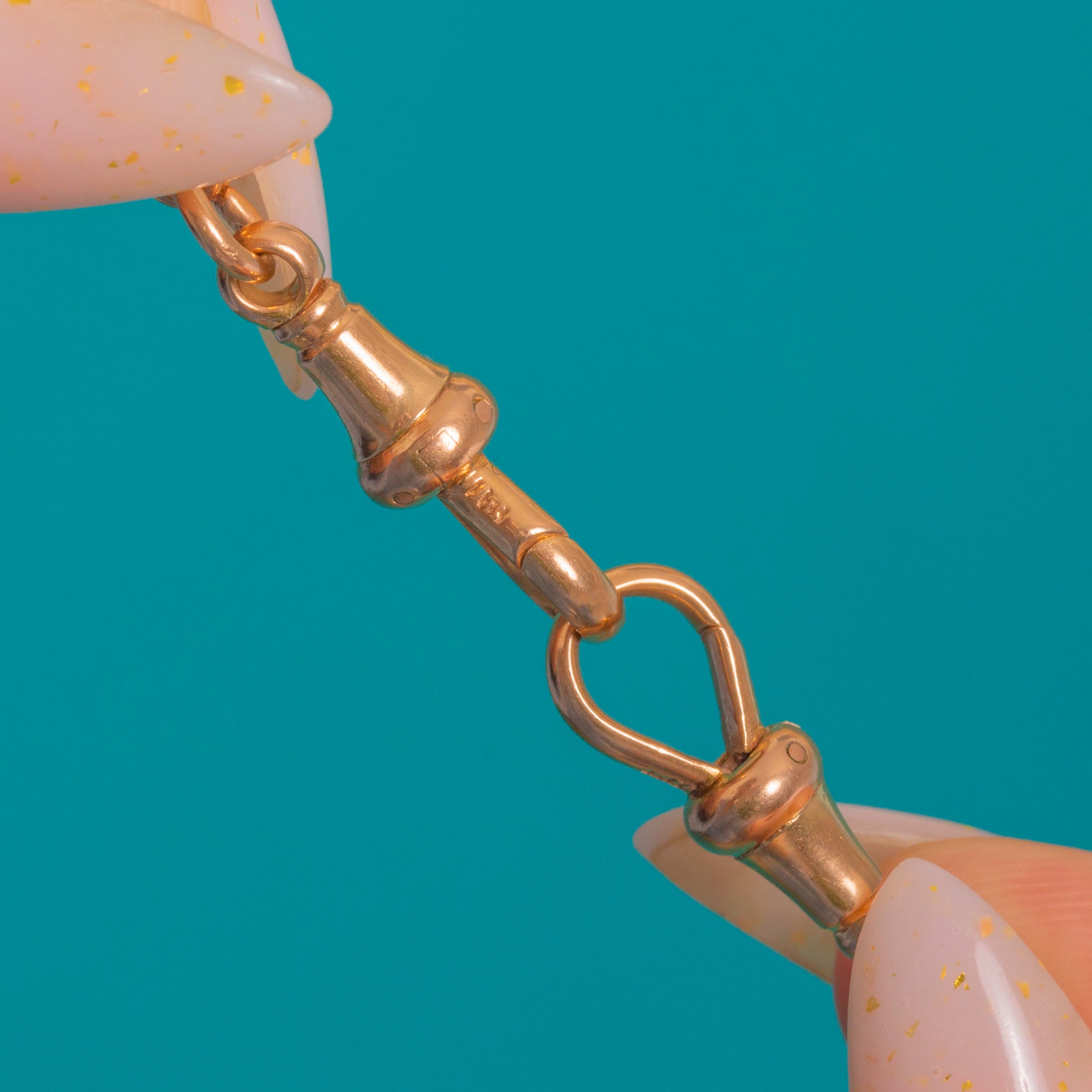 EXCELLENT: Bright polish with only light surface wear commensurate with age. The articulated links are in superb order with no dents noted, and the dog-clip fastening is secure and functioning smoothly. This piece has clearly been well cared for.