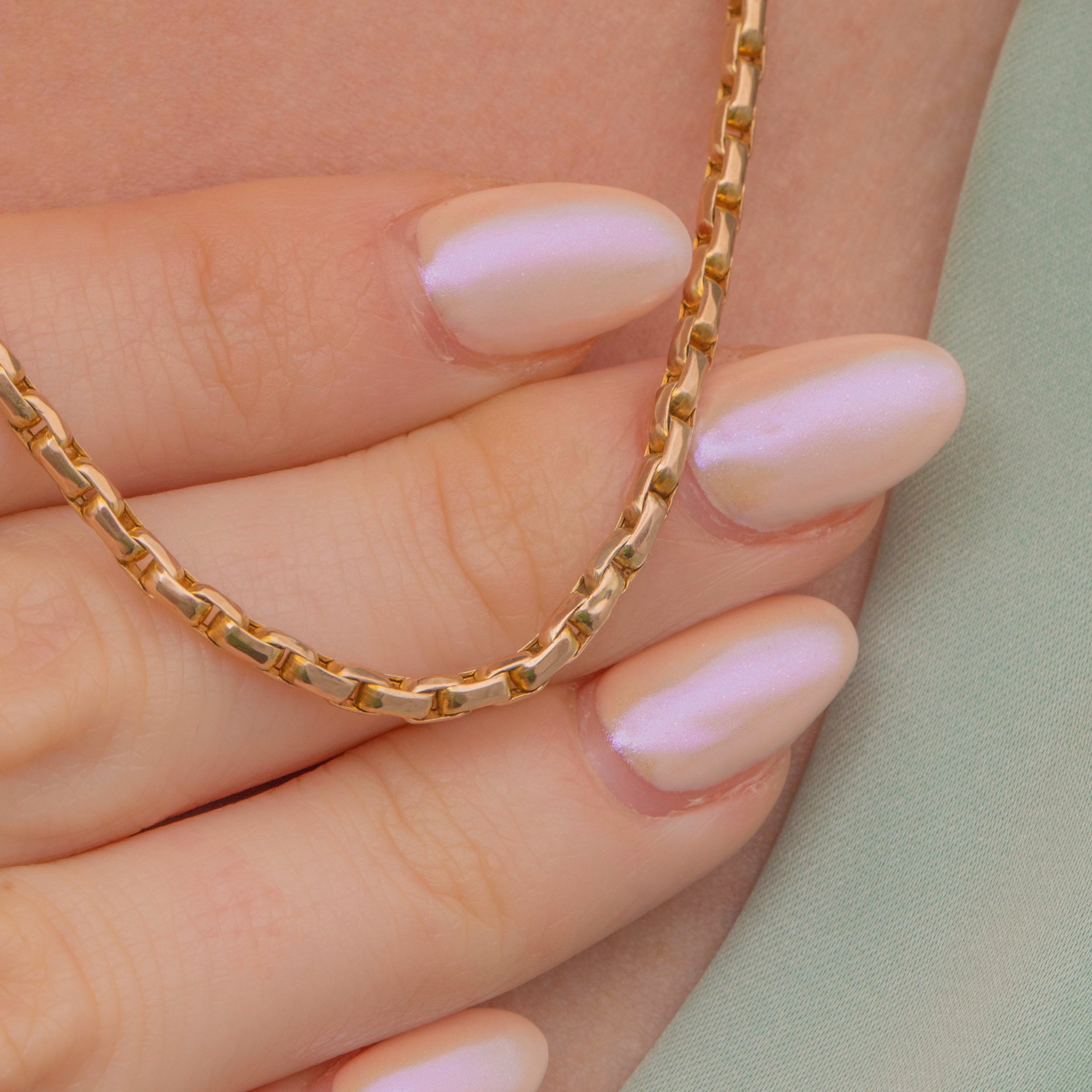 EXCELLENT. This antique 9ct Gold belcher chain is in very good condition. The chain has a secure set of links, and her dog clip is fully functioning allowing for safe and secure wear. The hue of the Gold is blushed and delicious, and we can't notice any significant wear. Simply pop this antique Gold chain on to add an effortless touch of sophistication to any look!