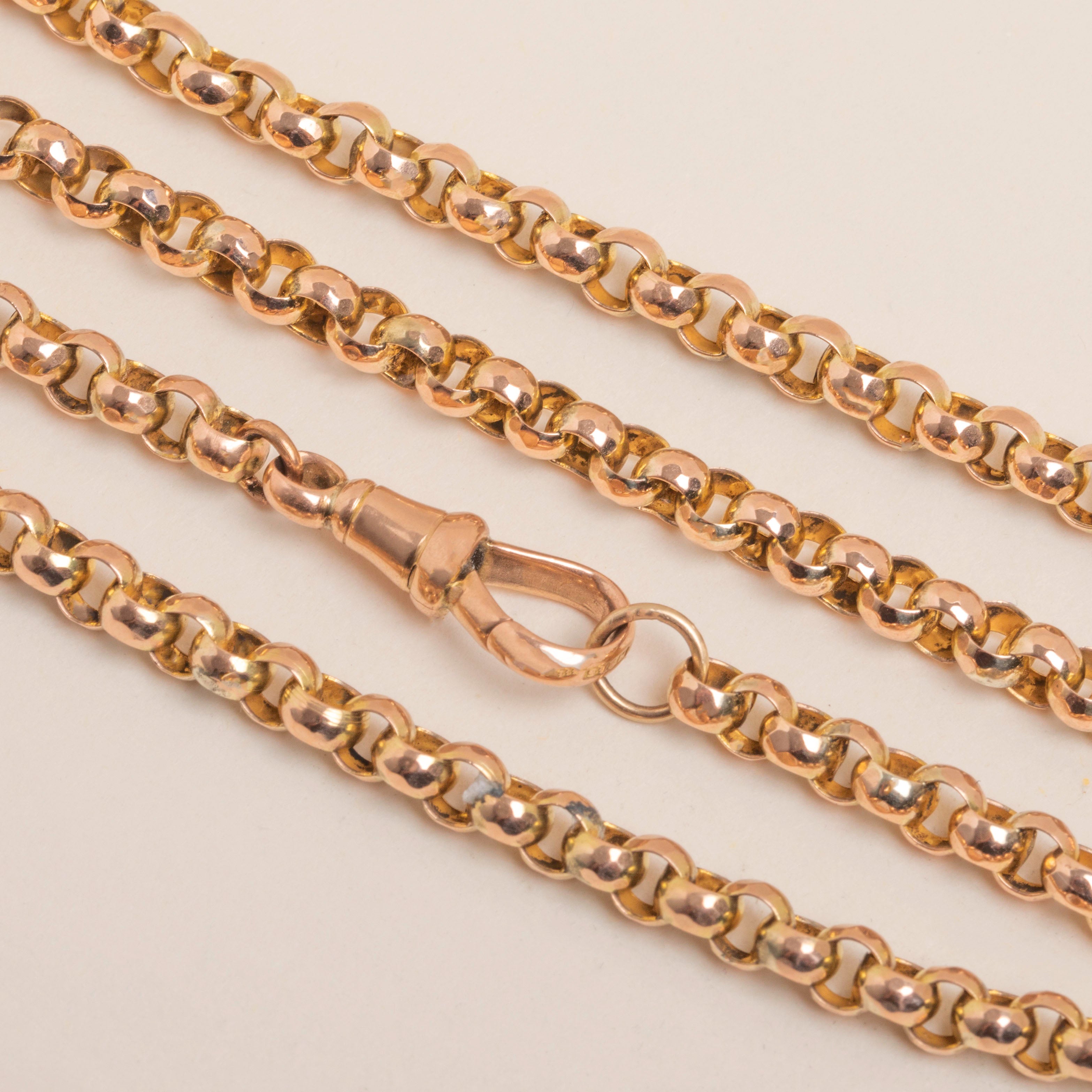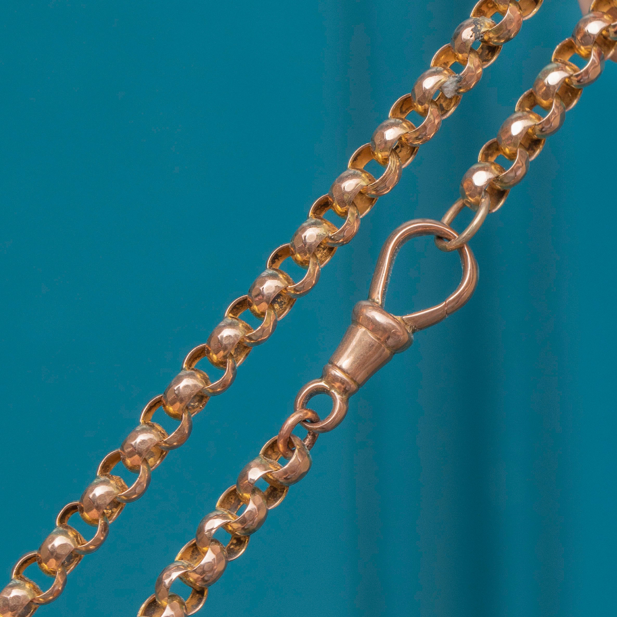 There are so many reasons why you will love this Victorian chain. The chain's colour is a rich hue of deep Gold, so she will is not only a fine collector's item, but also will instantly bring that element of luxury that antiques are so well known for. Layer this piece with your other Gold chains, or attach some charms to the dog clip!