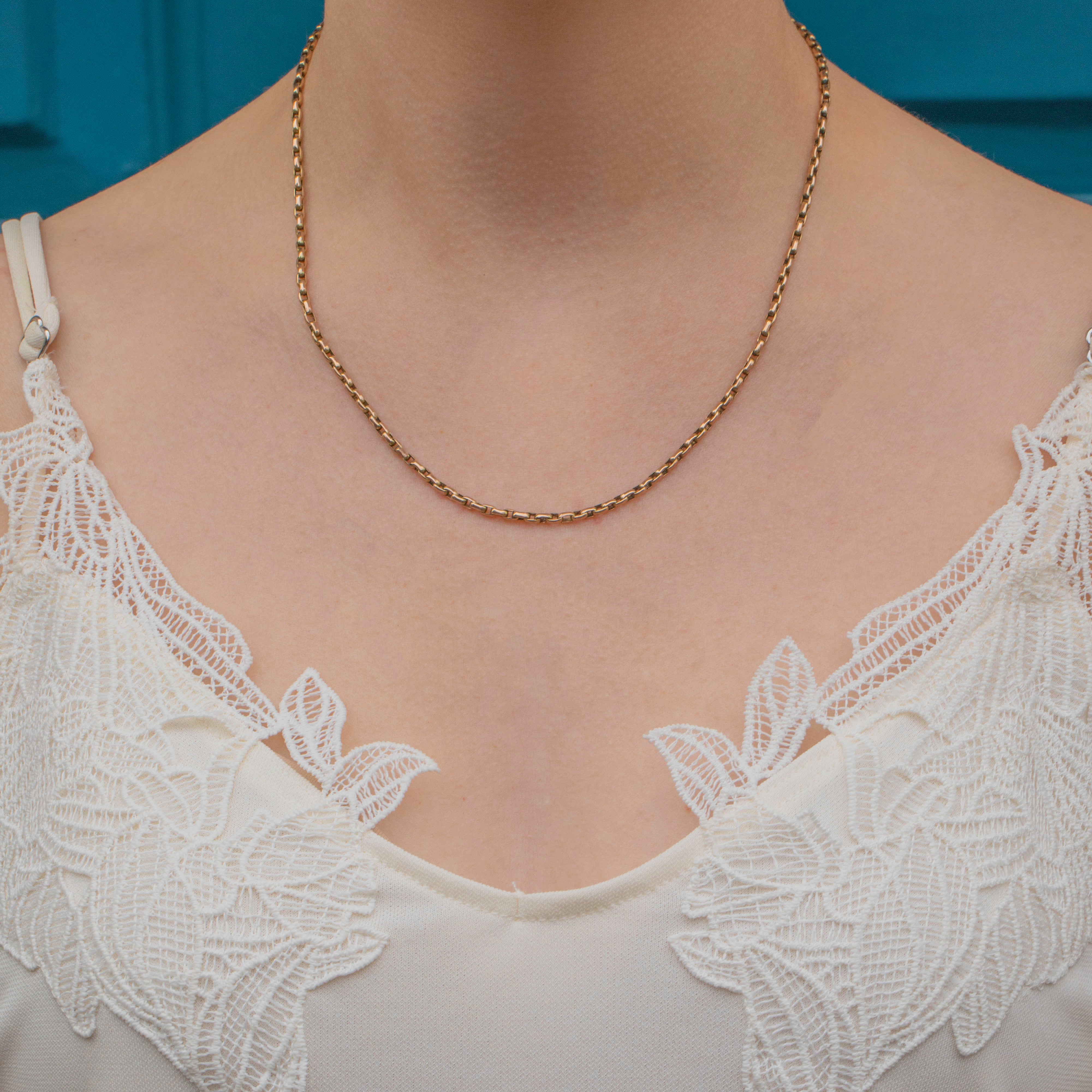 A sumptuous delight, this antique 9ct Gold belcher chain will bring texture and luxury to your repertoire! Rectangular belcher links make up the 17" length of this Victorian chain, with softly faceted edges catching the light beautifully and sending shimmers cascading across your décolletage.