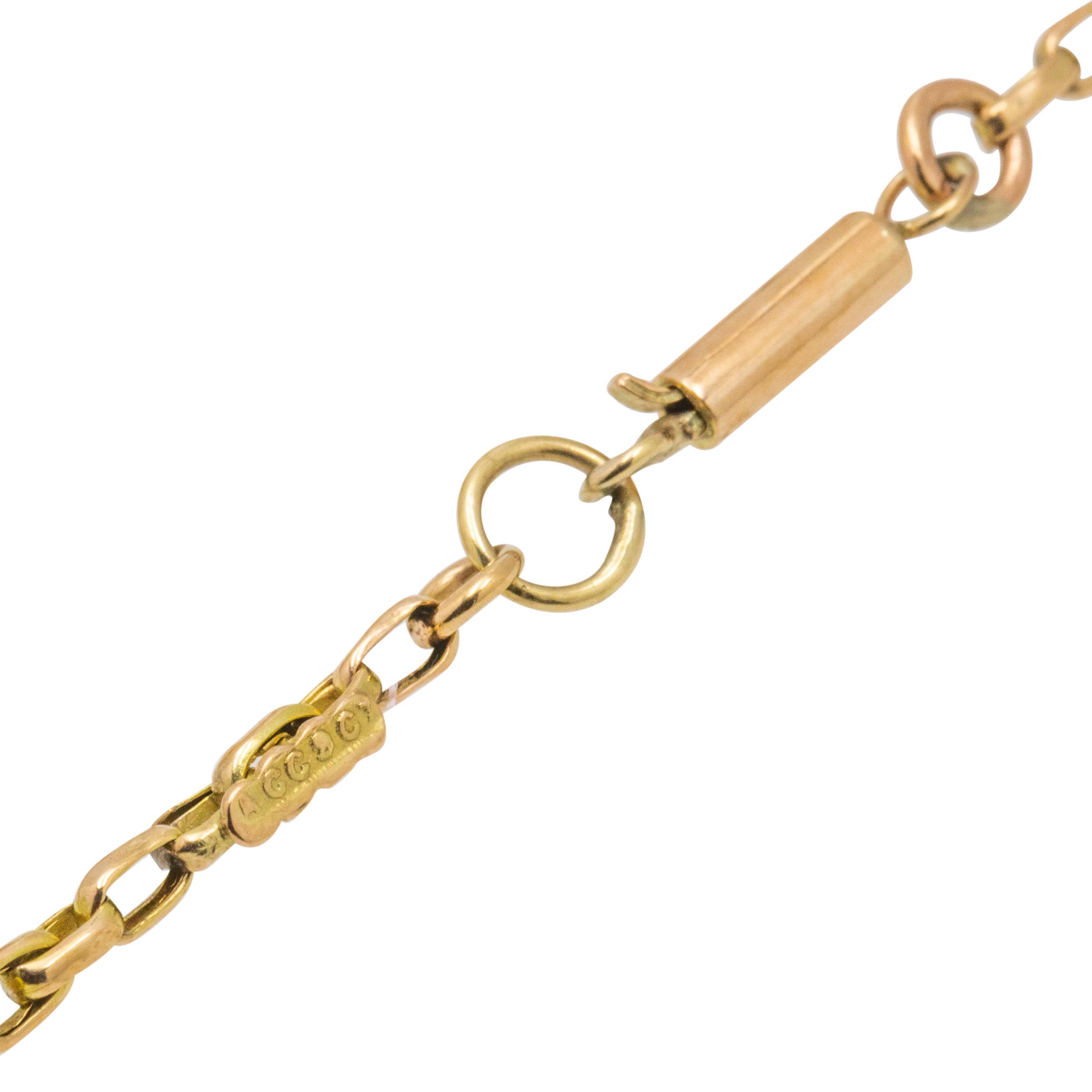 EXCELLENT. This 17" antique 9ct Gold belcher chain is in superb condition. The links are all securely affixed with an even rosy hue throughout, and the barrel clasp is in perfect working condition allowing you to wear this Victorian Gold chain with utmost confidence!