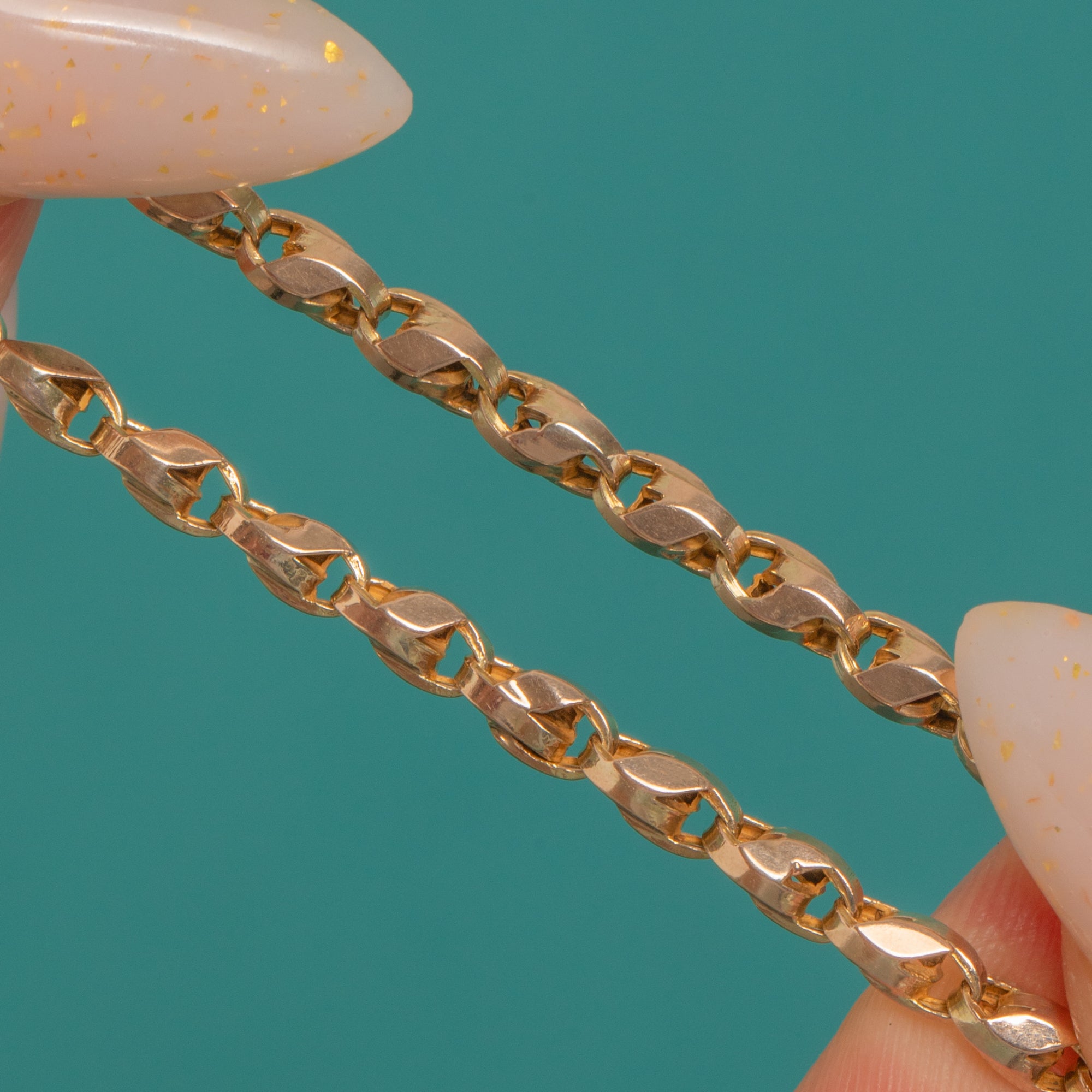 Catch the light with this Victorian 9ct Gold Tulip chain, its sleek, faceted links delivering a delicious sparkle with every movement. Crafted in a warm, buttery hue, this classic single-strand chain feels luxuriously smooth and beautifully refined, perfect worn solo or styled to elevate your favourite pieces.