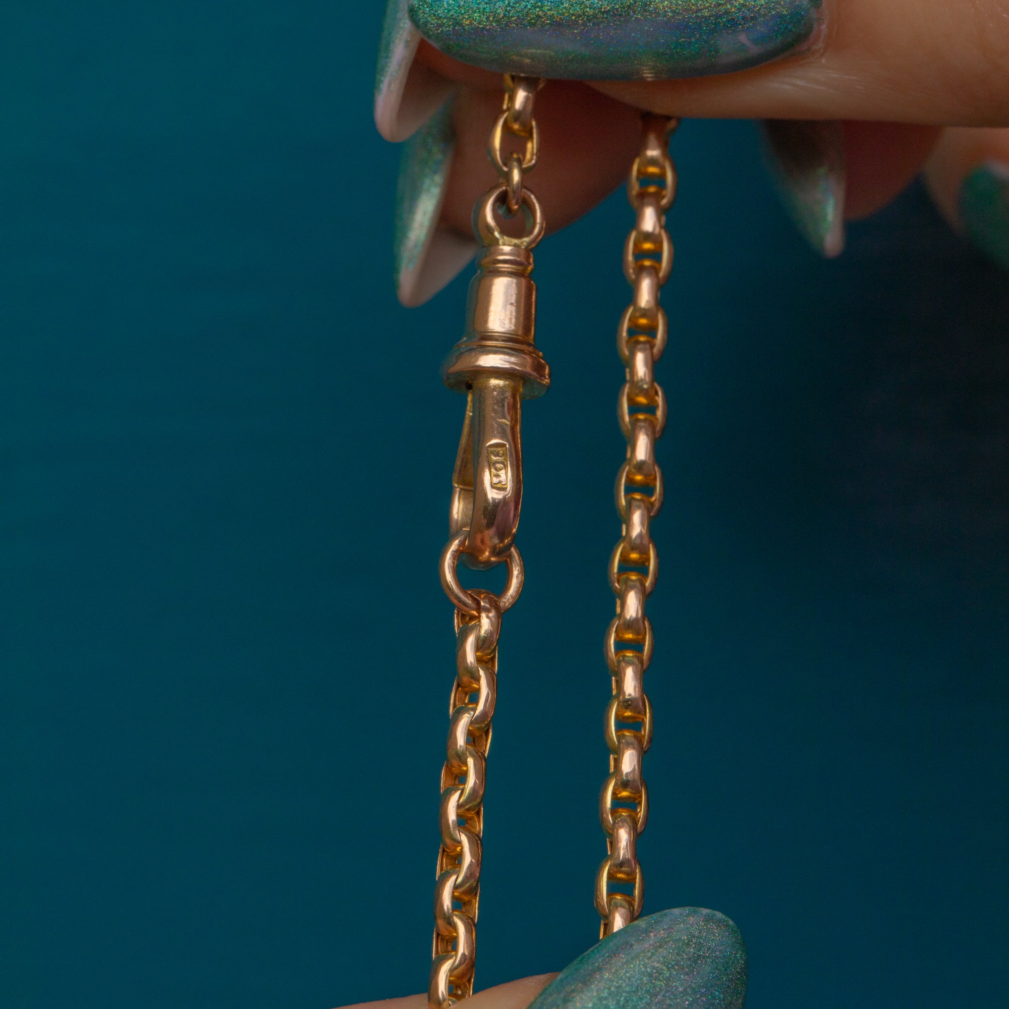 EXCELLENT. With a secure set of links and a fully functioning dog clip, this antique 9ct Gold belcher chain is in impeccable condition!