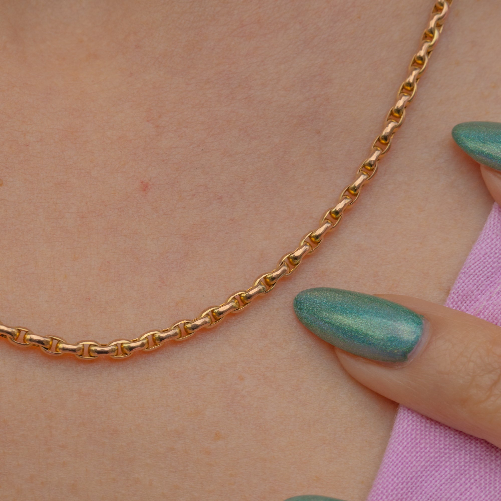 This antique 9ct Gold belcher chain is set to become your new go-to piece! Crafted from over 8 grams of solid Gold, this Victorian chain is formed of rectangular belcher links that catch the light beautifully as she drapes elegantly across your collarbones.