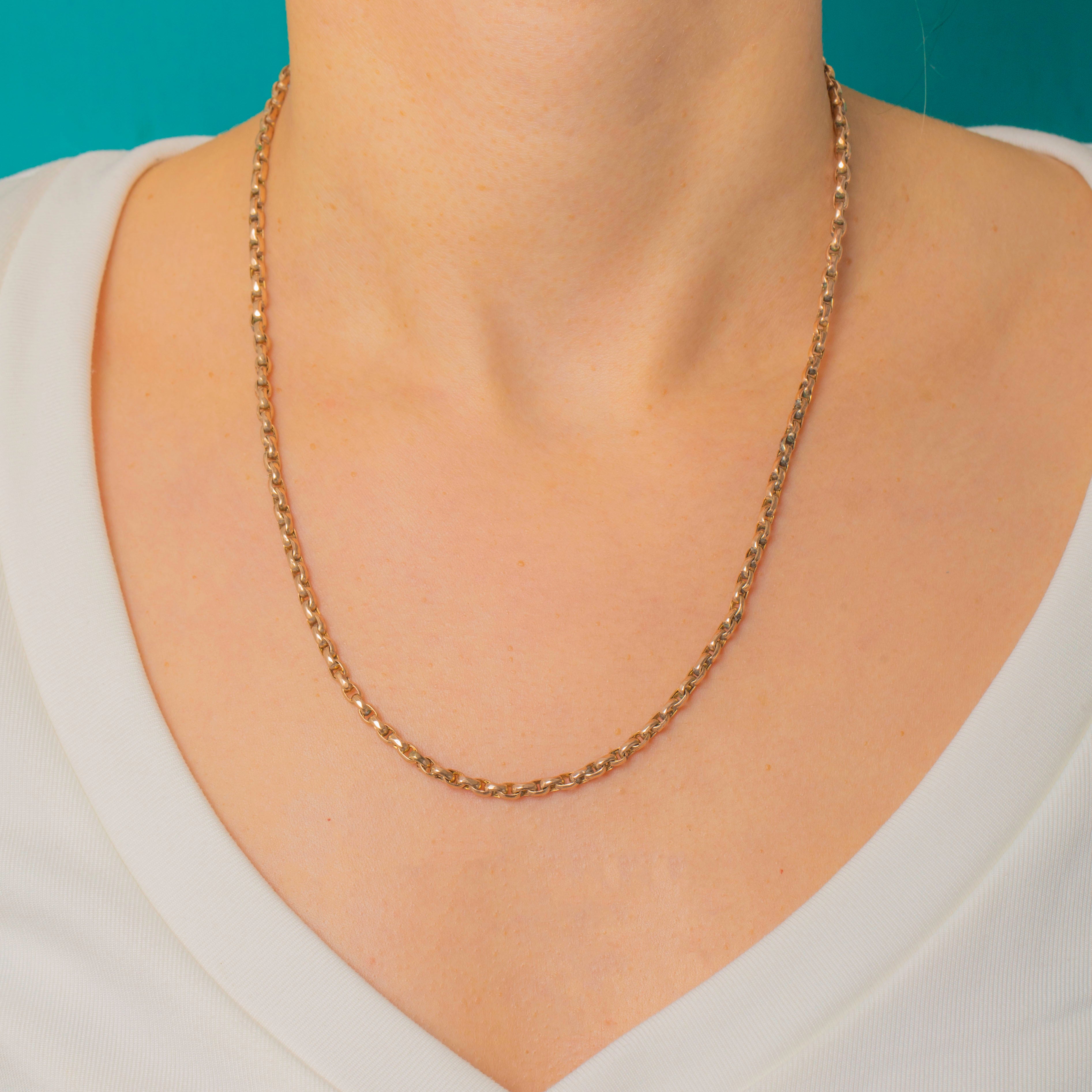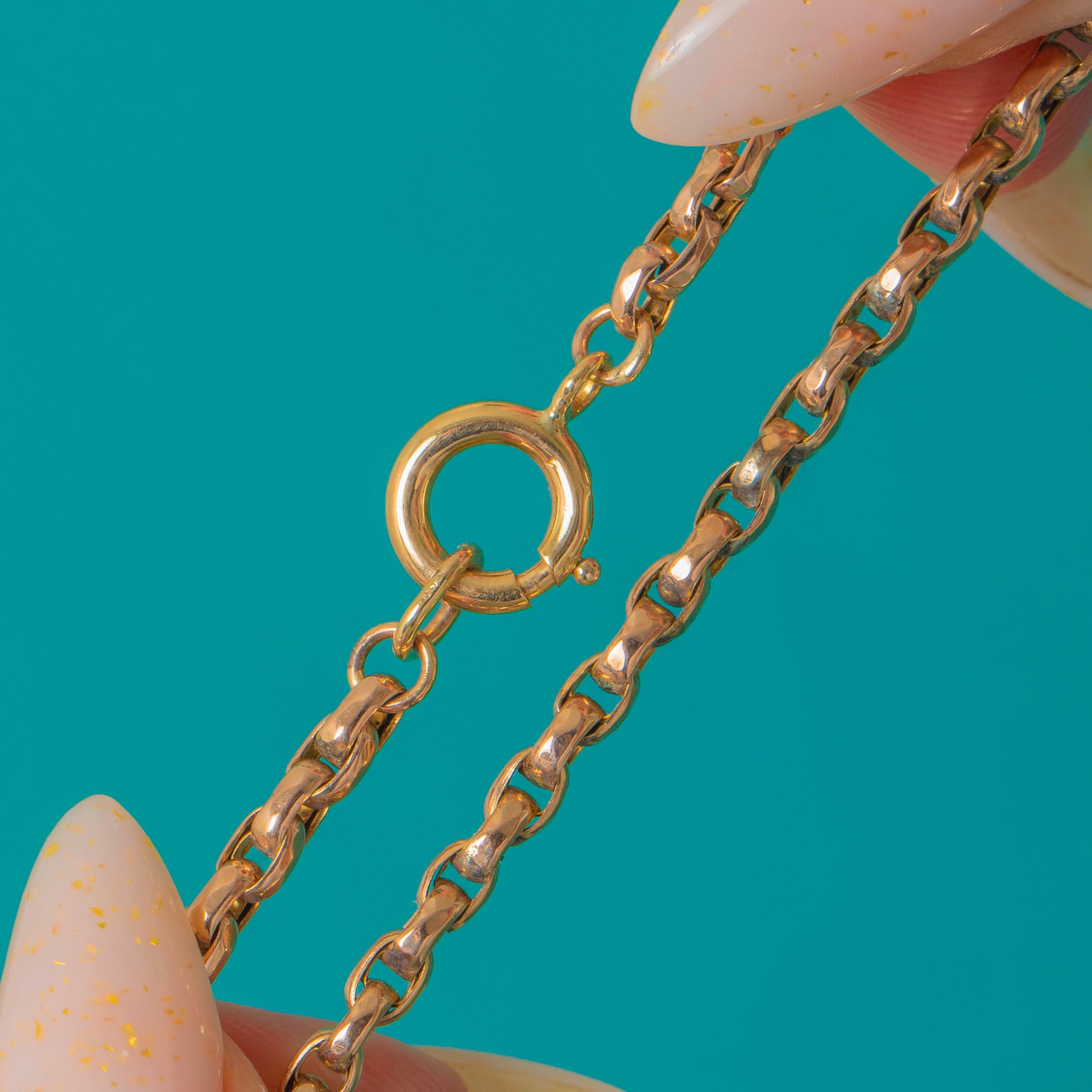 Understated and beautifully made, this Victorian 9ct Gold faceted oval Belcher chain is a timeless essential. Each oval link is subtly faceted to catch the light, creating a refined shimmer and polished glow that feels luxurious yet effortless. At 10.4g, it has a satisfyingly substantial drape and sits elegantly at the collarbone.