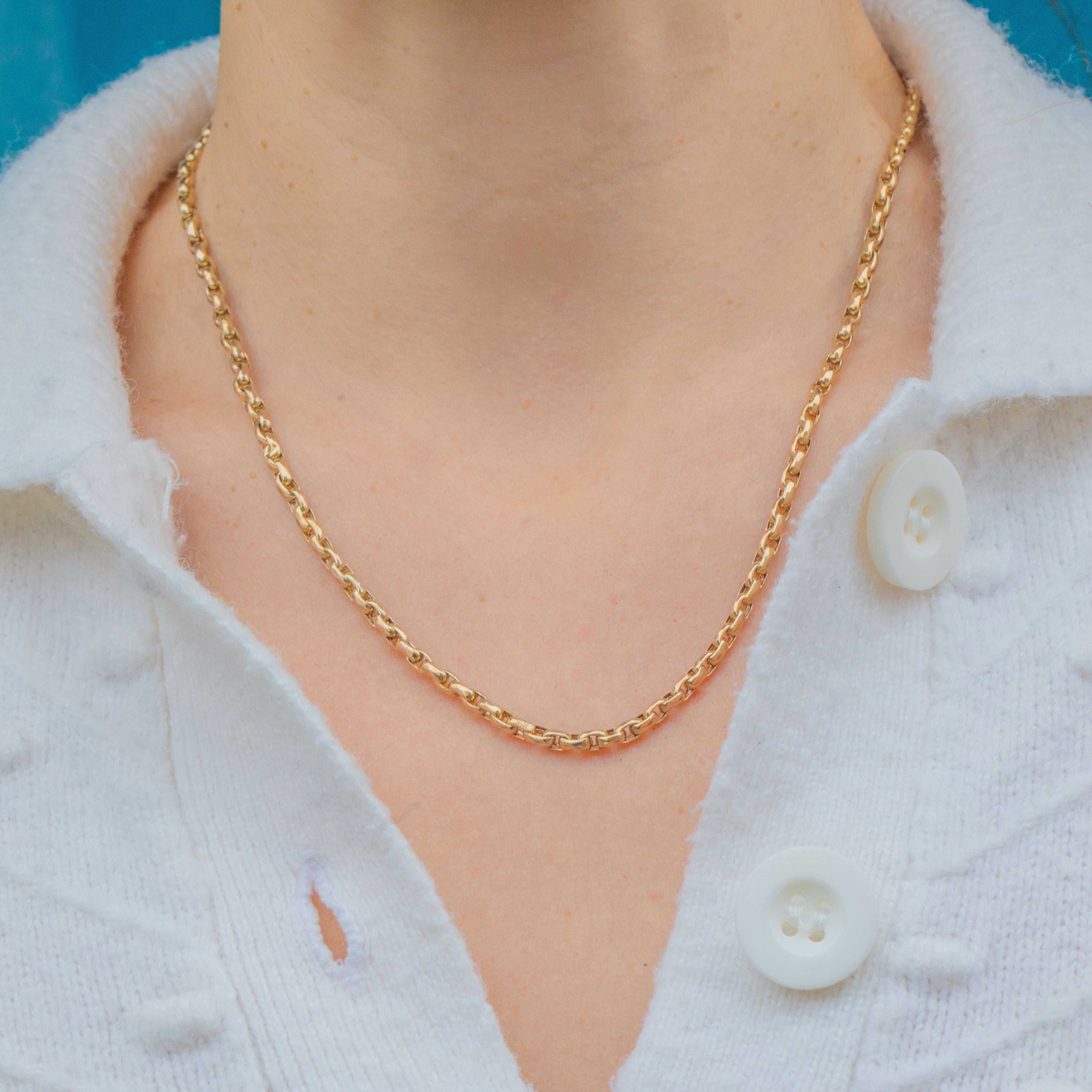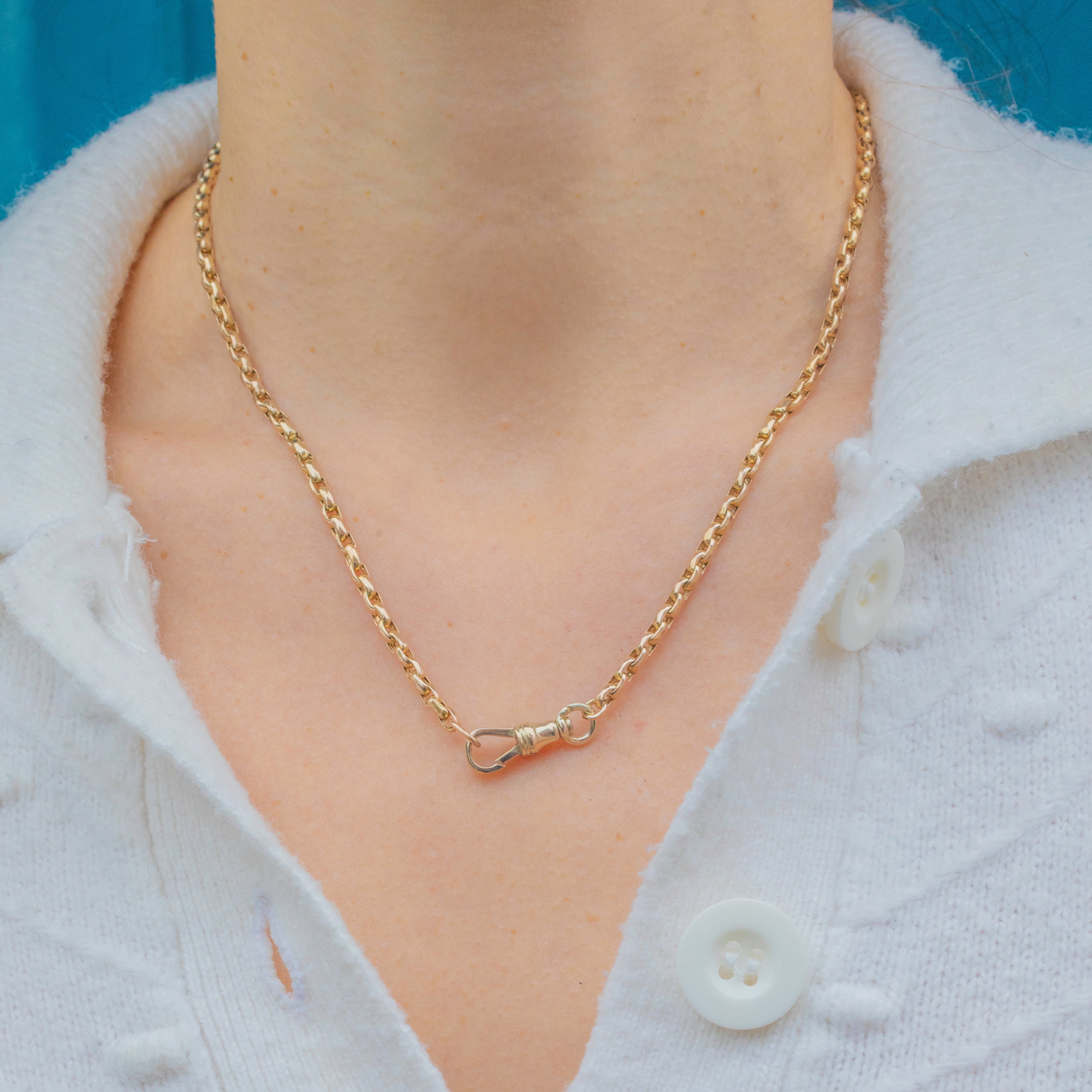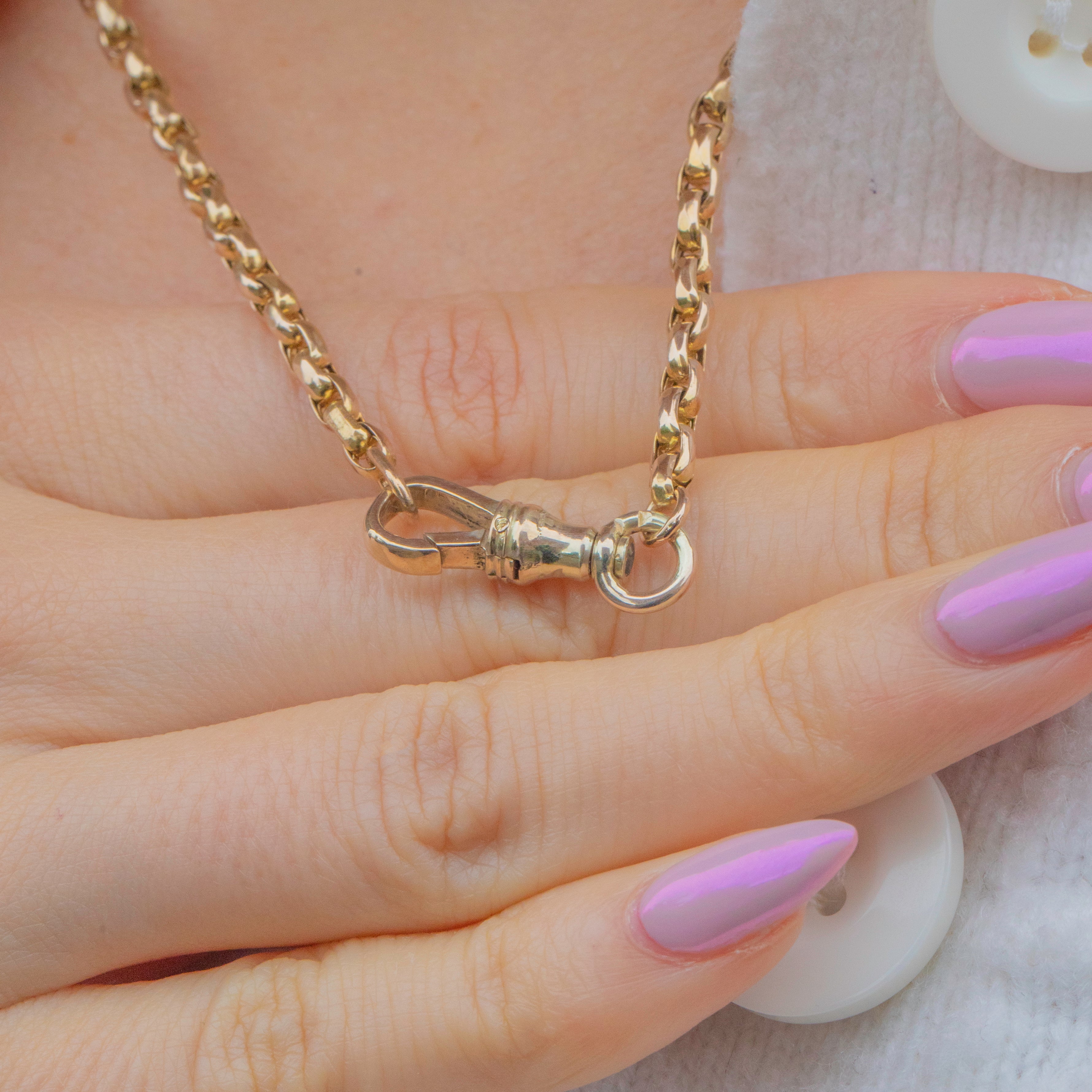 Measuring 18" long, this chain sits perfectly at the collarbone, ideal for wearing alone or with your favourite pendant or charm. A classic piece of Victorian craftsmanship that feels substantial and luxurious on the neck.