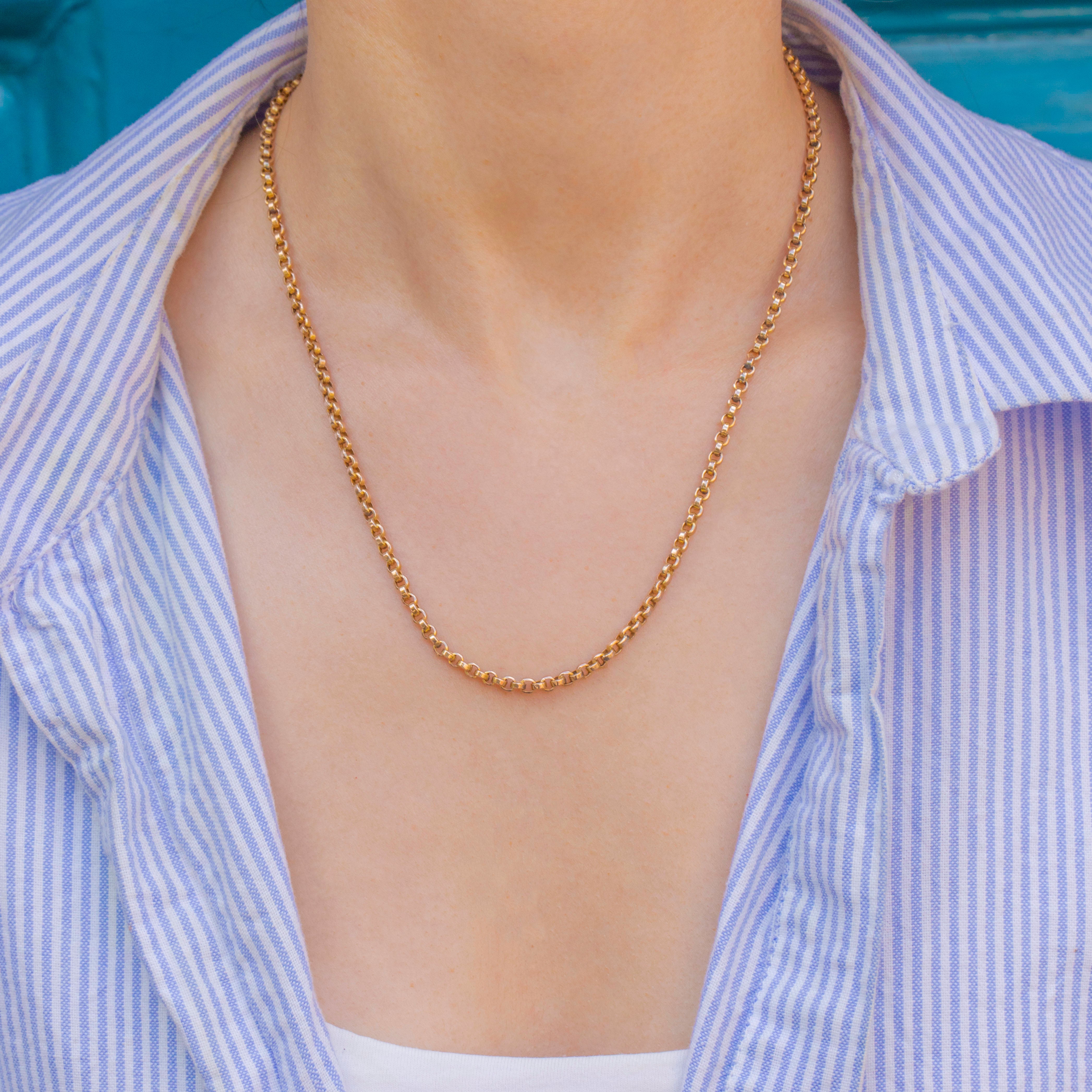 Crafted from glossy 9ct Gold, her interlocked belcher links drape like liquid Gold as they cascade across your décolletage. At a desirable 18" in length, this she is ideal for layering as part of your neck mess or wearing as a standalone piece - the options are endless!