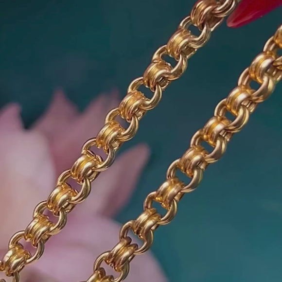 Add some texture and depth to your necklace stack with this opulent antique 9ct Gold double belcher chain! Crafted from solid 9ct Gold, this chunky delight boasts striking double belcher links that catch the light magnificently.