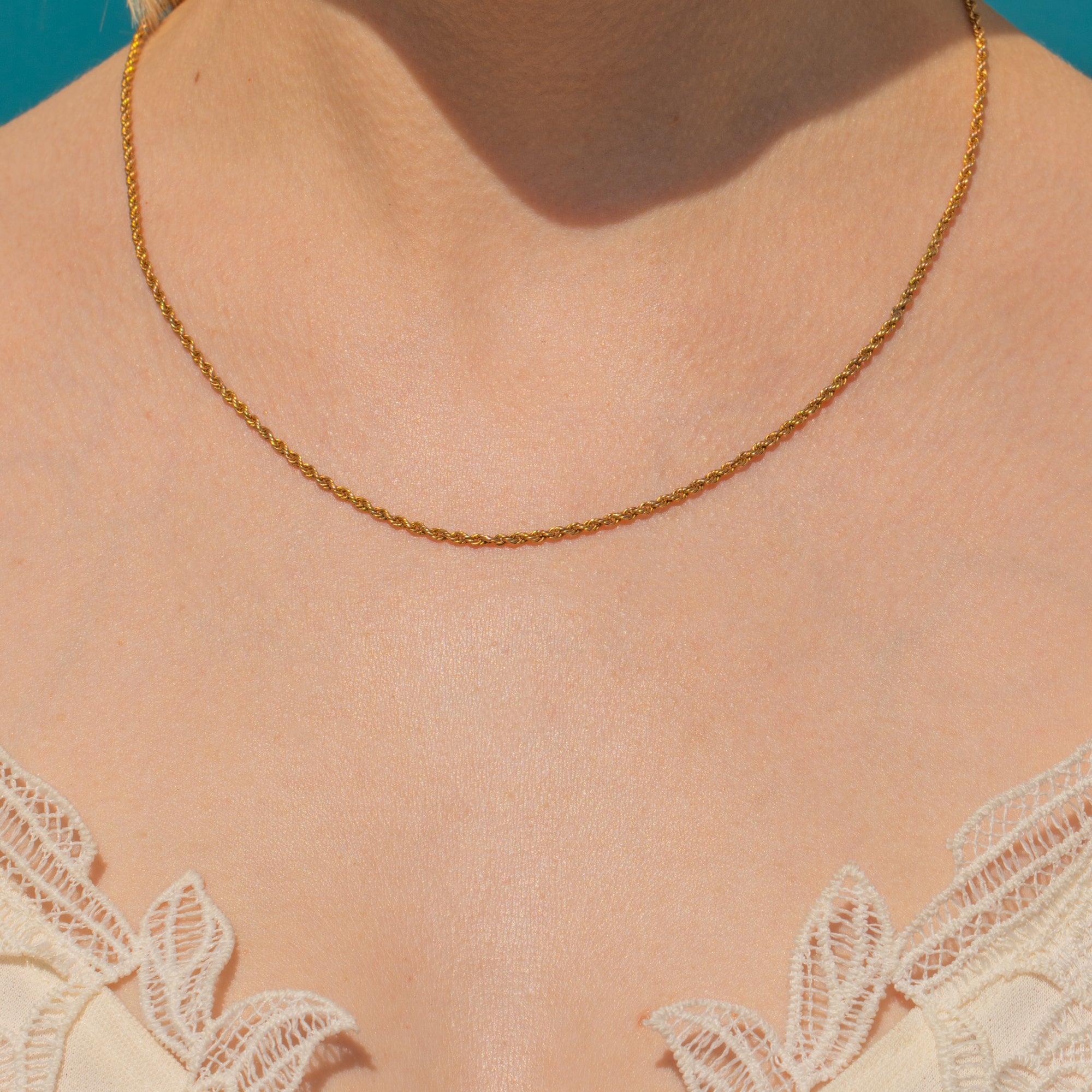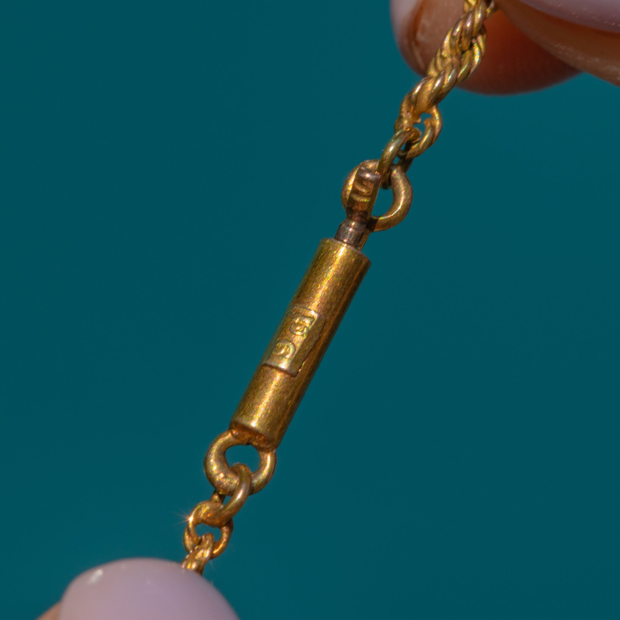 EXCELLENT. This 18" antique 9ct Gold twisted rope chain is in wonderful condition throughout. Her twisted rope chain is tightly woven throughout, with no surface abrasion to note. Her 9ct Gold has a lovely saturated hue and gleams when worn. Her barrel clasp is in perfect working order, so can be worn with the utmost confidence. The perfect addition to your antique jewellery collection!