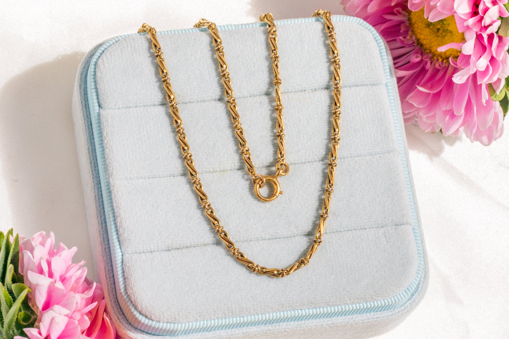 We think this 18" antique French 18ct Gold fancy chain is a must for your collection. This striking piece has a lot to love, boasting the most glorious and rich Golden hue!