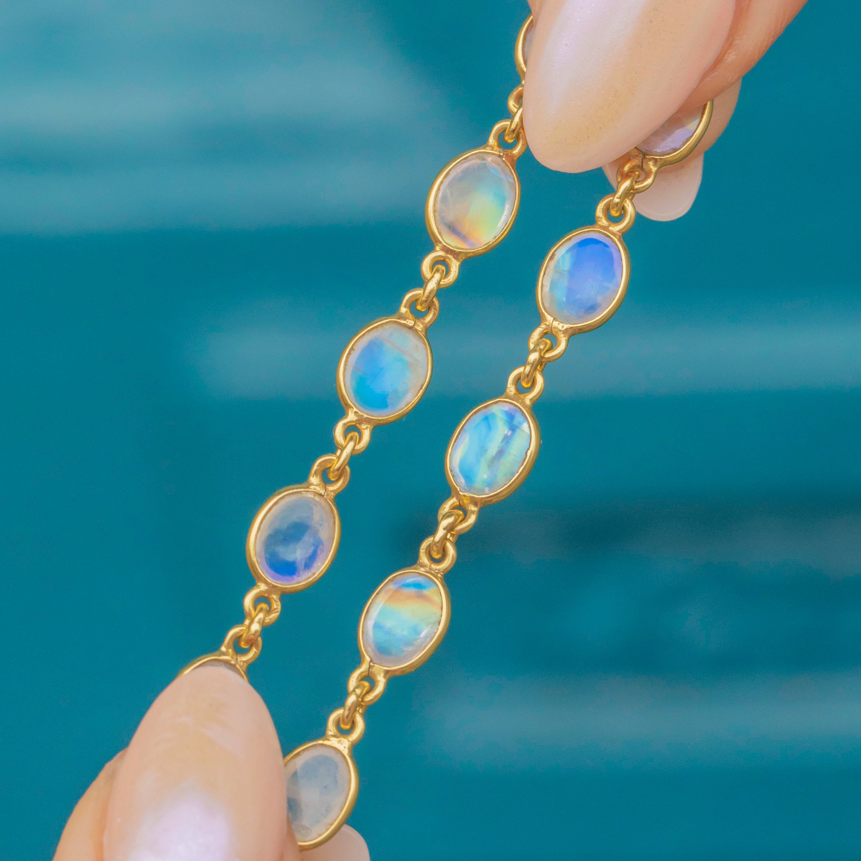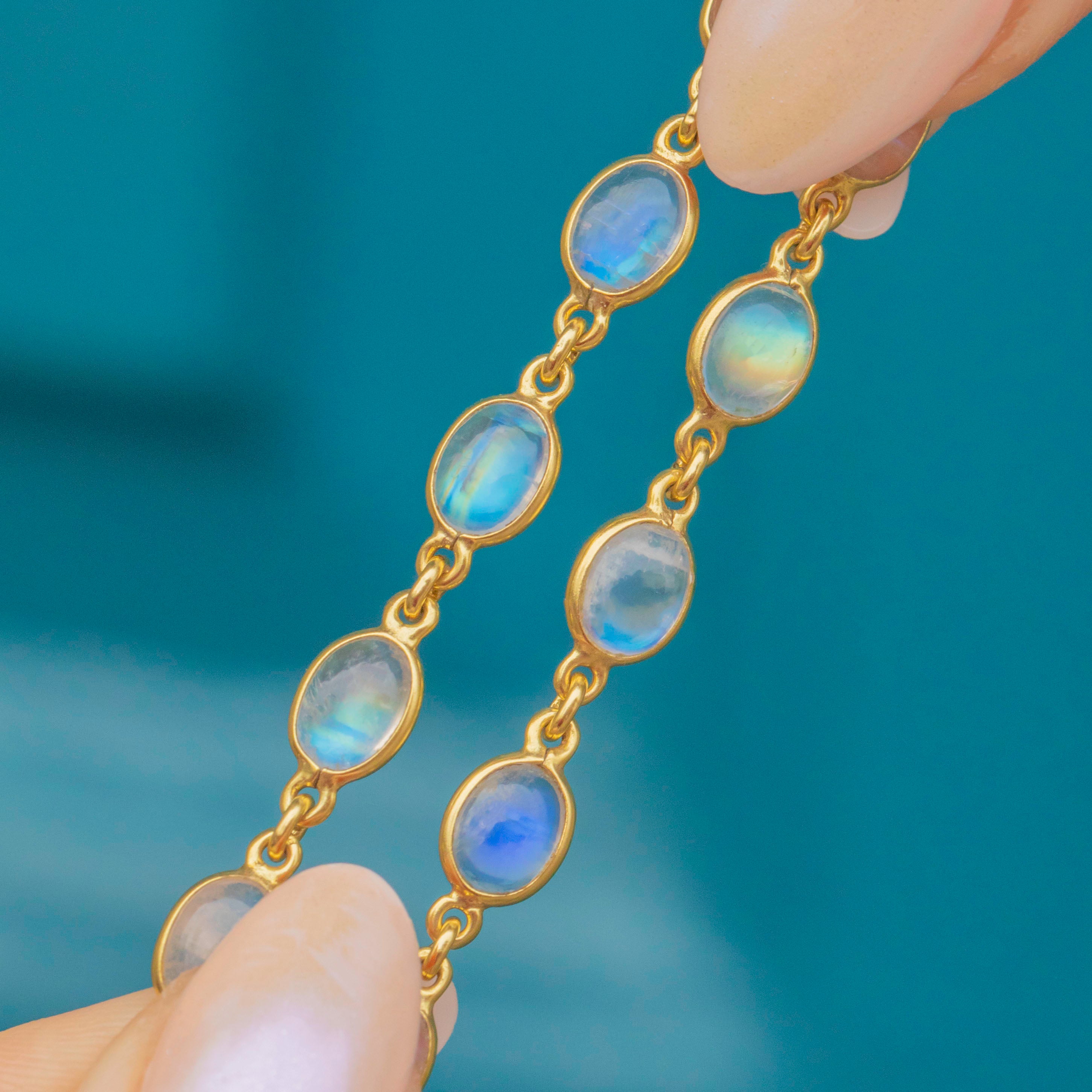 The 18-inch length will elegantly drape across your collarbones, sending blue and green adularescence cascading across your decolletagé as the smooth-cut Labradorite cabochons catch the light. A superb piece of mid-century jewellery, this necklace will instantly add vintage charm to your outfit!