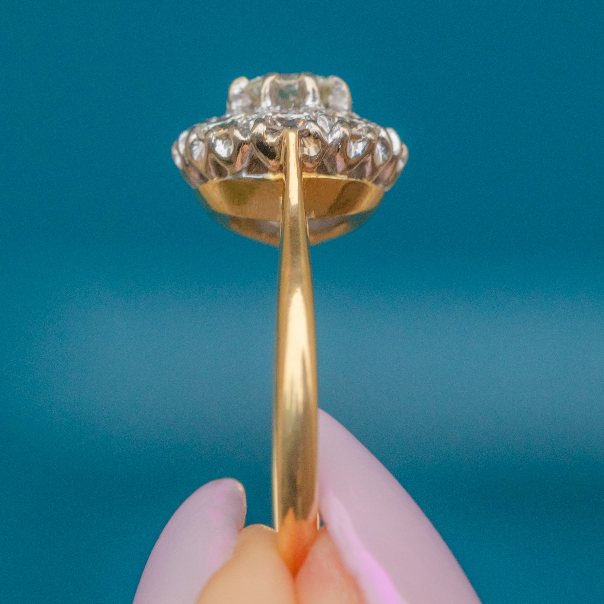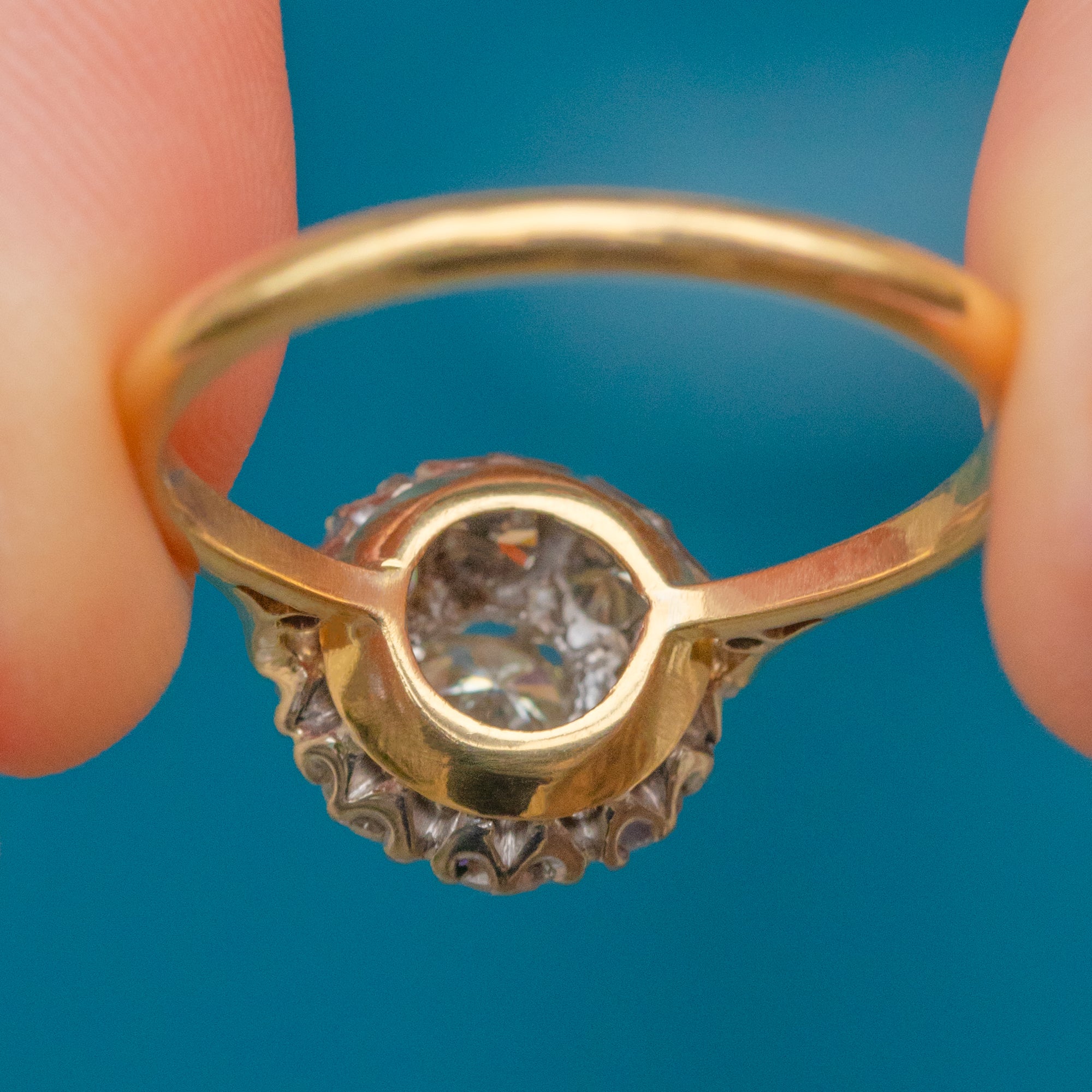 Crafted in rich 18ct Gold with classic proportions and timeless elegance, this piece has all the brilliance and sophistication of the mid-20th century. Whether worn as a statement piece or a vintage engagement ring, it exudes enduring glamour and refined style.