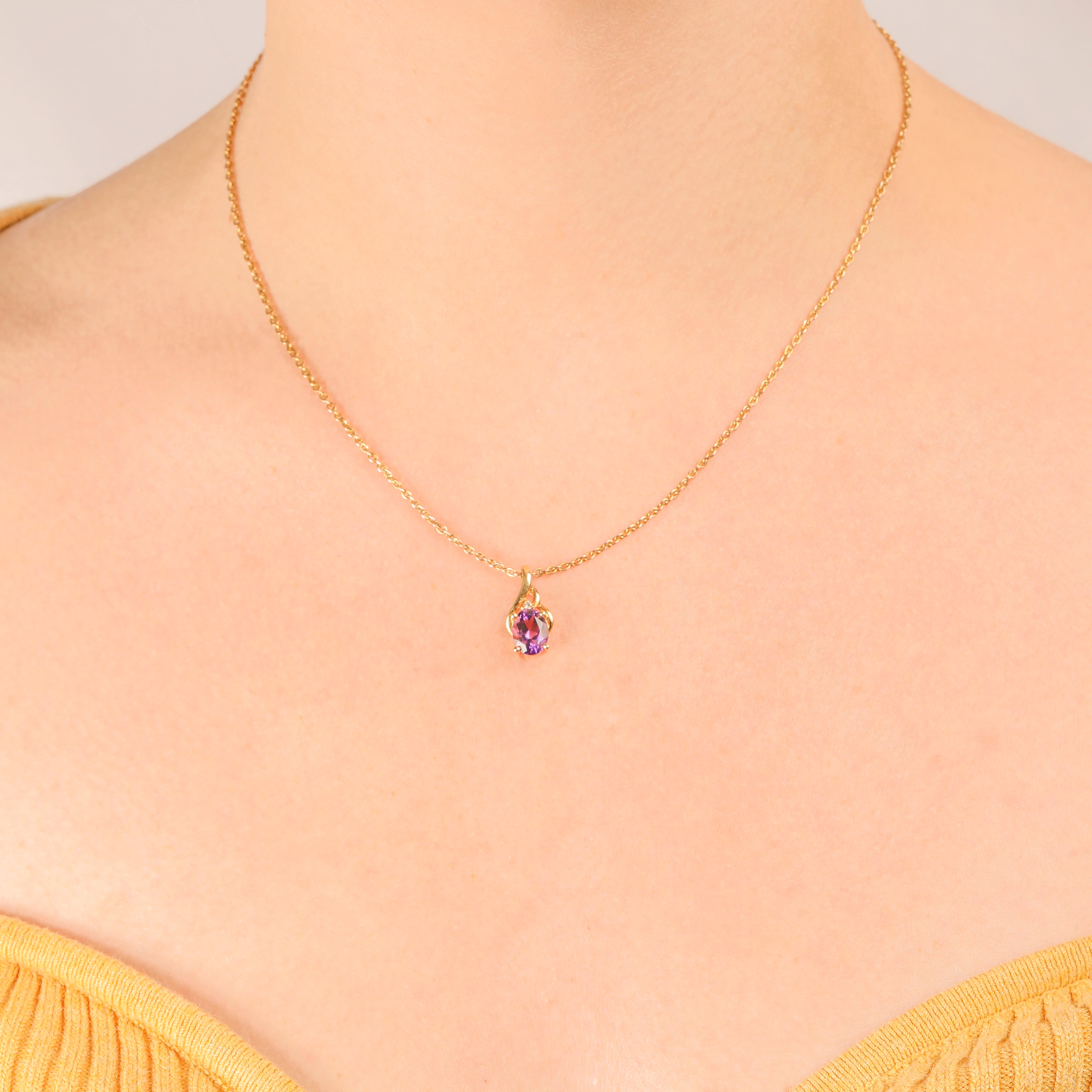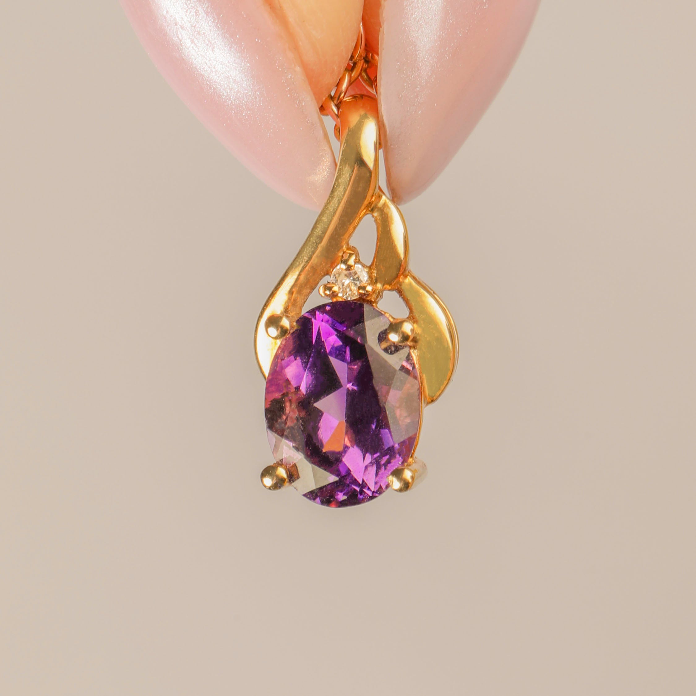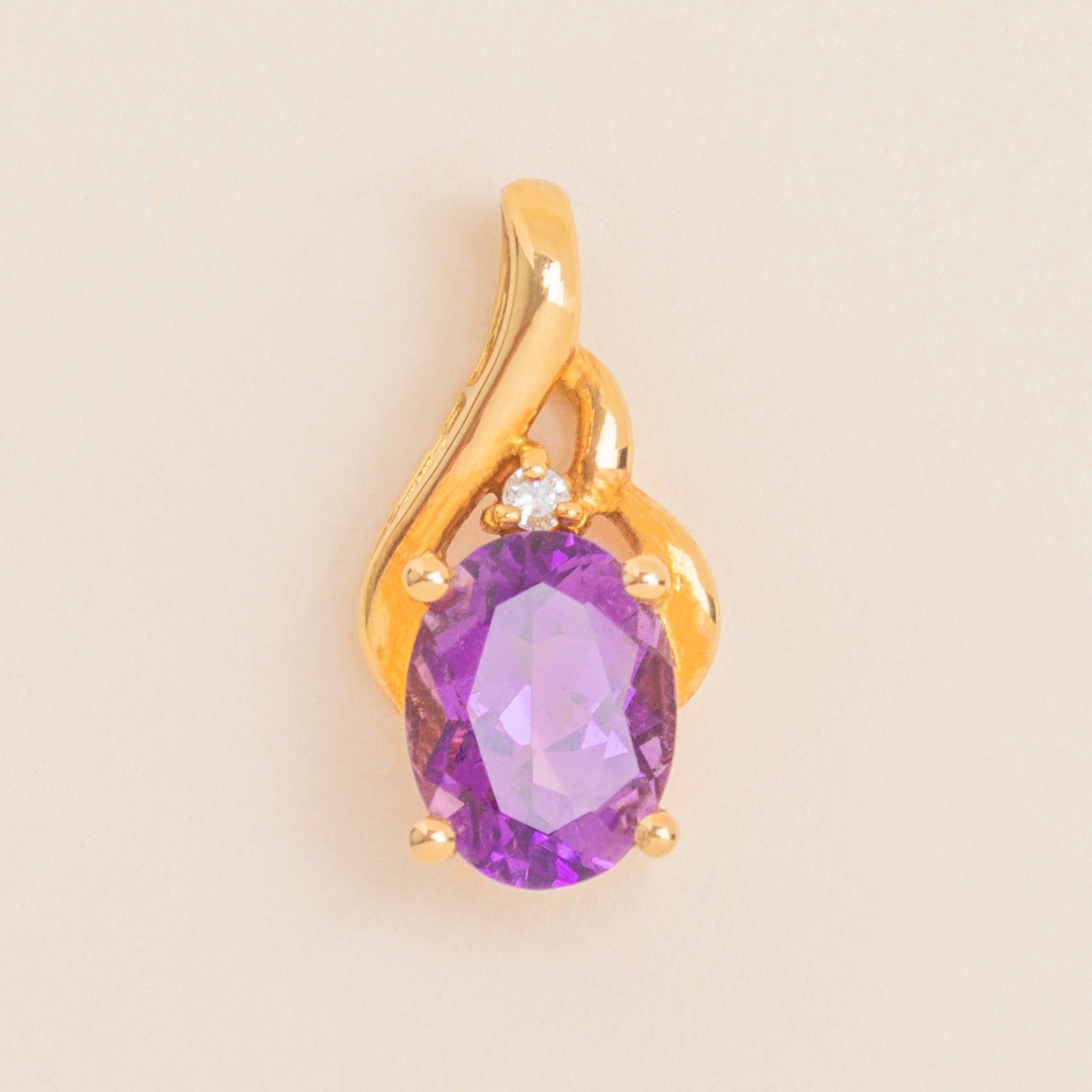 Add a touch of elegance to your collection with this radiant 18ct Gold Amethyst Diamond charm! With her rich purple hues, this vintage Amethyst pendant radiates regality and sophistication.