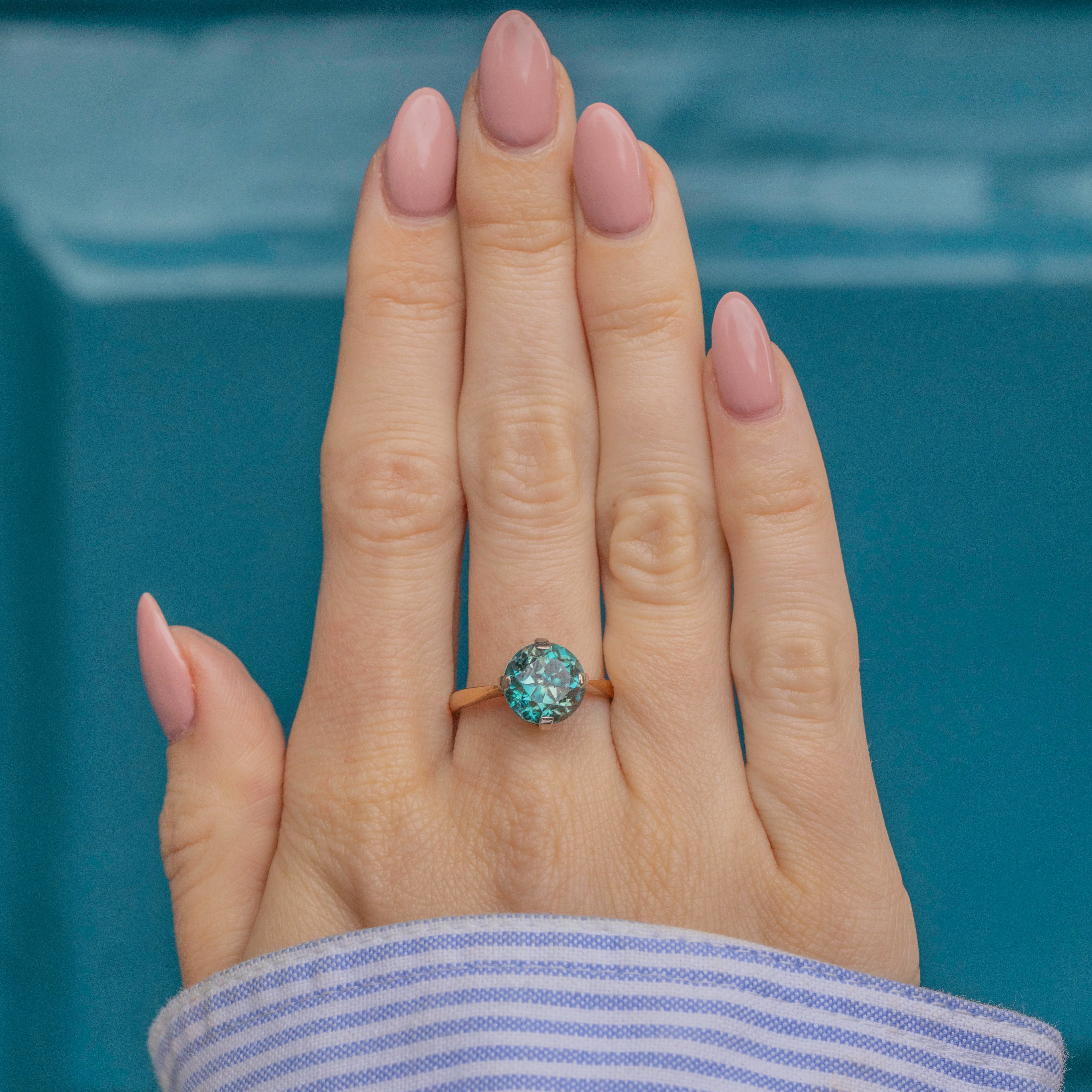 18ct Gold Art Deco Blue Zircon Solitaire Ring, 4.75ct