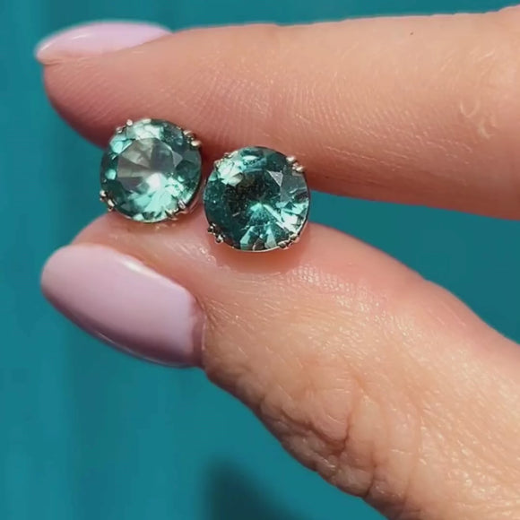 MEASUREMENTS: Blue Zircon stones are 7.5mm in diameter, approx 4.00ct total.