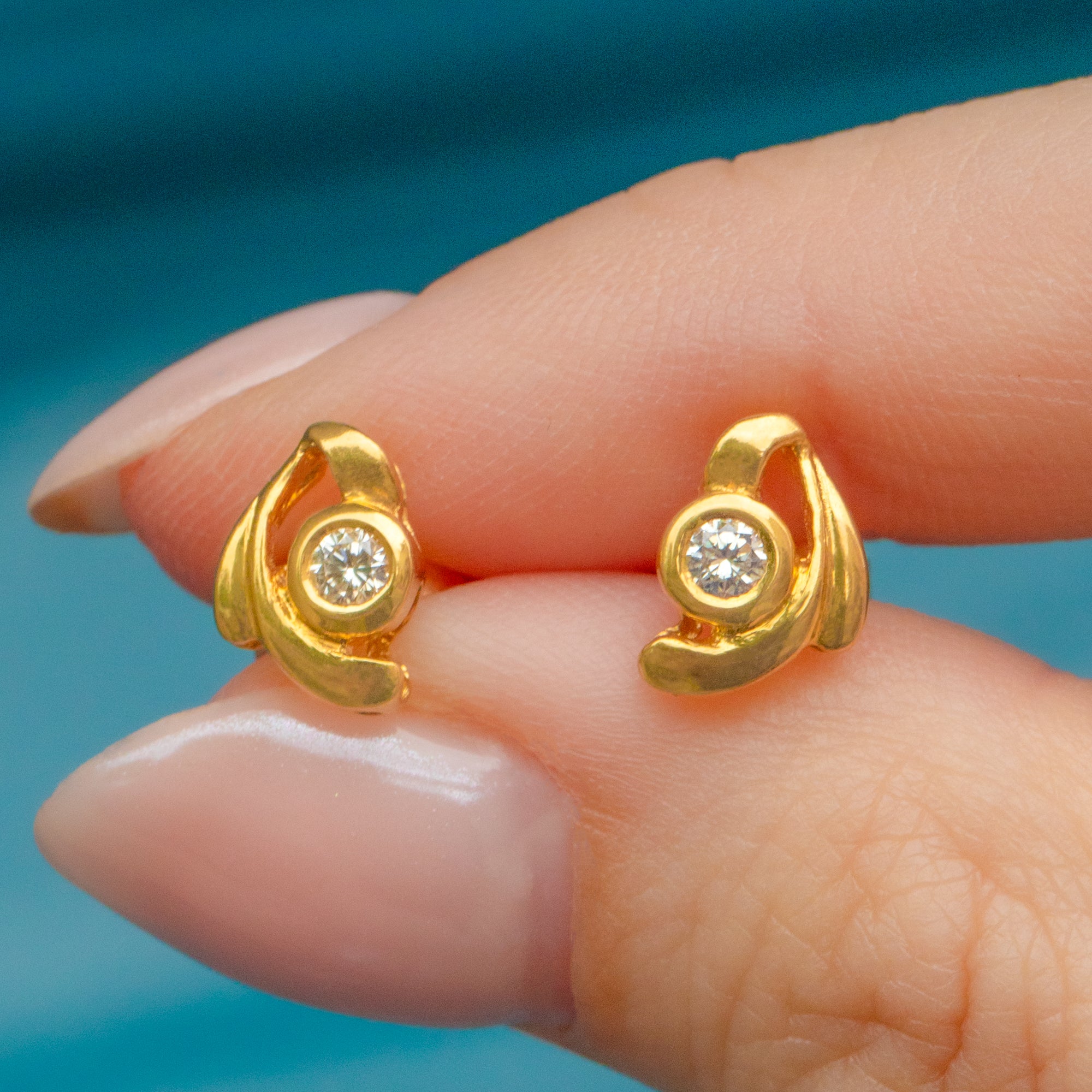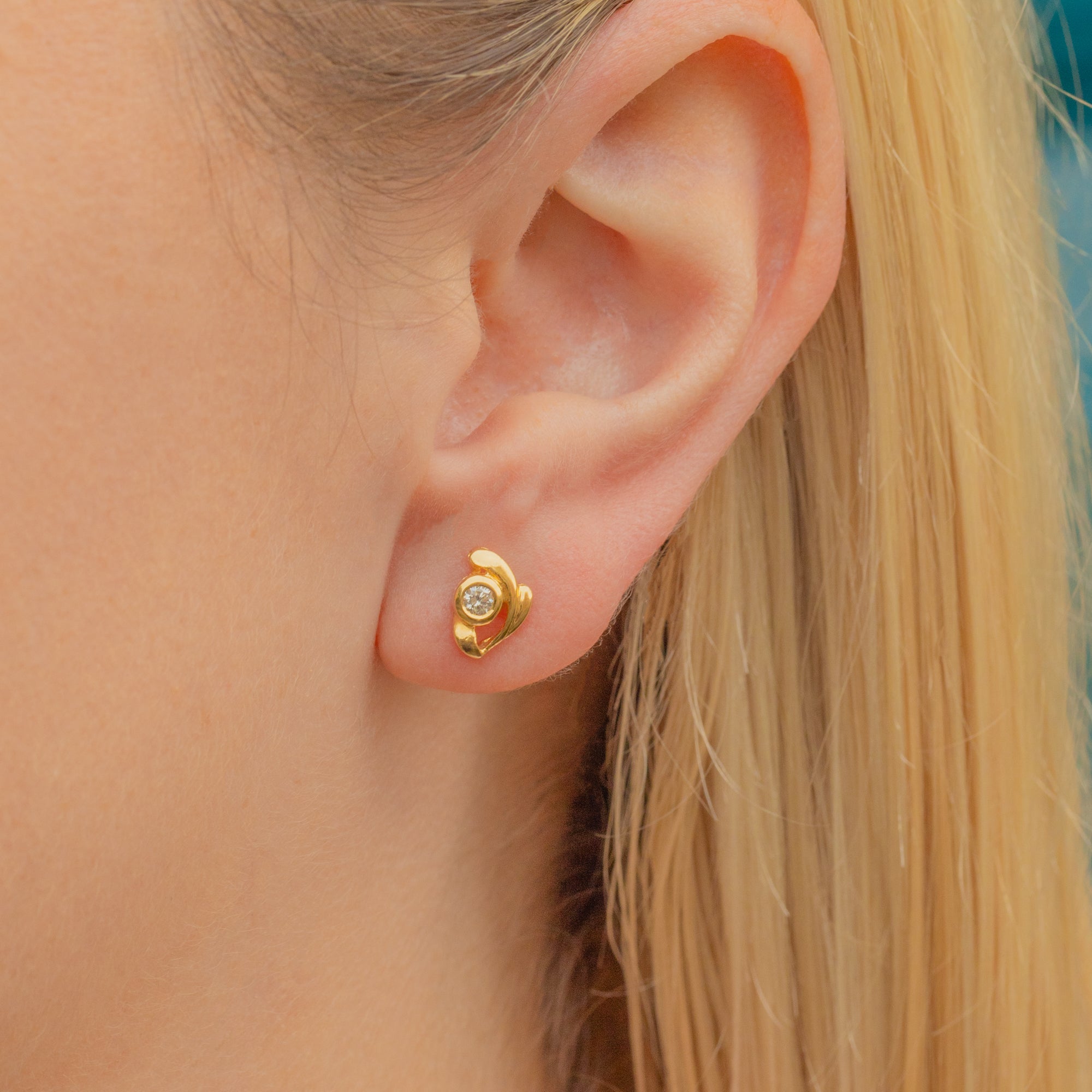 Add a subtle sparkle to your ear stack with these Vintage 18ct Gold Diamond stud earrings. Featuring a twinkling Diamond embraced by a high carat Gold in a swirling design.