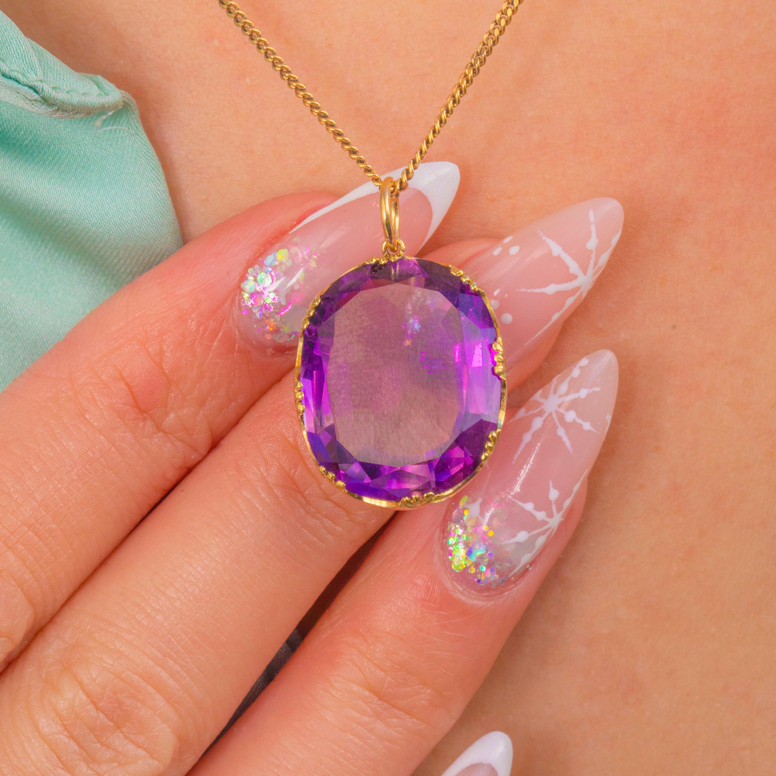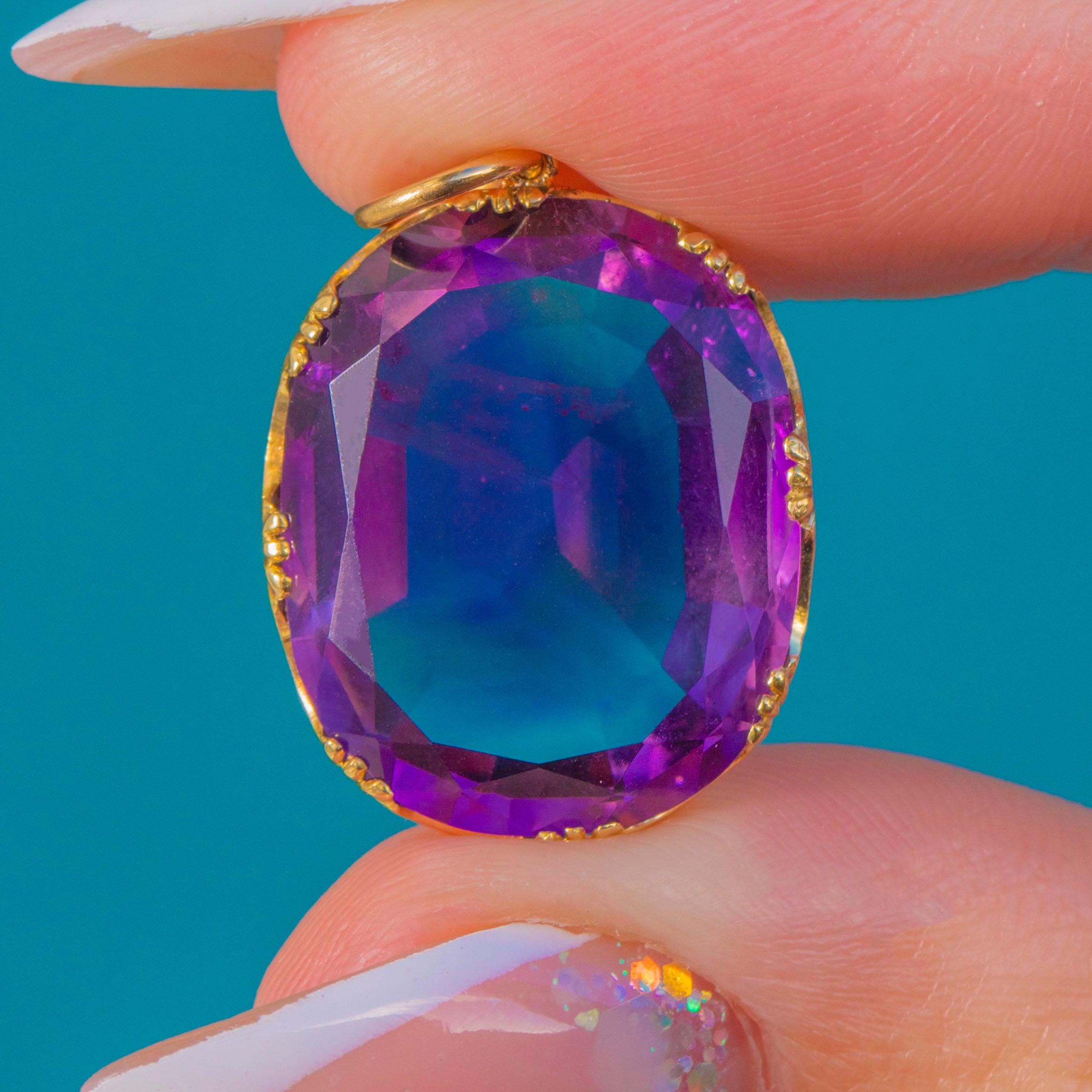 This beautiful Georgian Amethyst pendant dates to circa 1820 and glows with that unmistakable antique charm. The large 3.80ct hand-cut Amethyst displays natural colour zoning, an authentic feature of antique stones, where soft lavender areas blend into richer purple tones, giving the gem real depth and personality.
