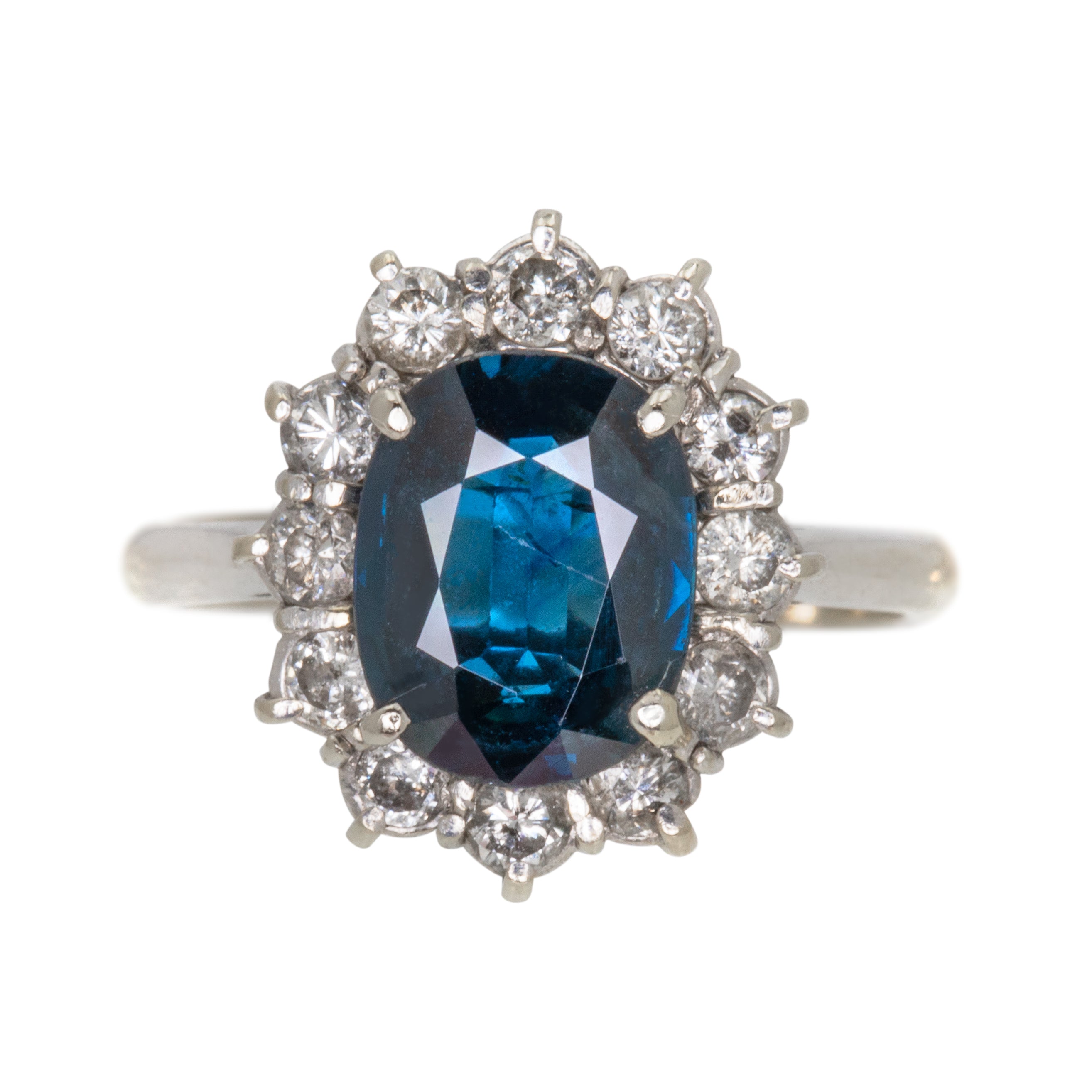 MATERIALS: Tests as 18ct White Gold throughout, Natural Sapphire (1.40ct), Diamonds (0.36ct).