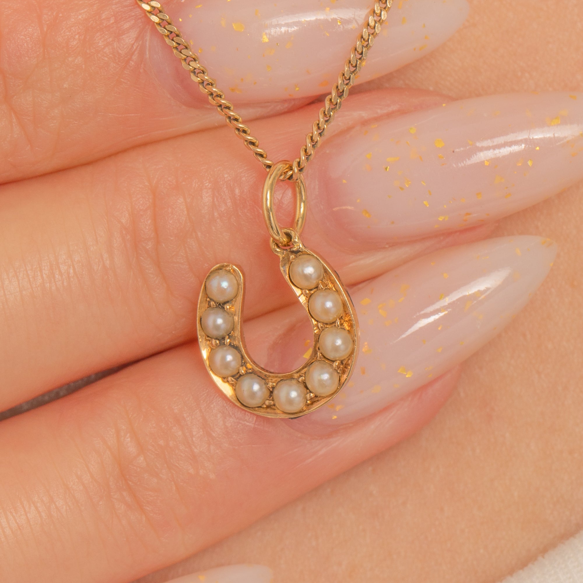 Each Pearl is individually collet-set around the arc of the horseshoe, lending delicate texture and fine Victorian craftsmanship in miniature. Petite and refined, it’s a charming treasure to wear alone or layered, and a lovely token to mark life’s serendipitous moments.