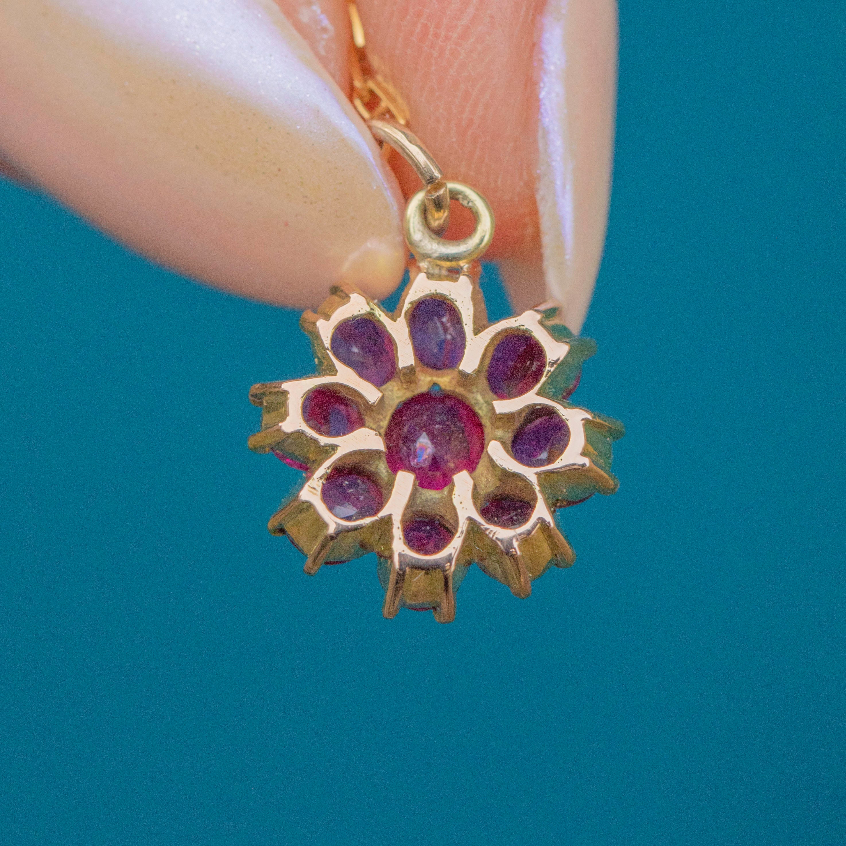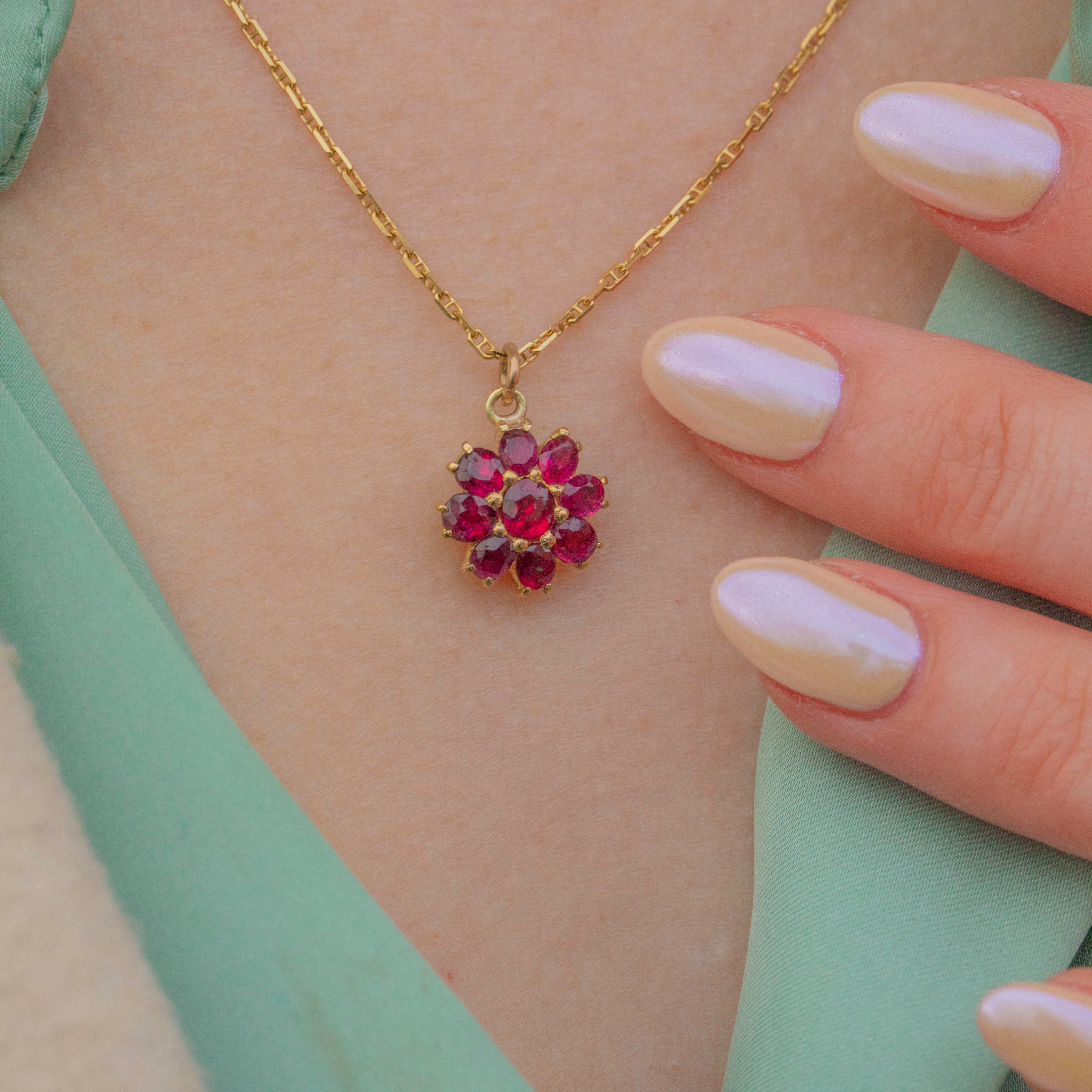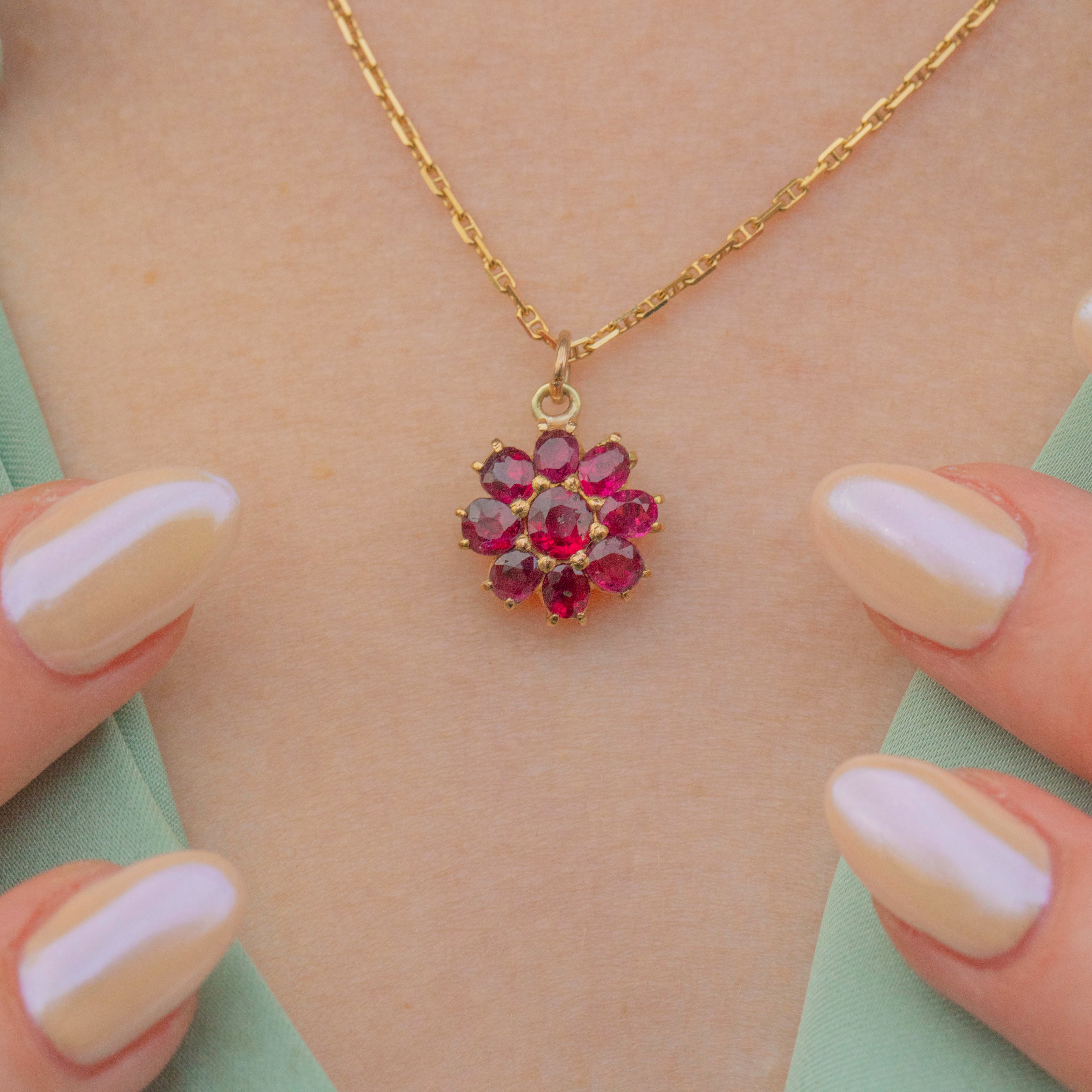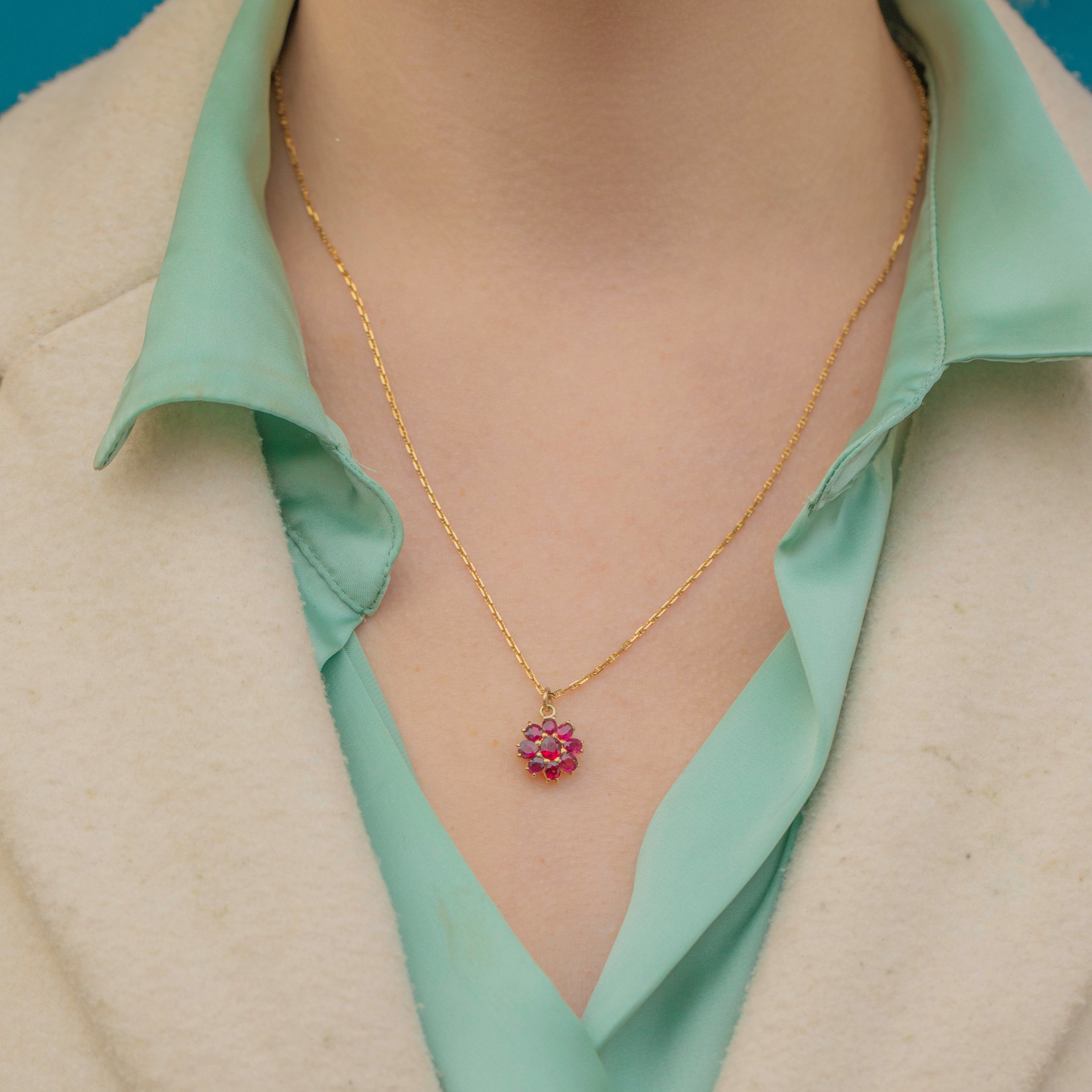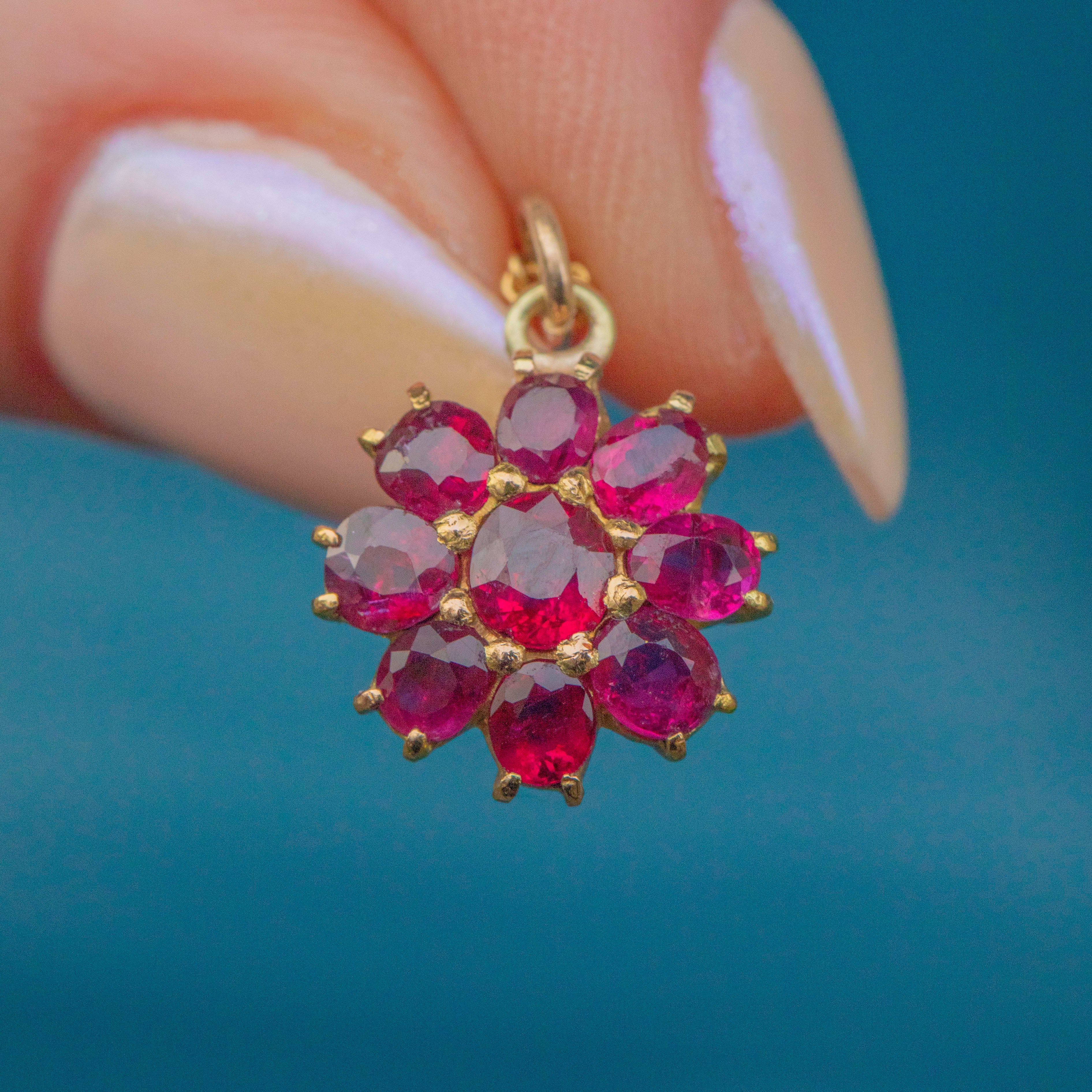Add a touch of seductive allure to your neck stack with this 18ct Gold Ruby flower cluster charm!