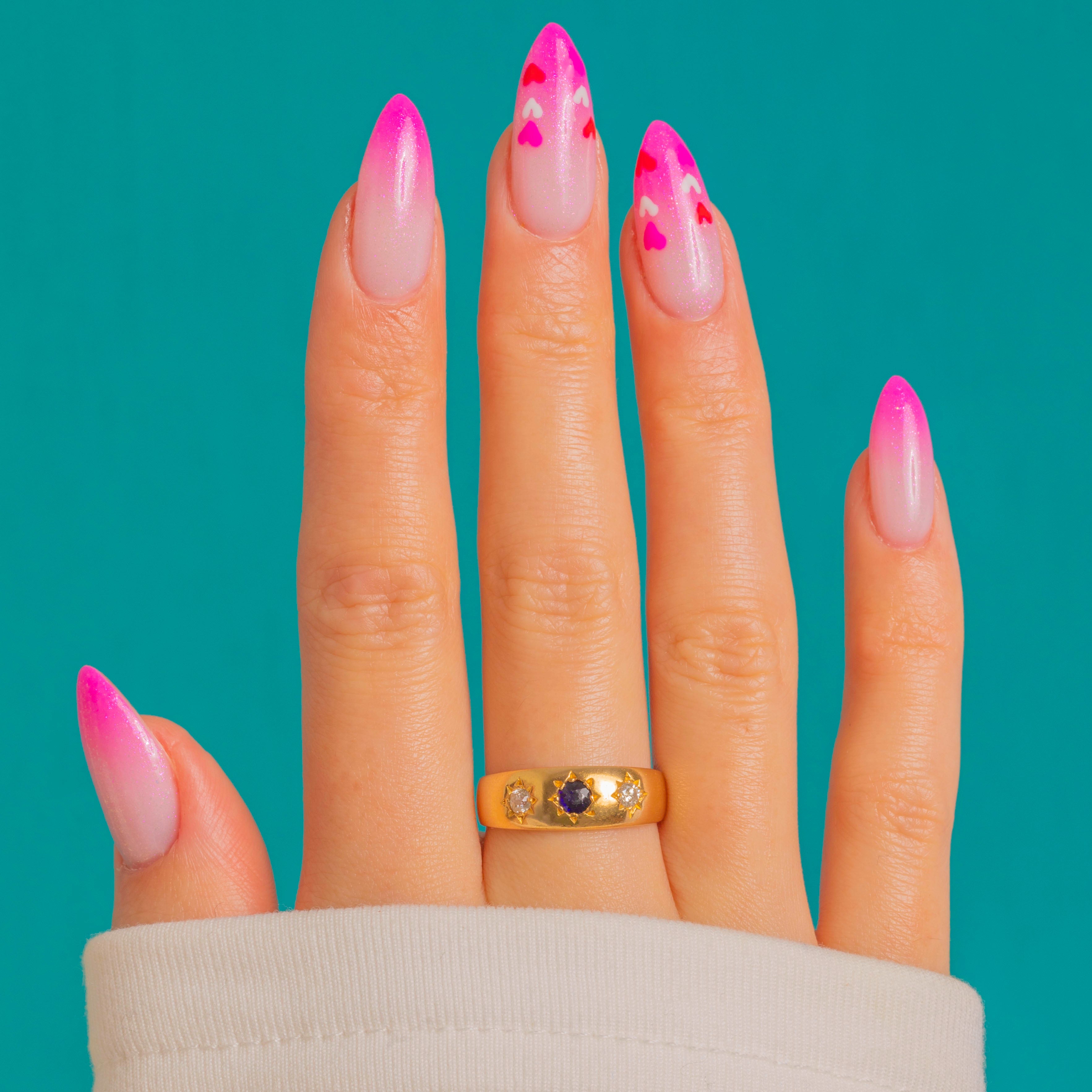 A classic Victorian treasure, this star-set gypsy ring is crafted in rich 18ct Gold and punctuated by a midnight-blue Sapphire flanked by two bright Diamonds. The low, flush settings and engraved eight-point stars lend a celestial shimmer that feels both refined and effortlessly wearable.