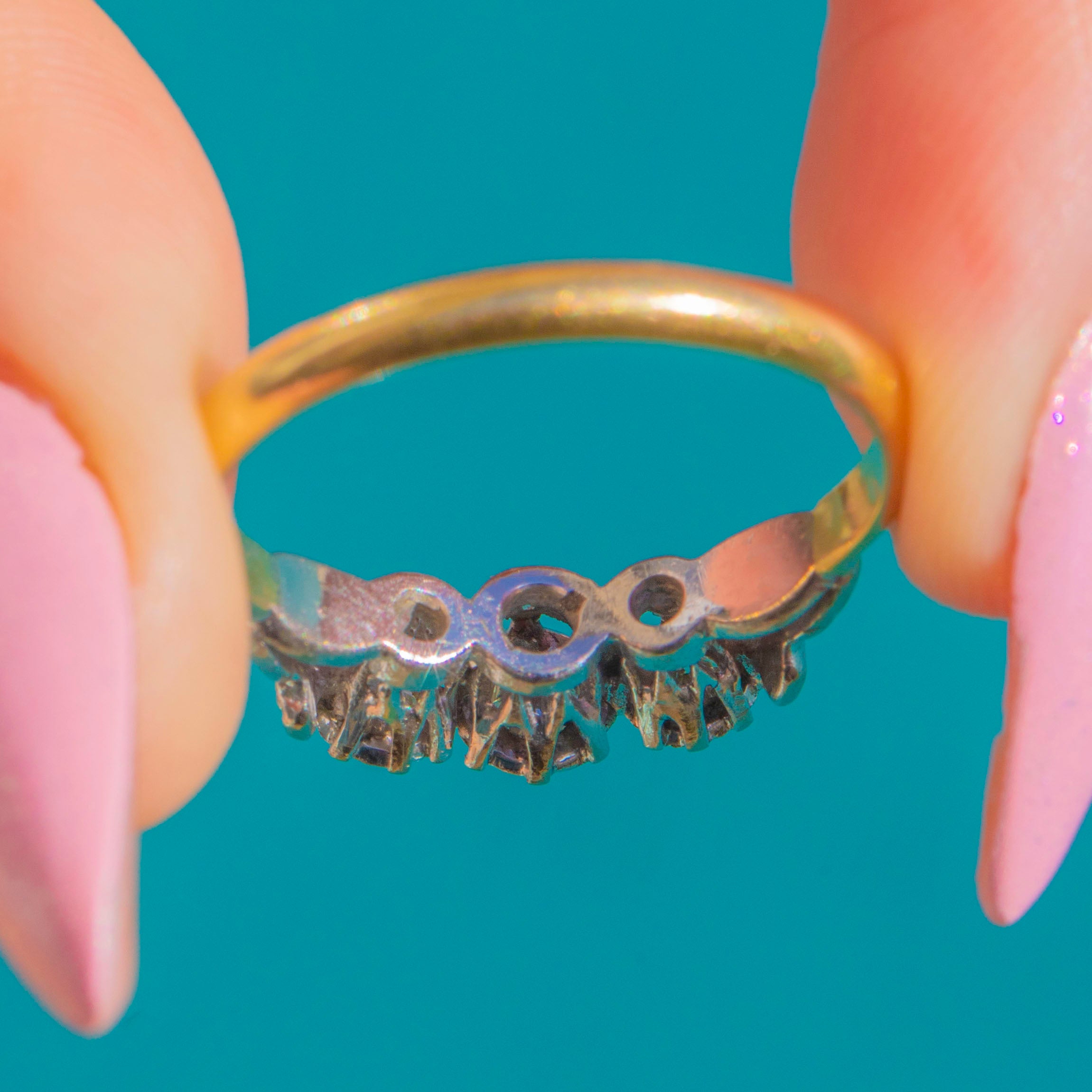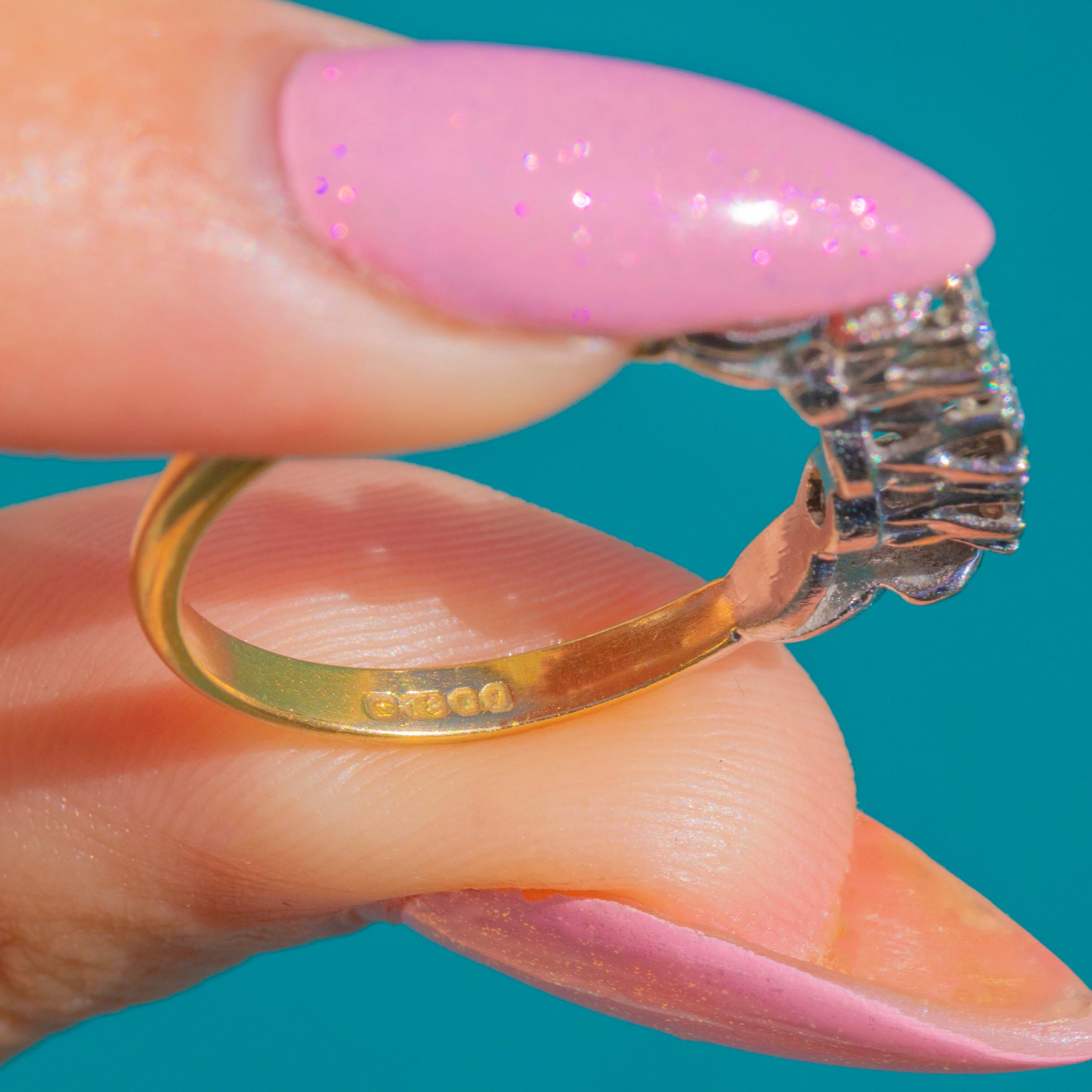 EXCELLENT: The Diamonds are bright and lively with H-I colour and VS-SI clarity, showing no chips or scratches and sitting securely within their star settings. The shank and settings are well preserved with minimal surface wear, and the hallmarks remain clear. Overall, this ring has been carefully kept and is ready to wear and enjoy.