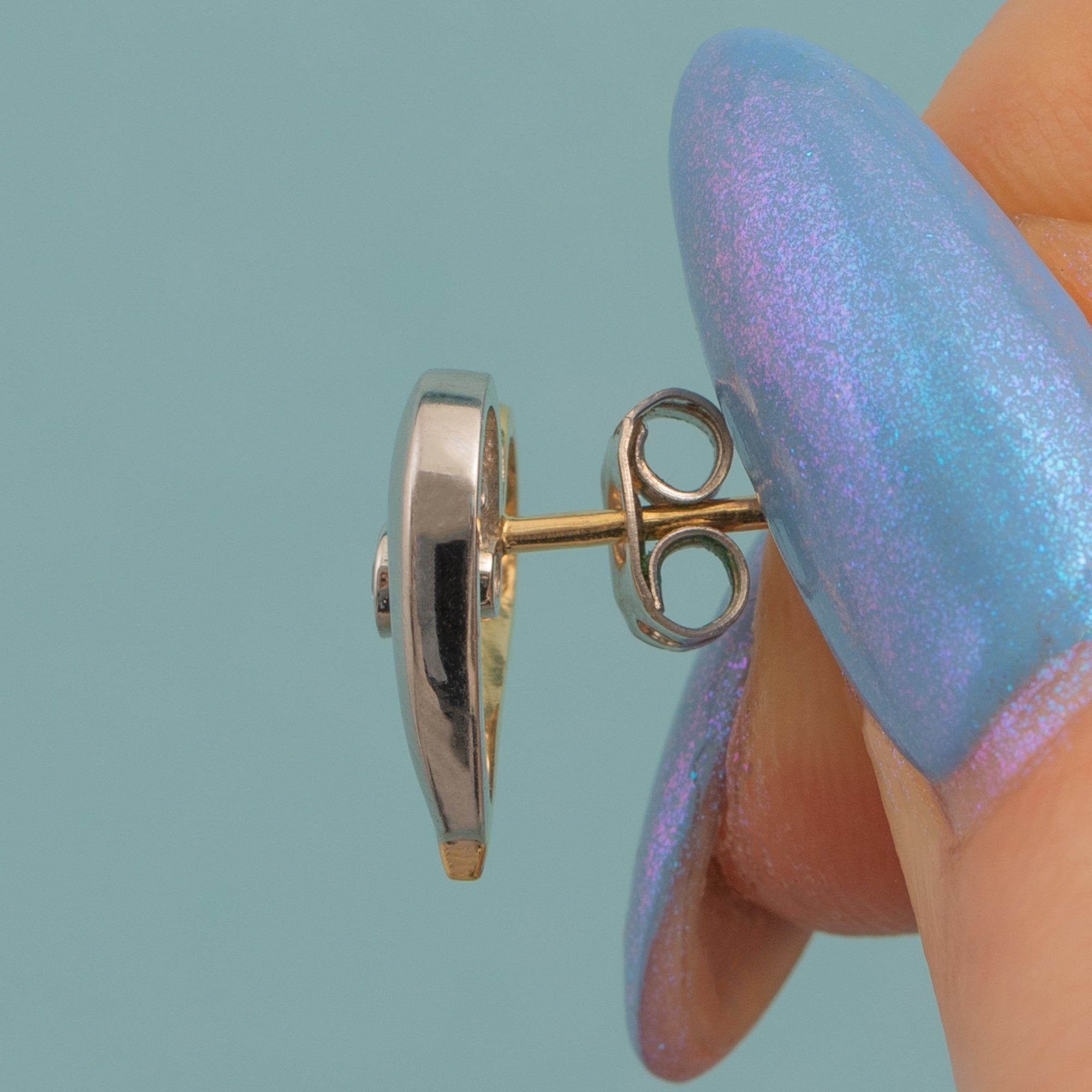 Each stud is divided into white and yellow Gold, married together by a scintillating Diamond in their centre. Adding a touch of romance to your collection, these lightweight Vintage stud earrings are the perfect pair for everyday wear.